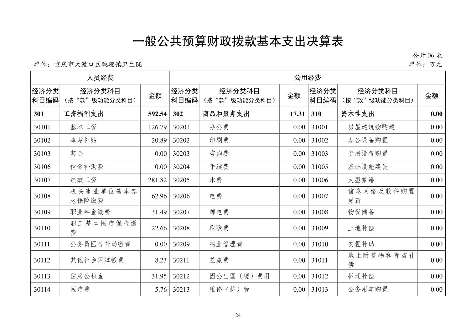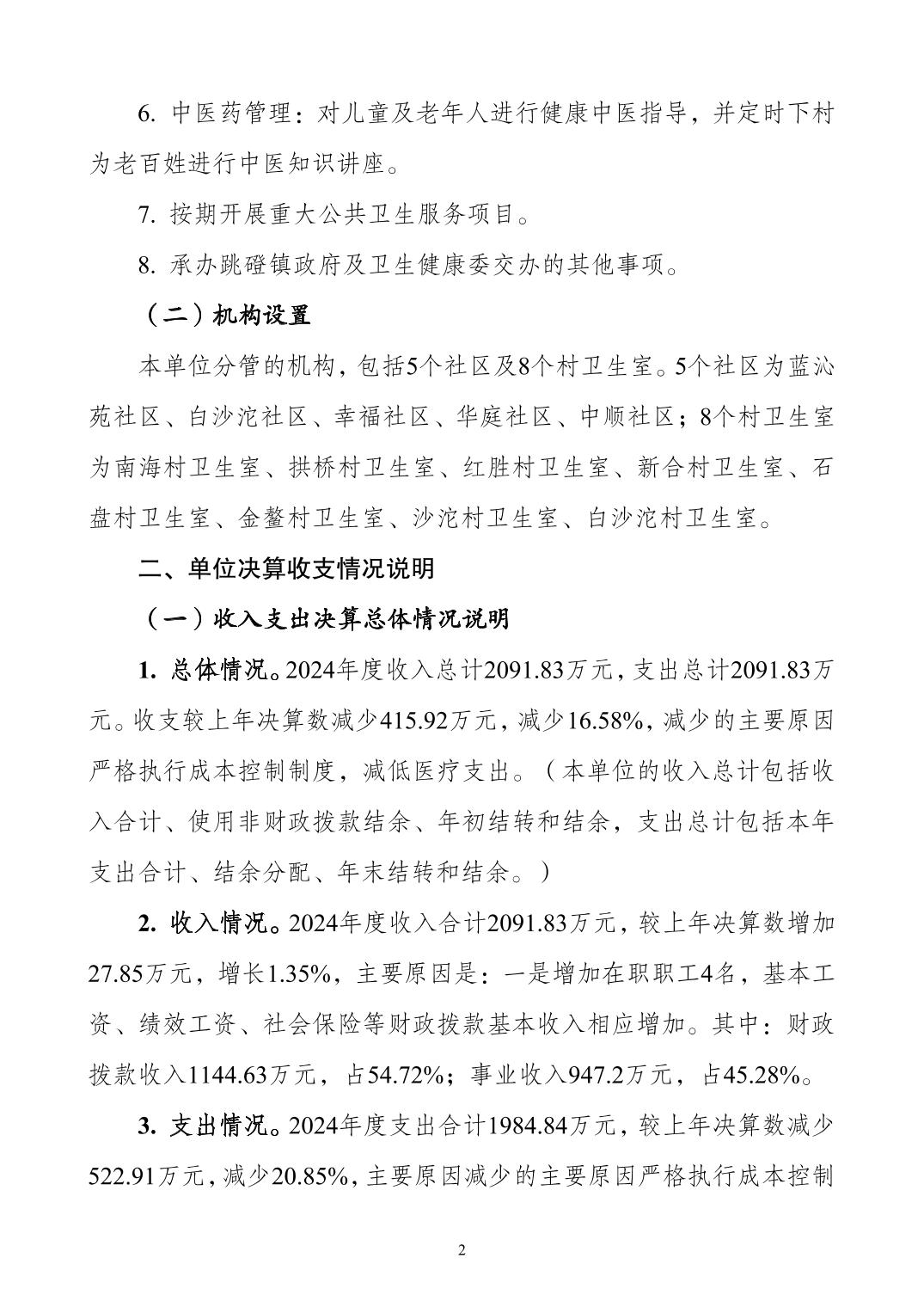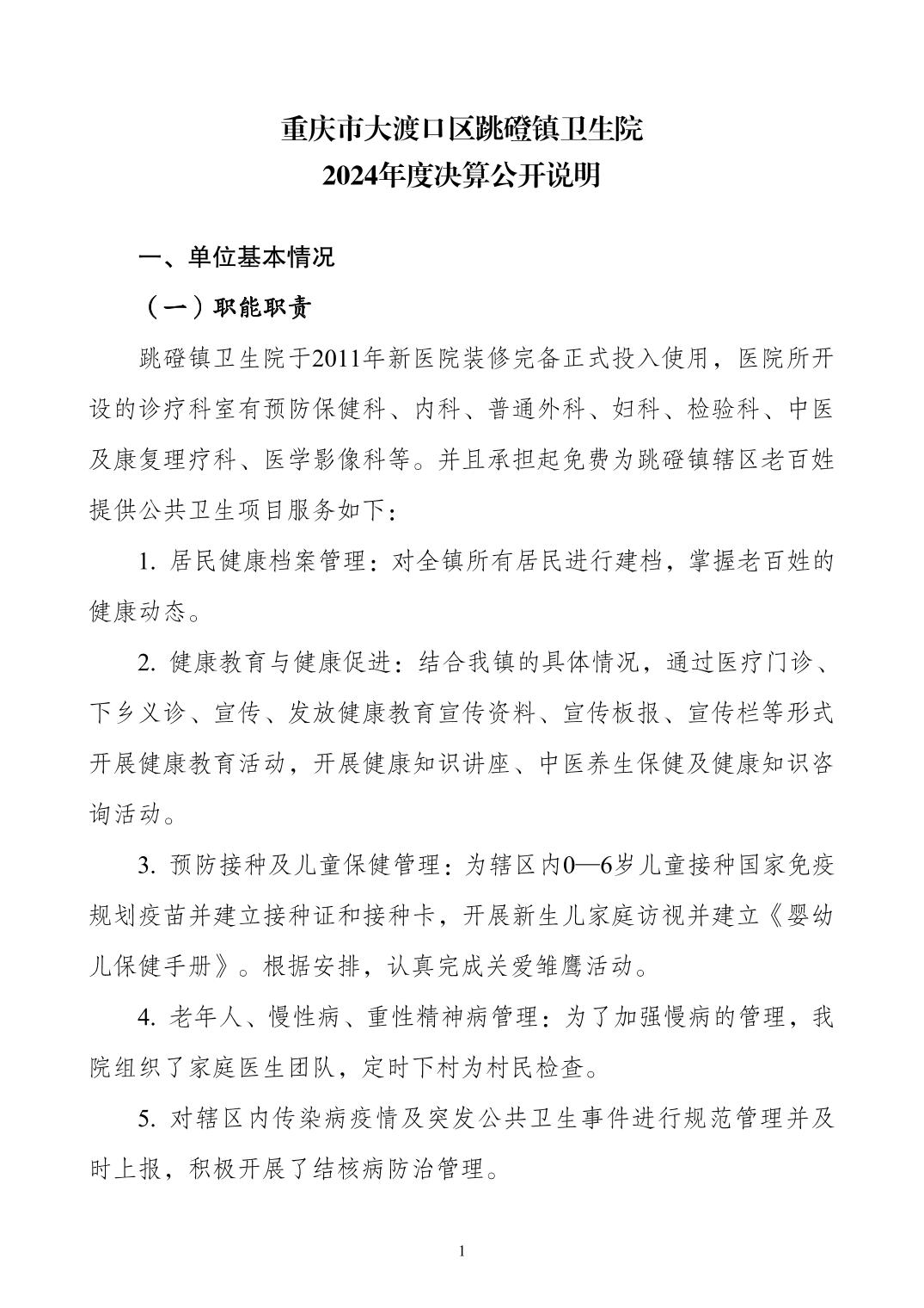 重庆市大渡口区跳磴镇卫生院2024年度决算公开说明
