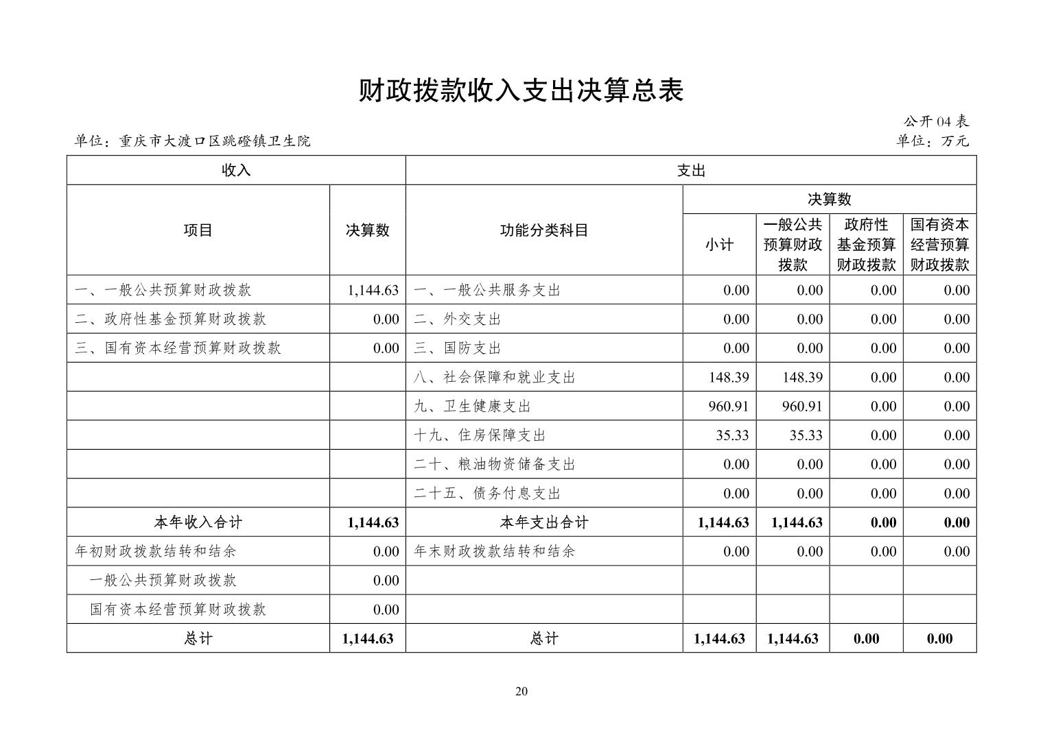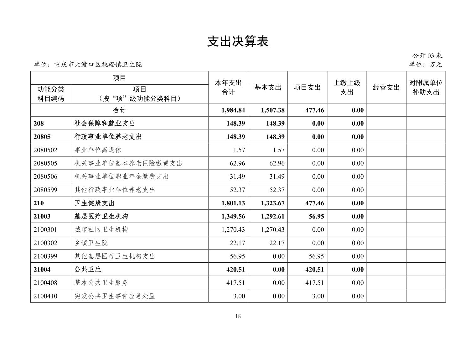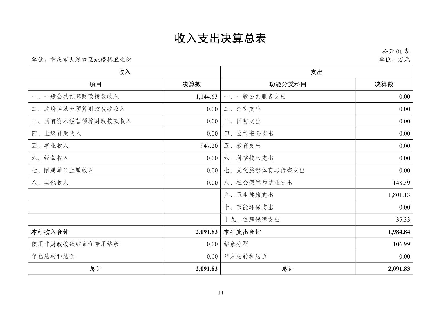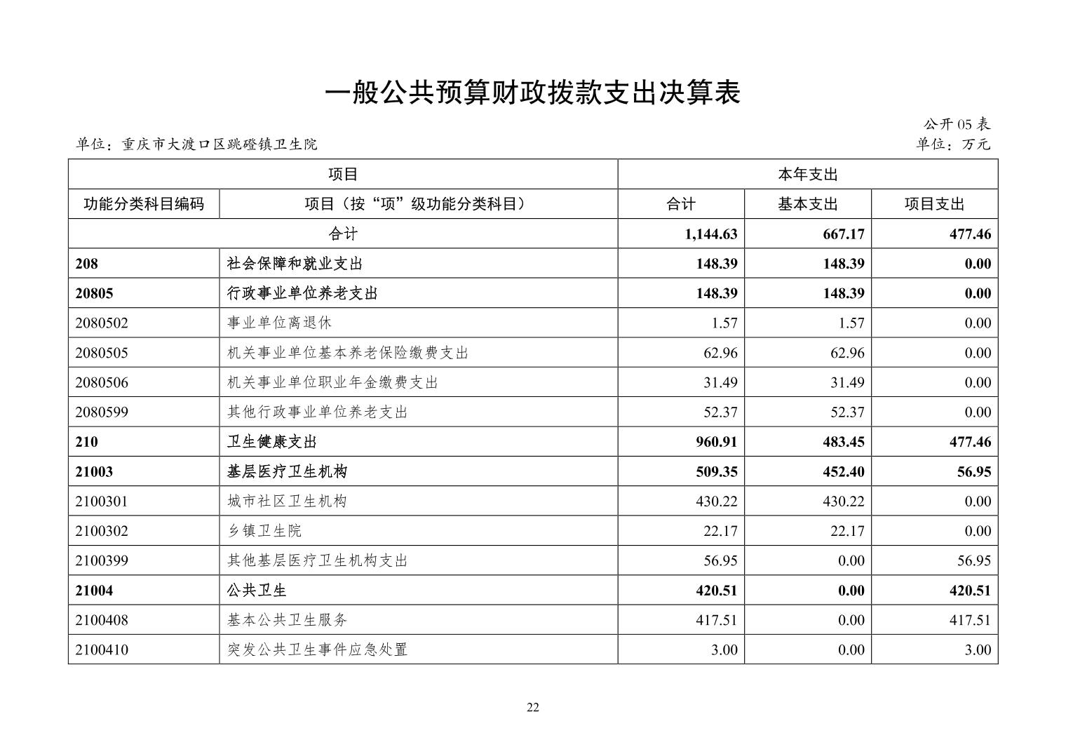 重庆市大渡口区跳磴镇卫生院2024年度决算公开说明