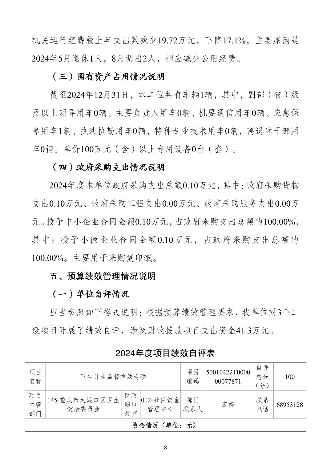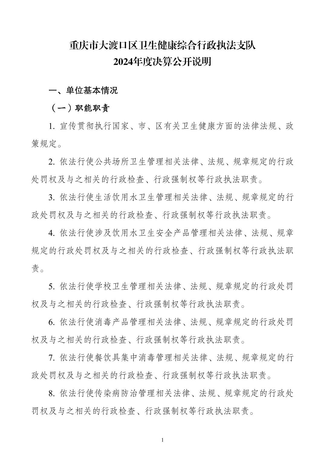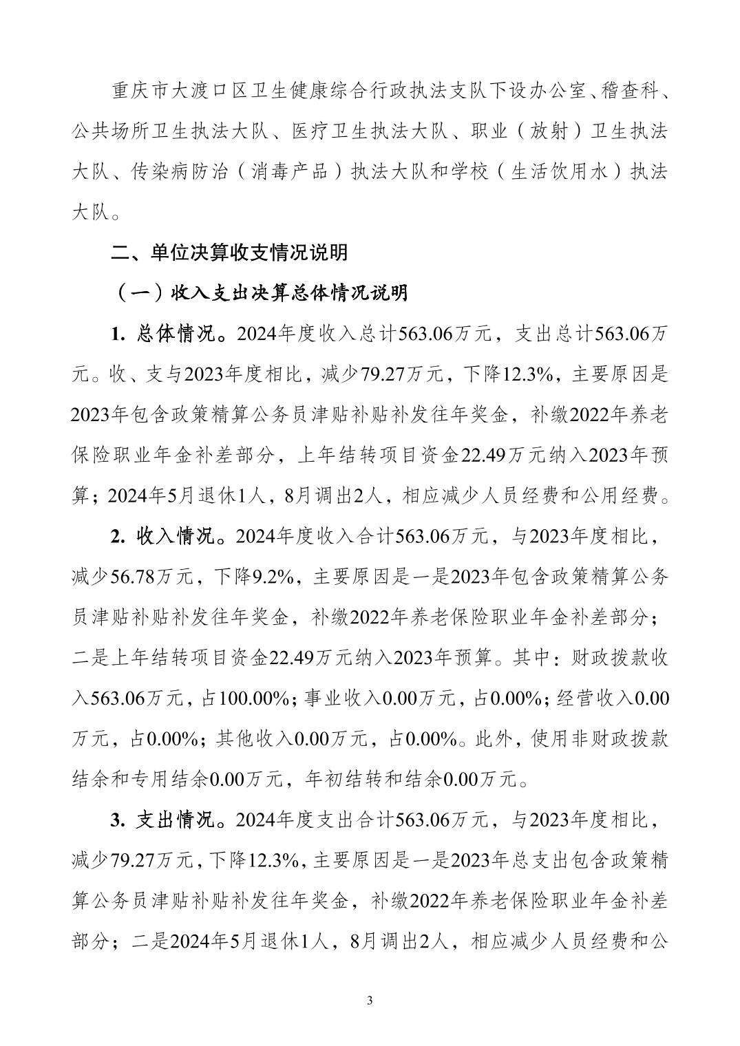 重庆市大渡口区卫生健康综合行政执法支队2024年度决算公开说明
