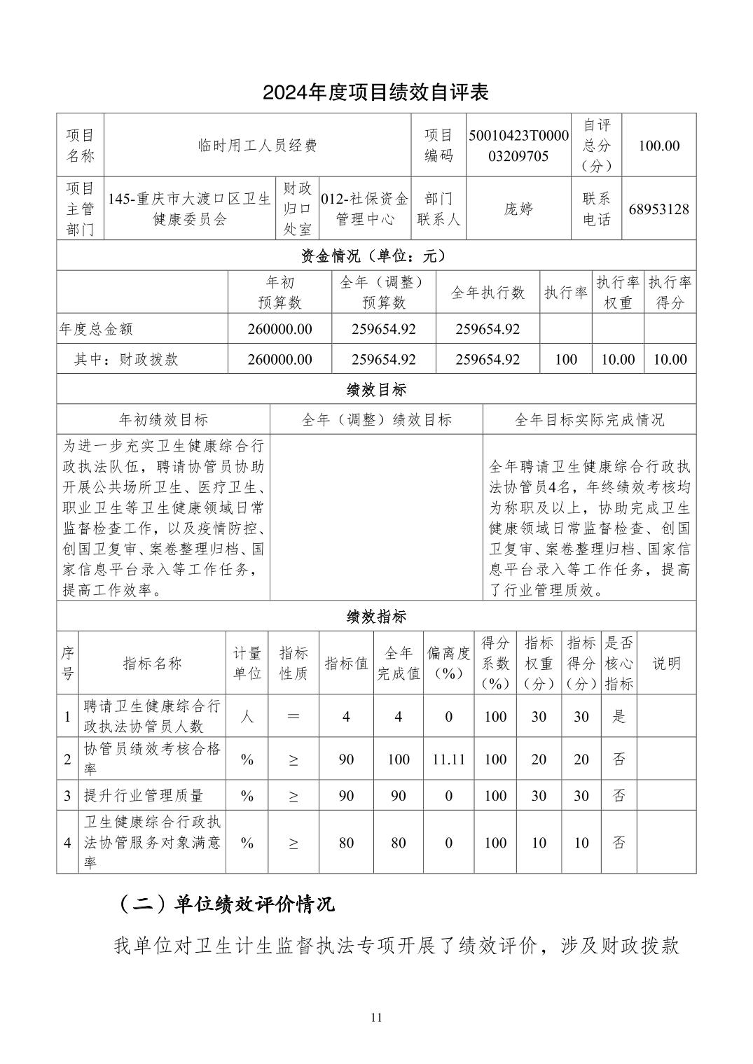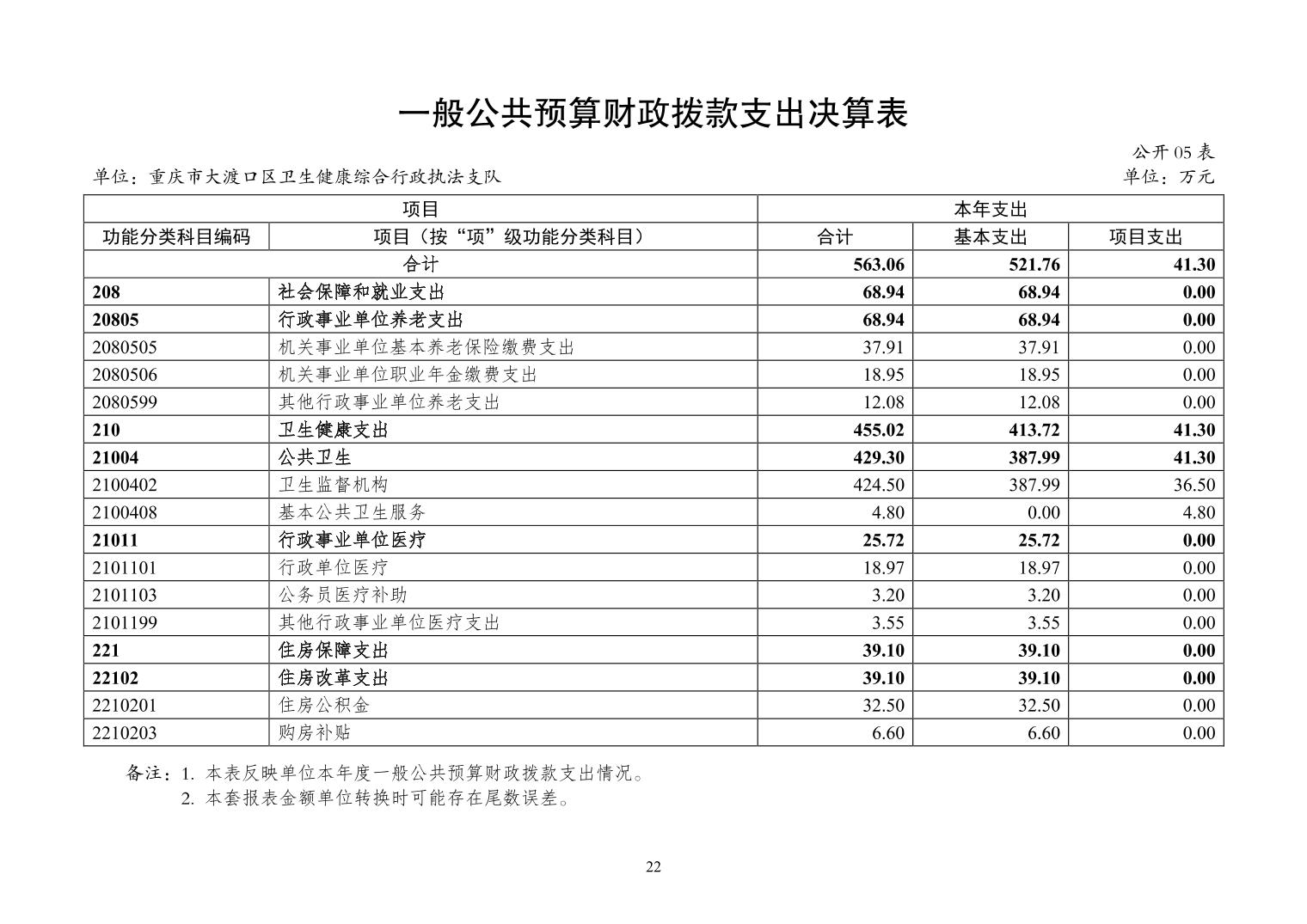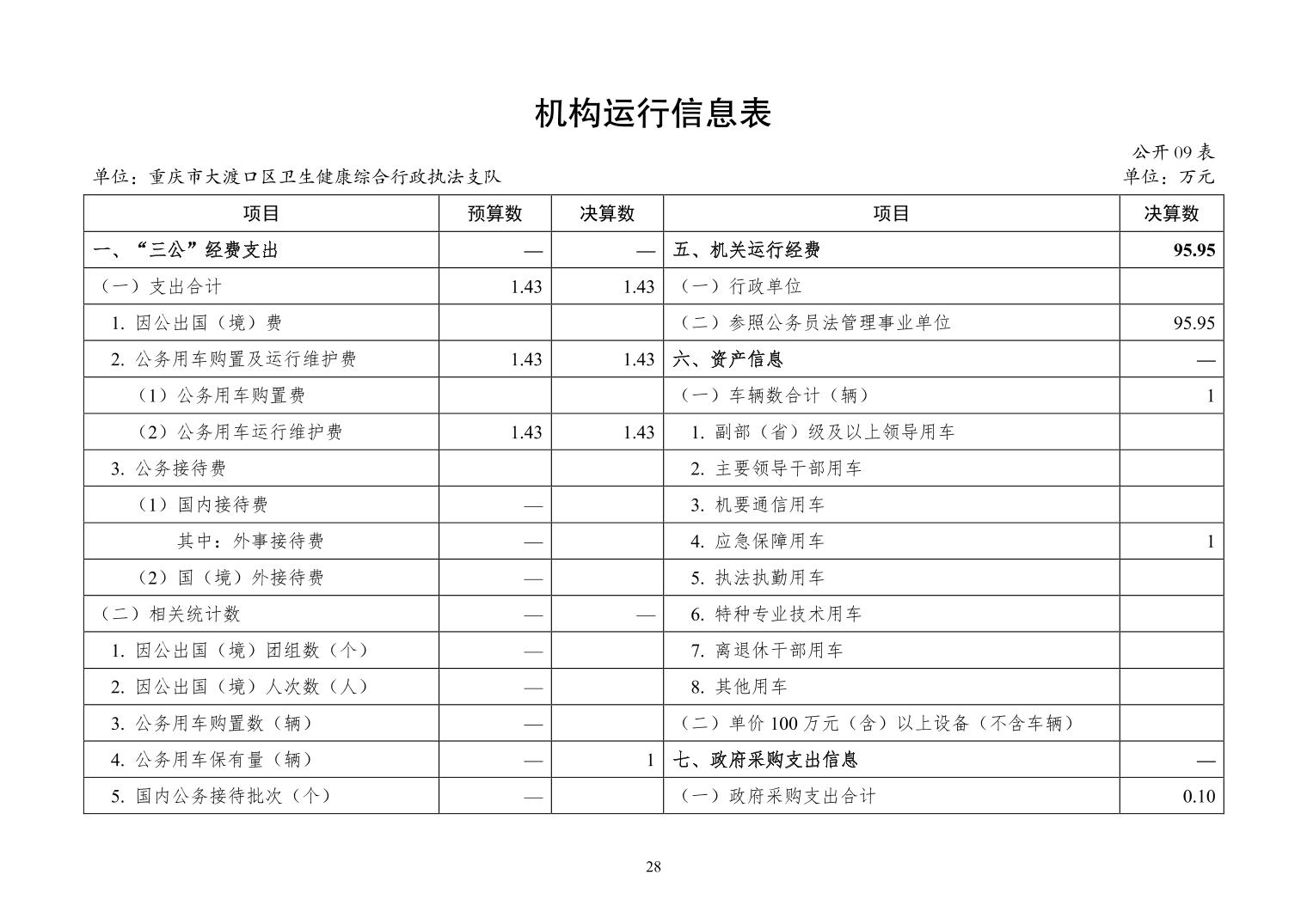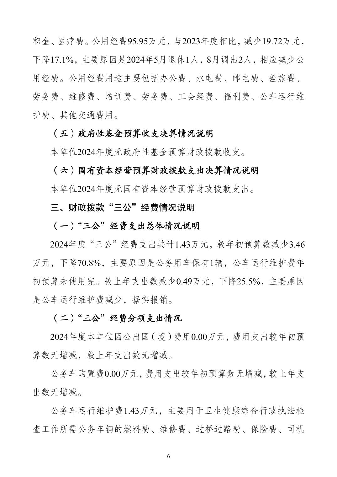 重庆市大渡口区卫生健康综合行政执法支队2024年度决算公开说明
