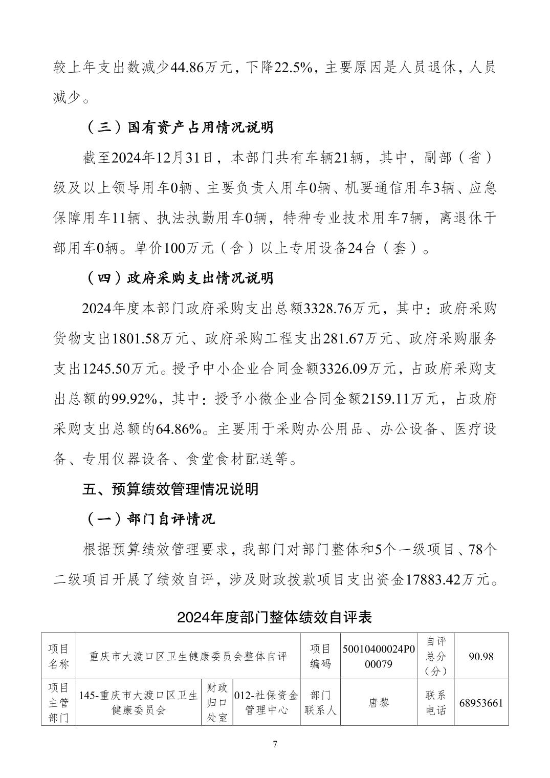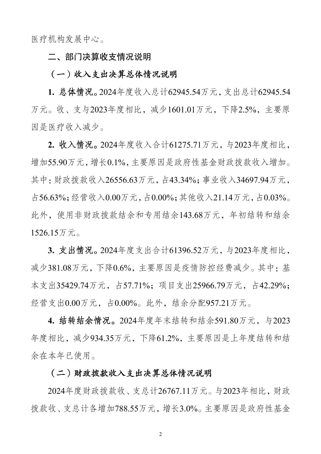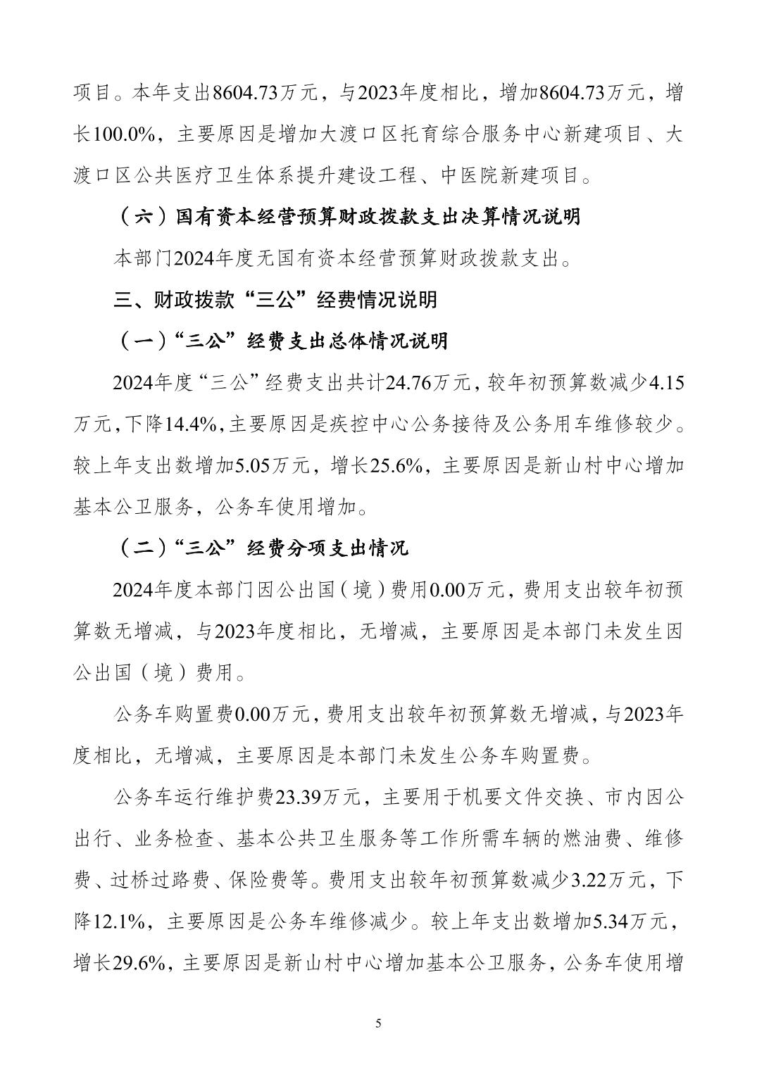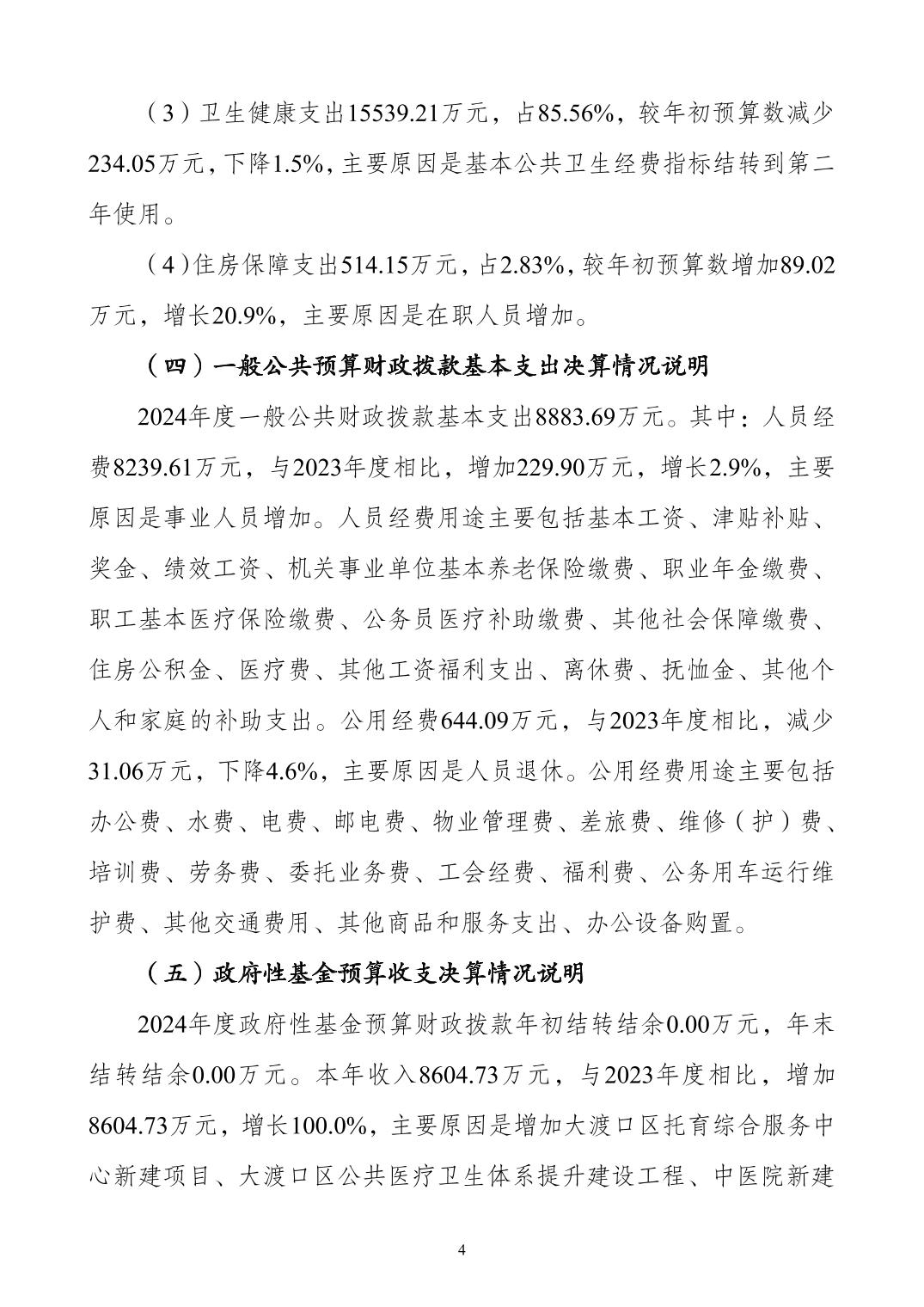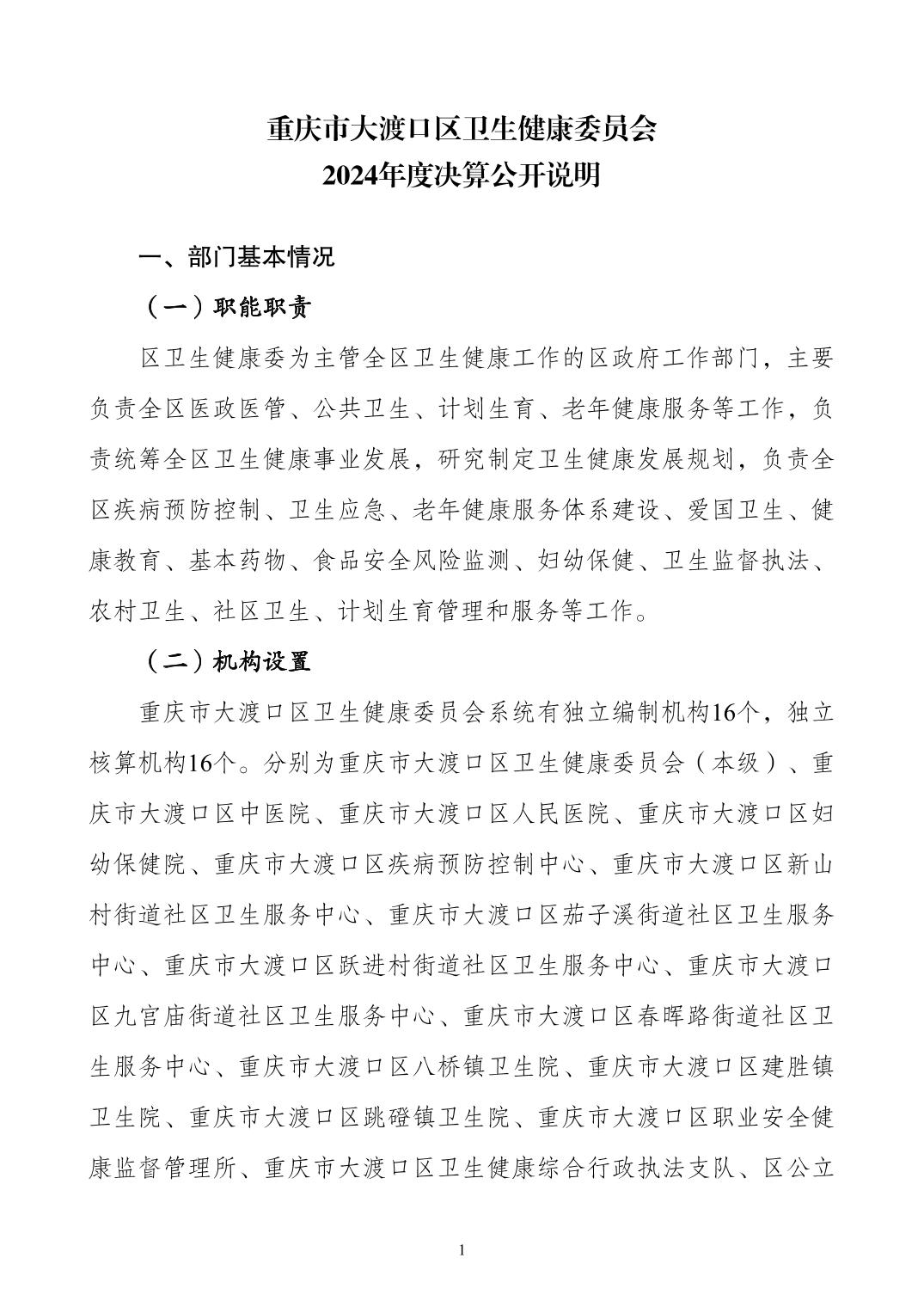 重庆市大渡口区卫生健康委员会2024年度决算公开说明