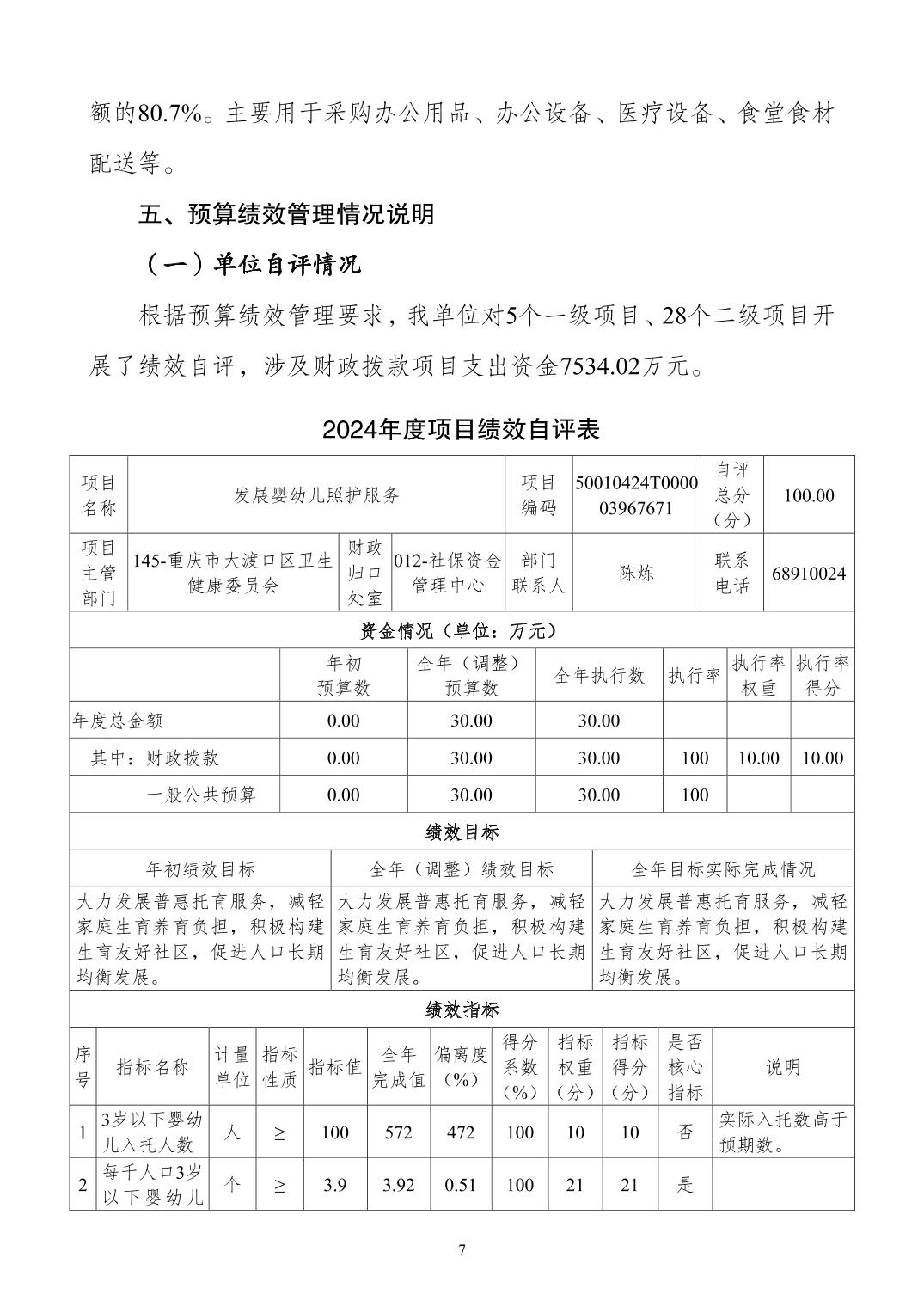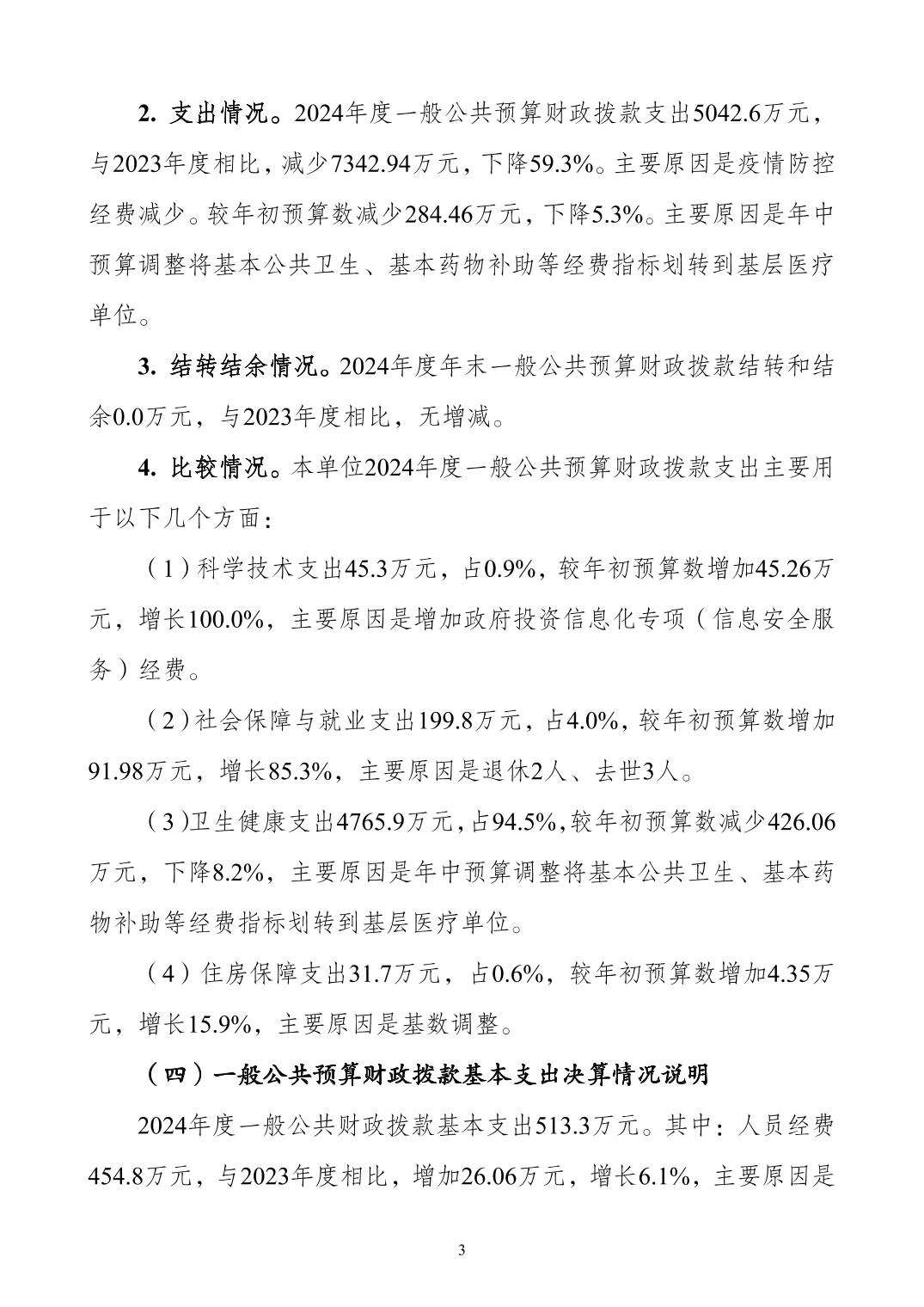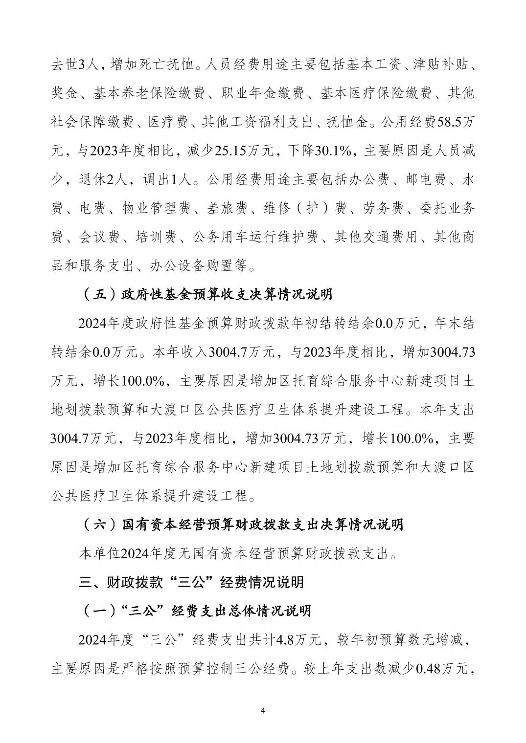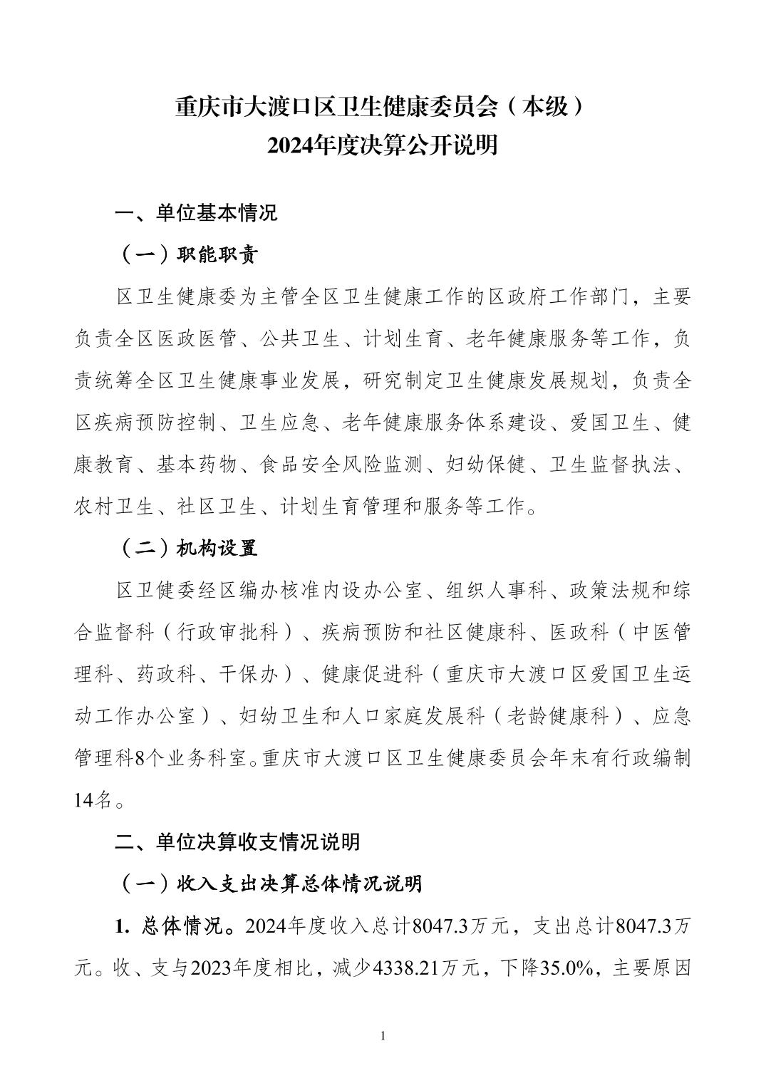 重庆市大渡口区卫生健康委员会(本级)2024年度决算公开说明