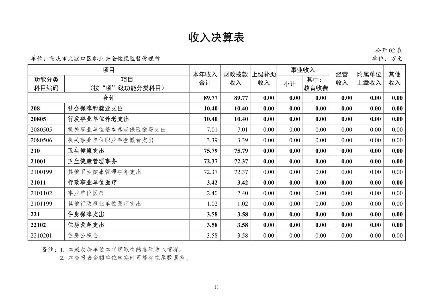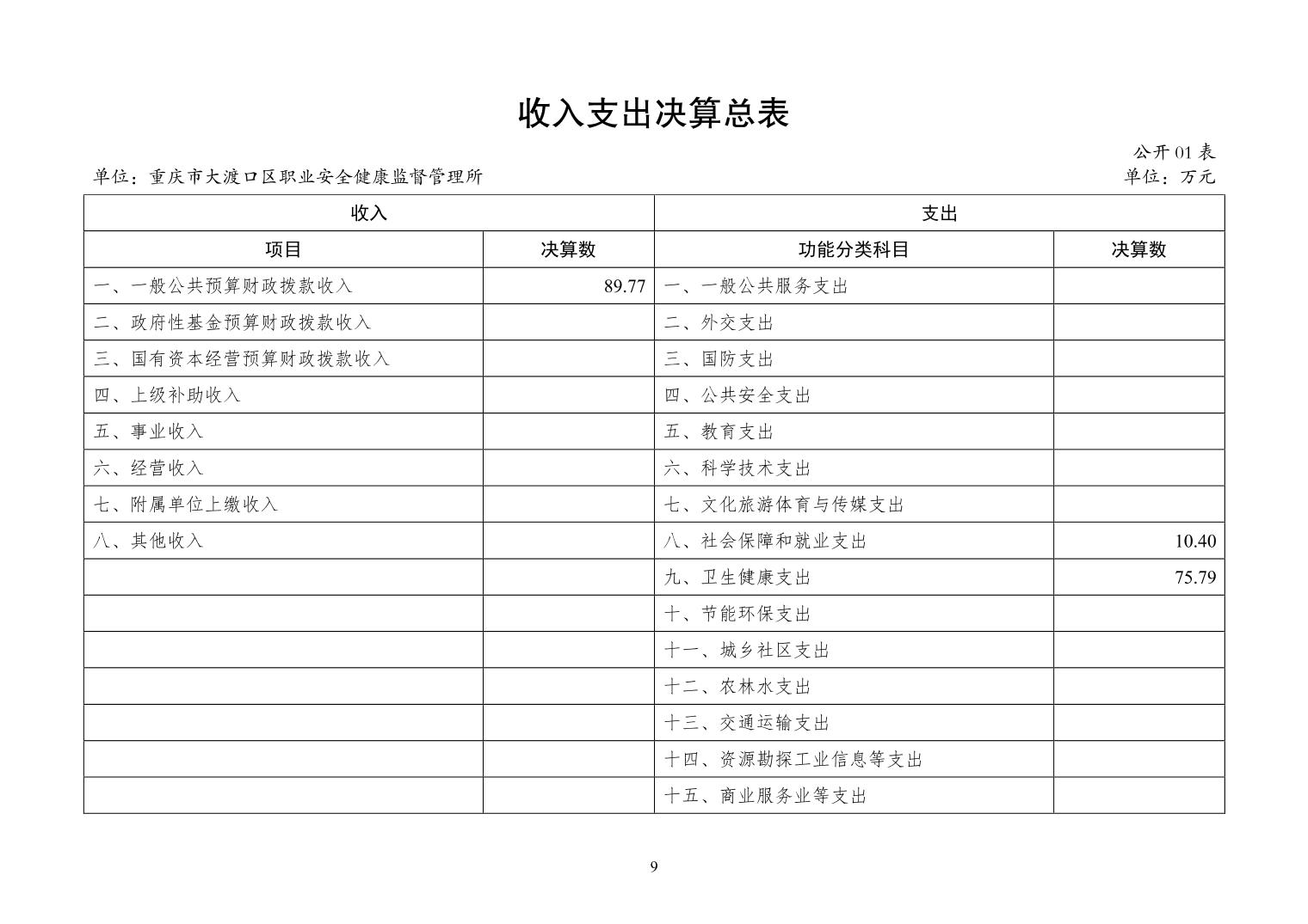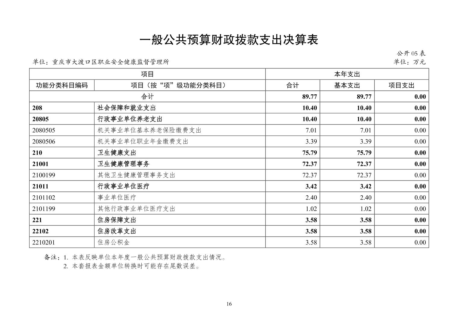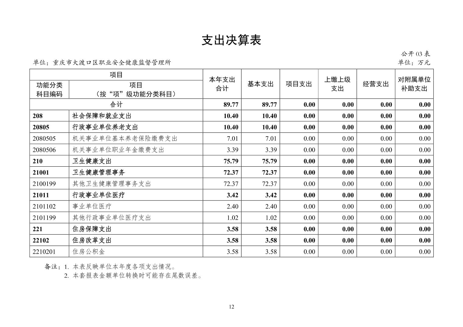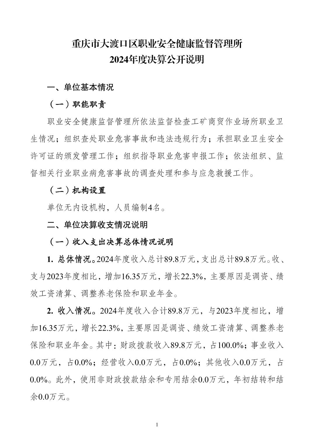 重庆市大渡口区职业安全健康监督管理所2024年度决算公开说明