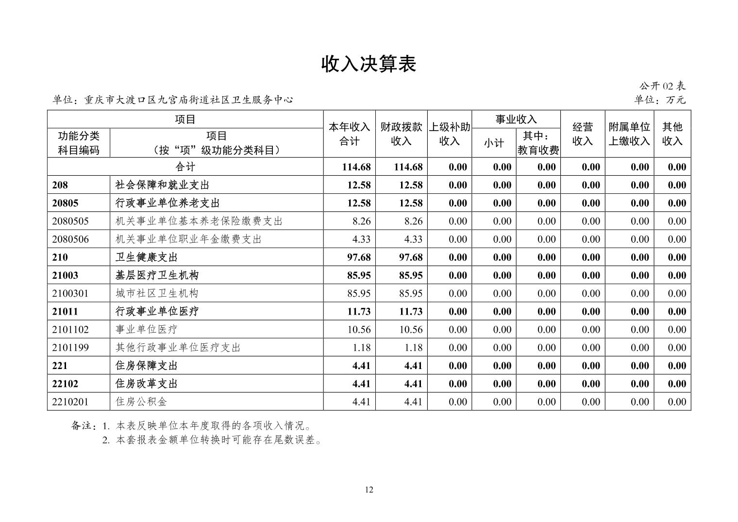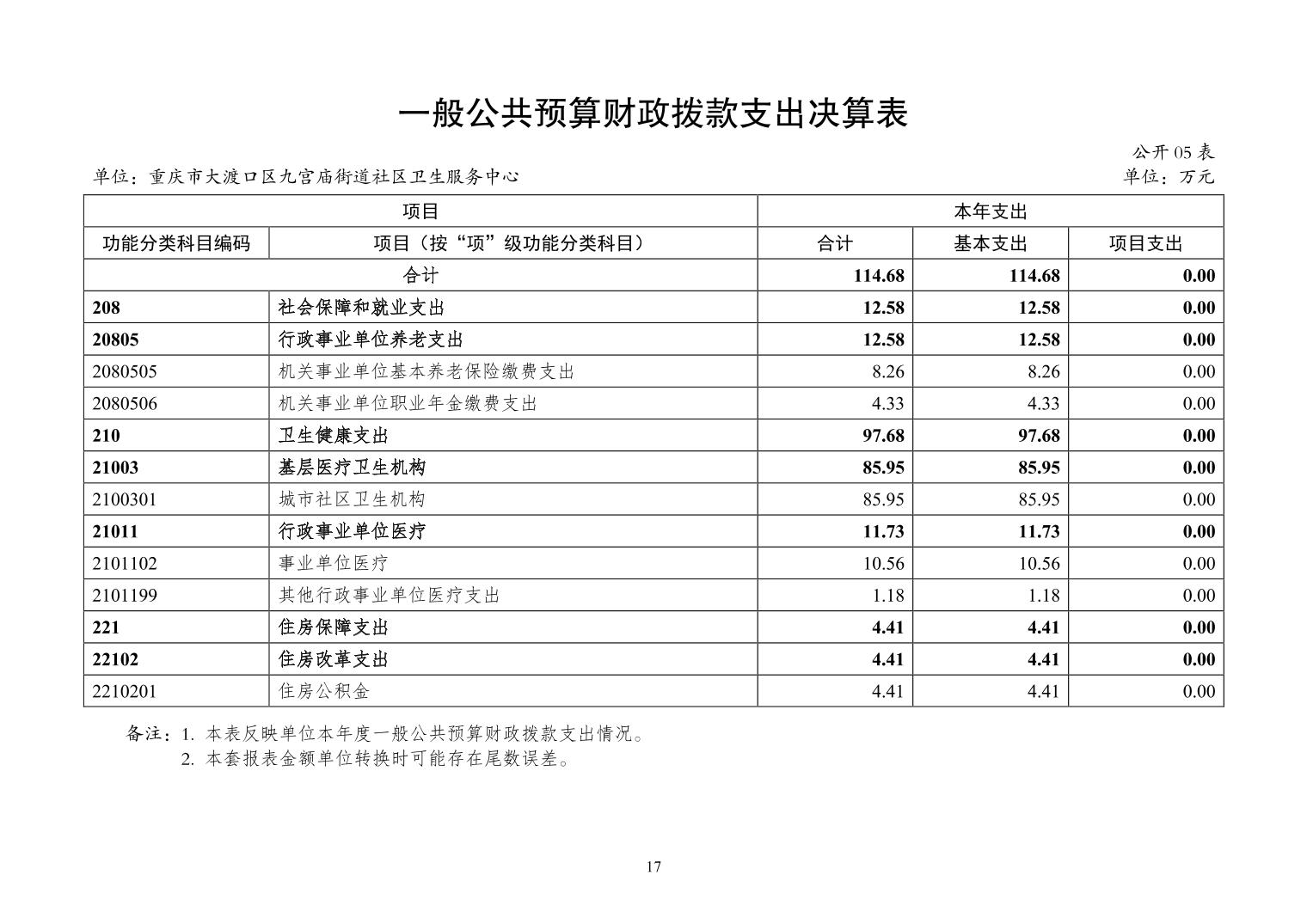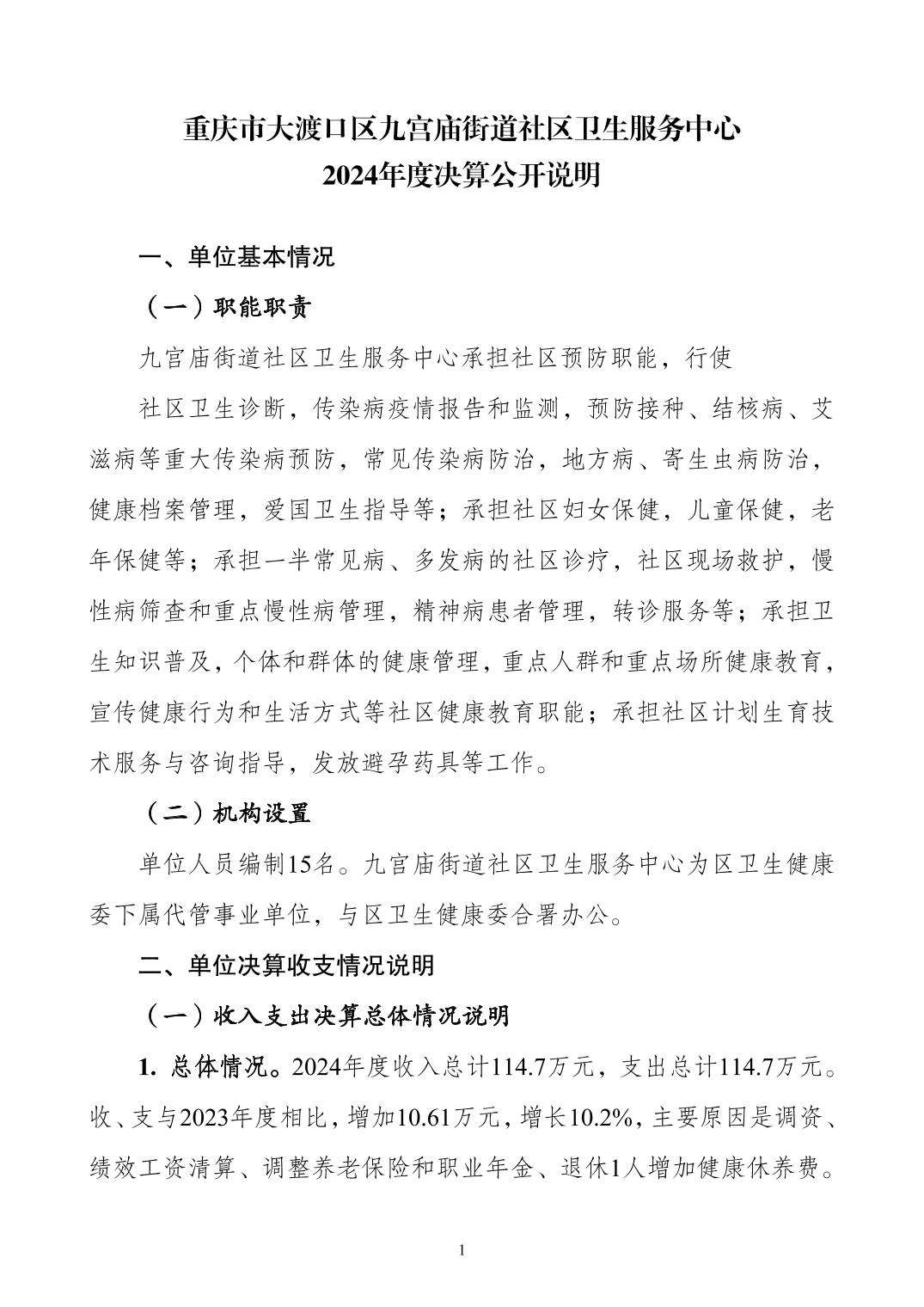 重庆市大渡口区九宫庙街道社区卫生服务中心2024年度决算公开说明