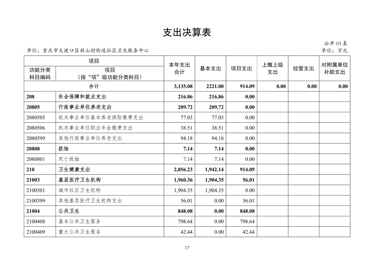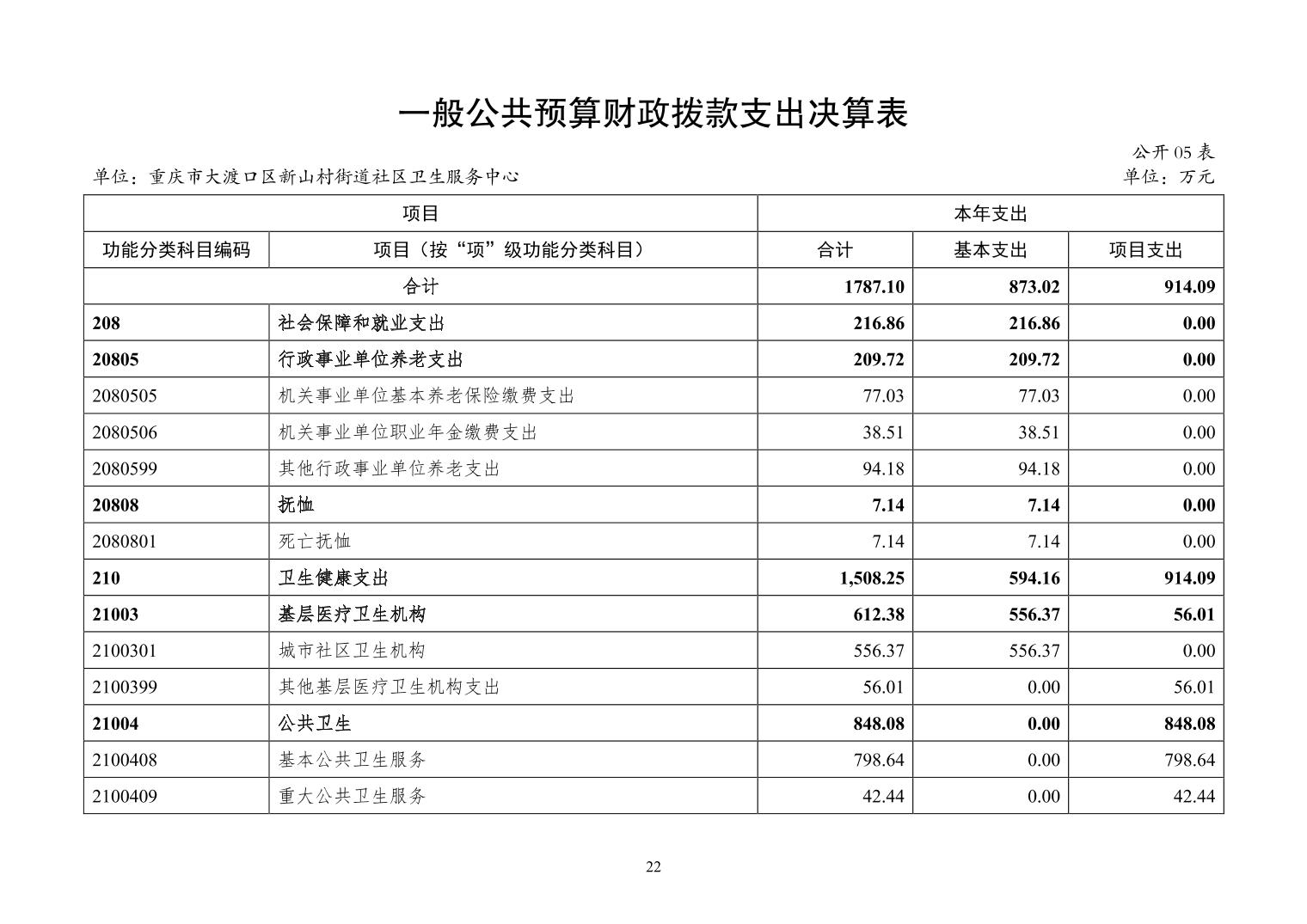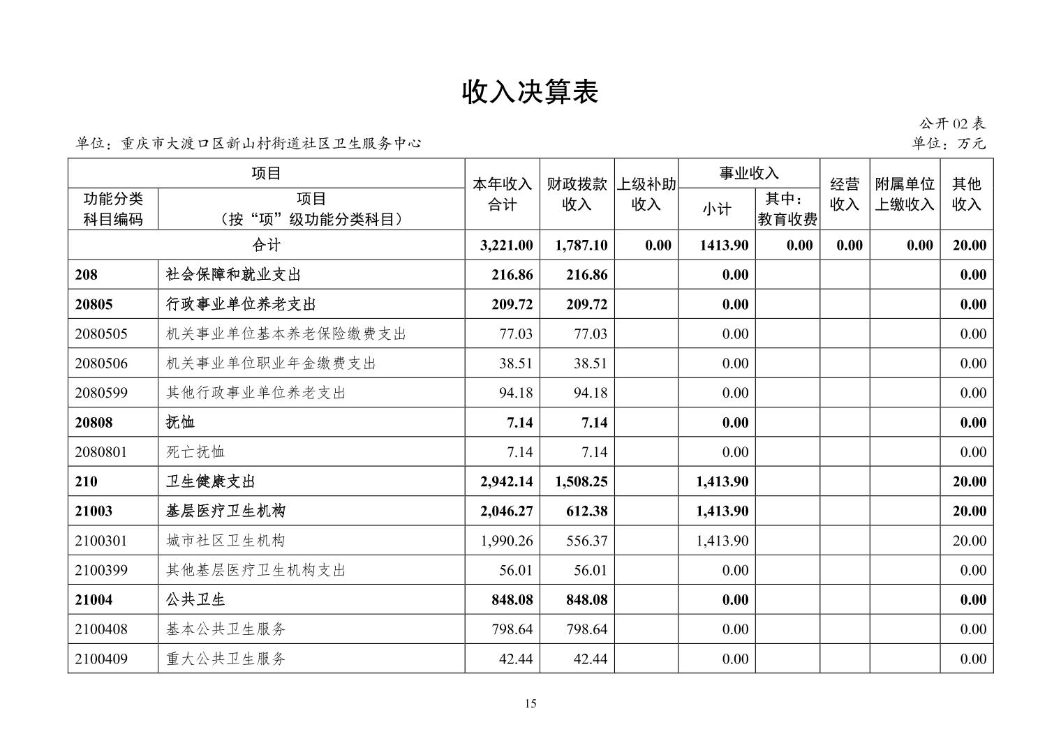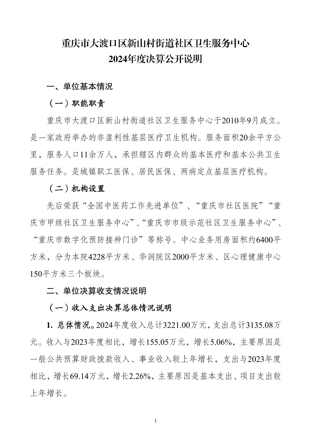 重庆市大渡口区新山村街道社区卫生服务中心2024年度决算公开说明