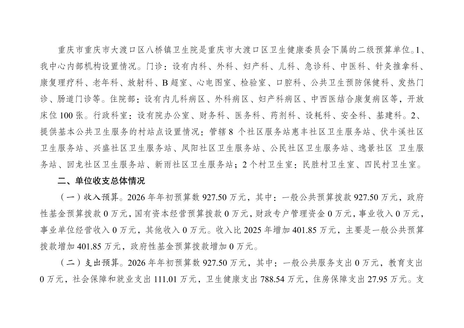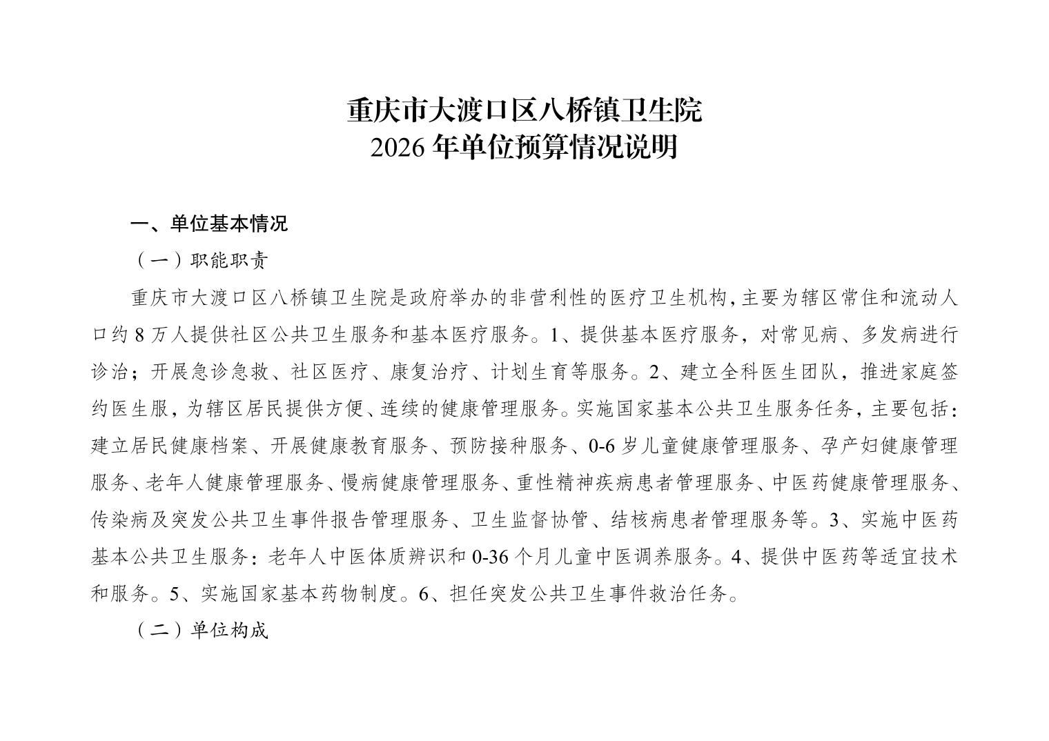重庆市大渡口区八桥镇卫生院2026年单位预算情况说明