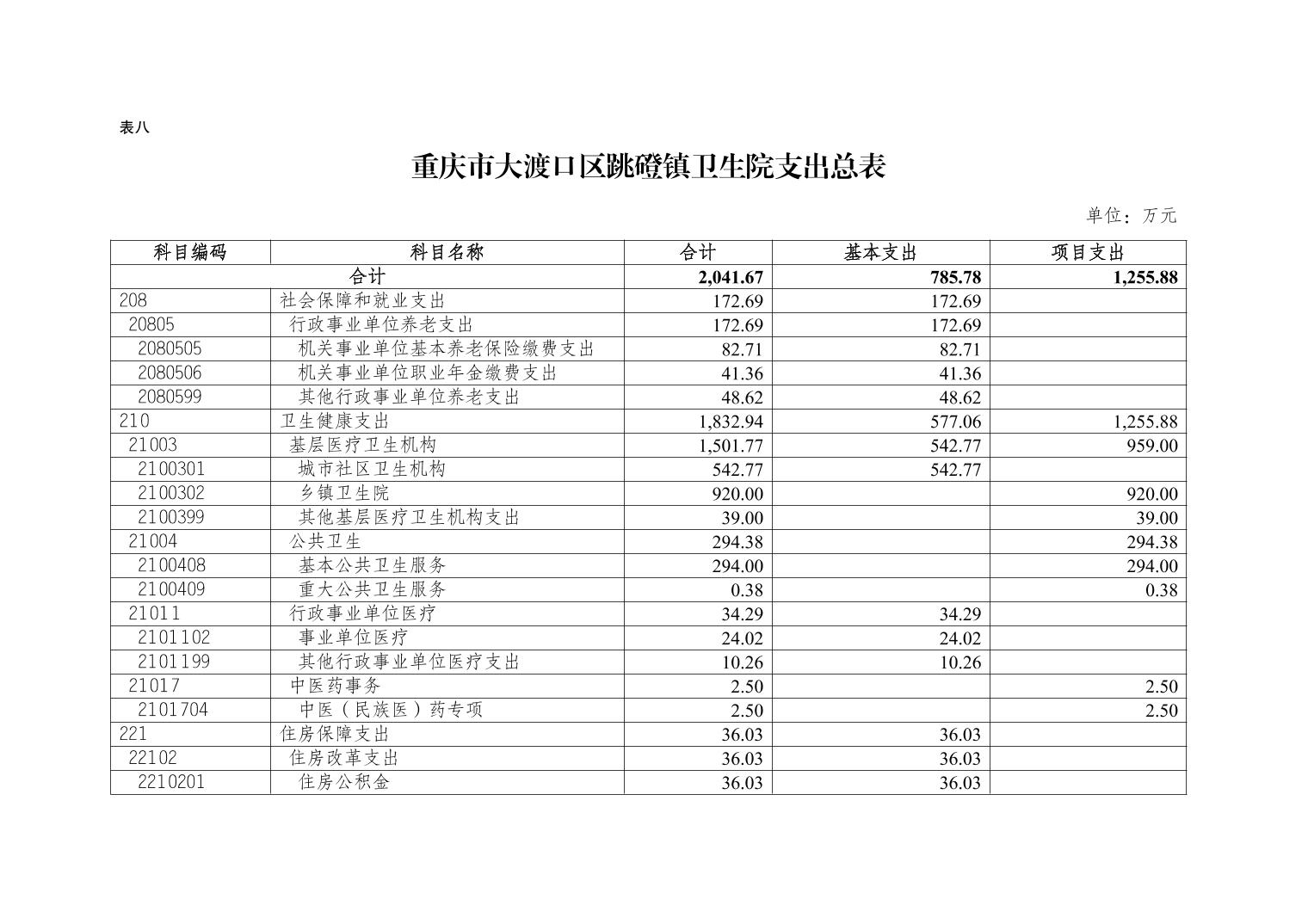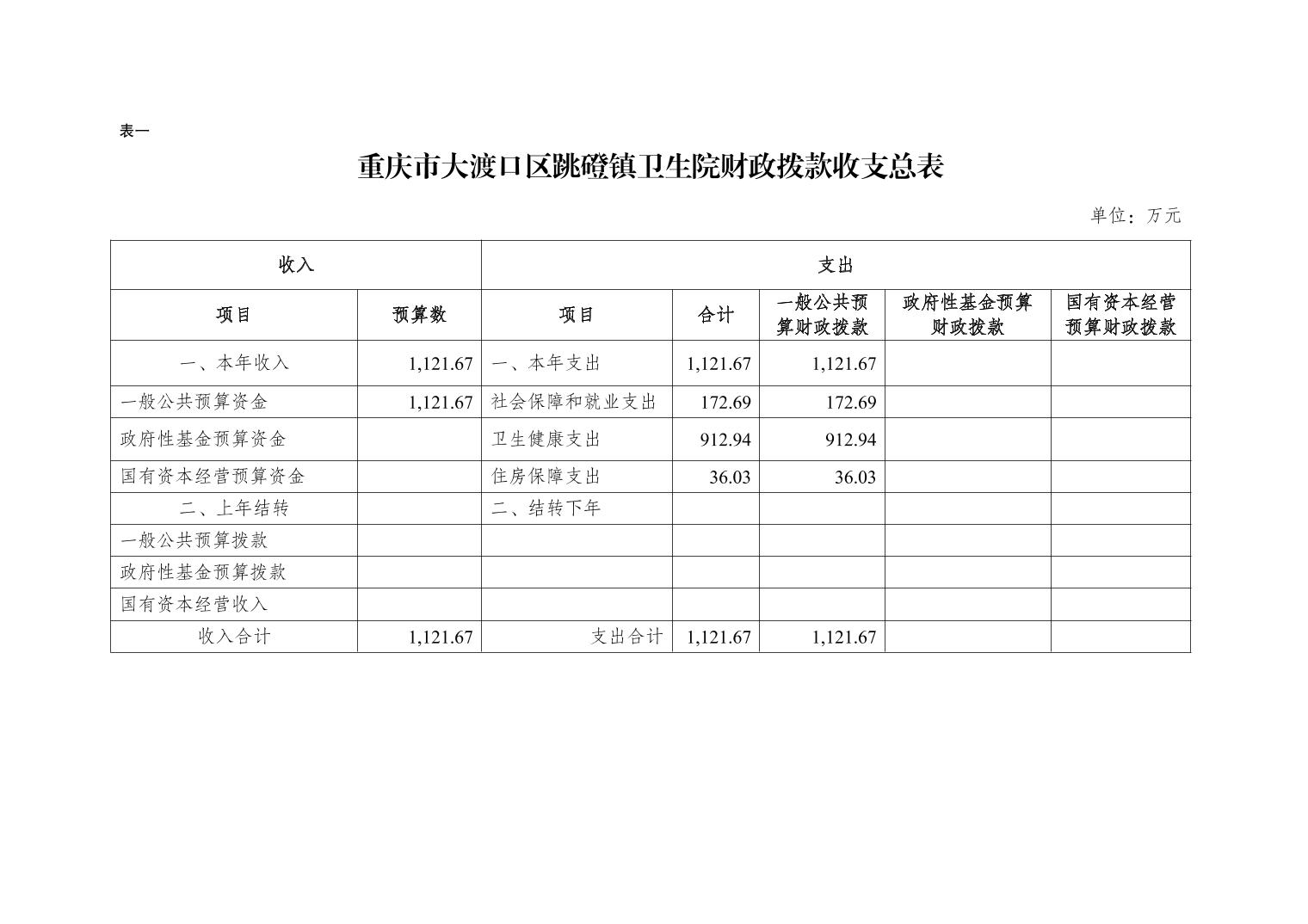 重庆市大渡口区跳磴镇卫生院2026年单位预算情况说明