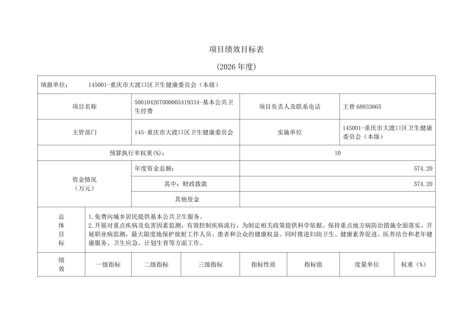 重庆市大渡口区卫生健康委员会(本级)2026年单位预算情况说明