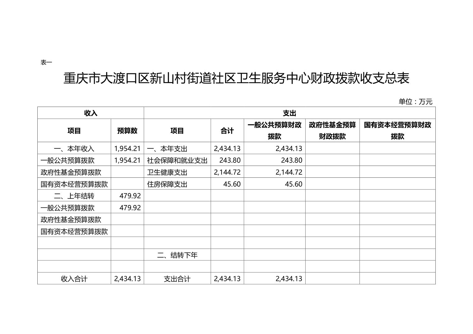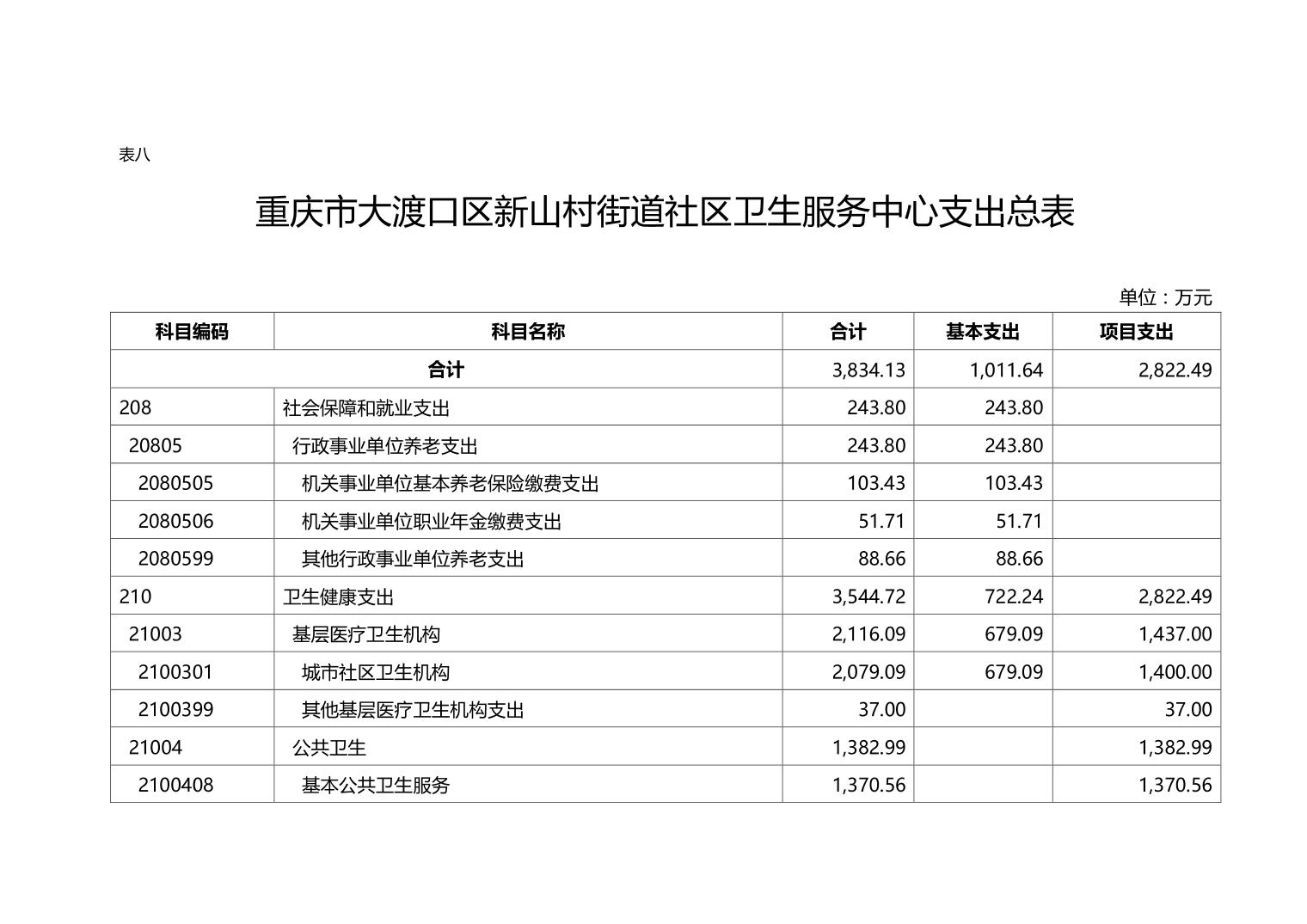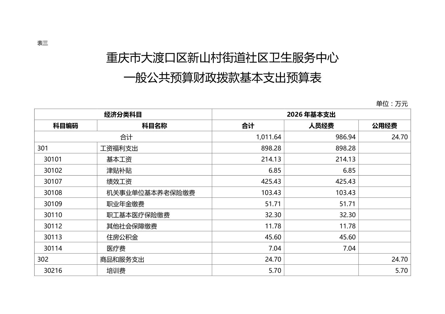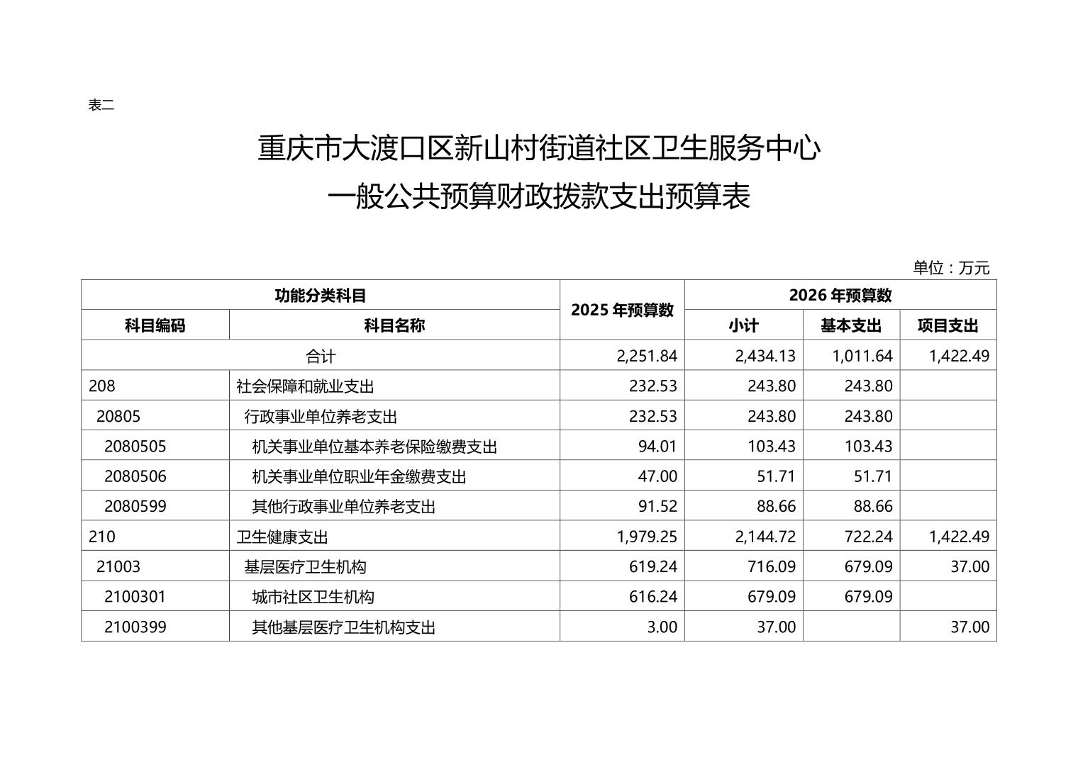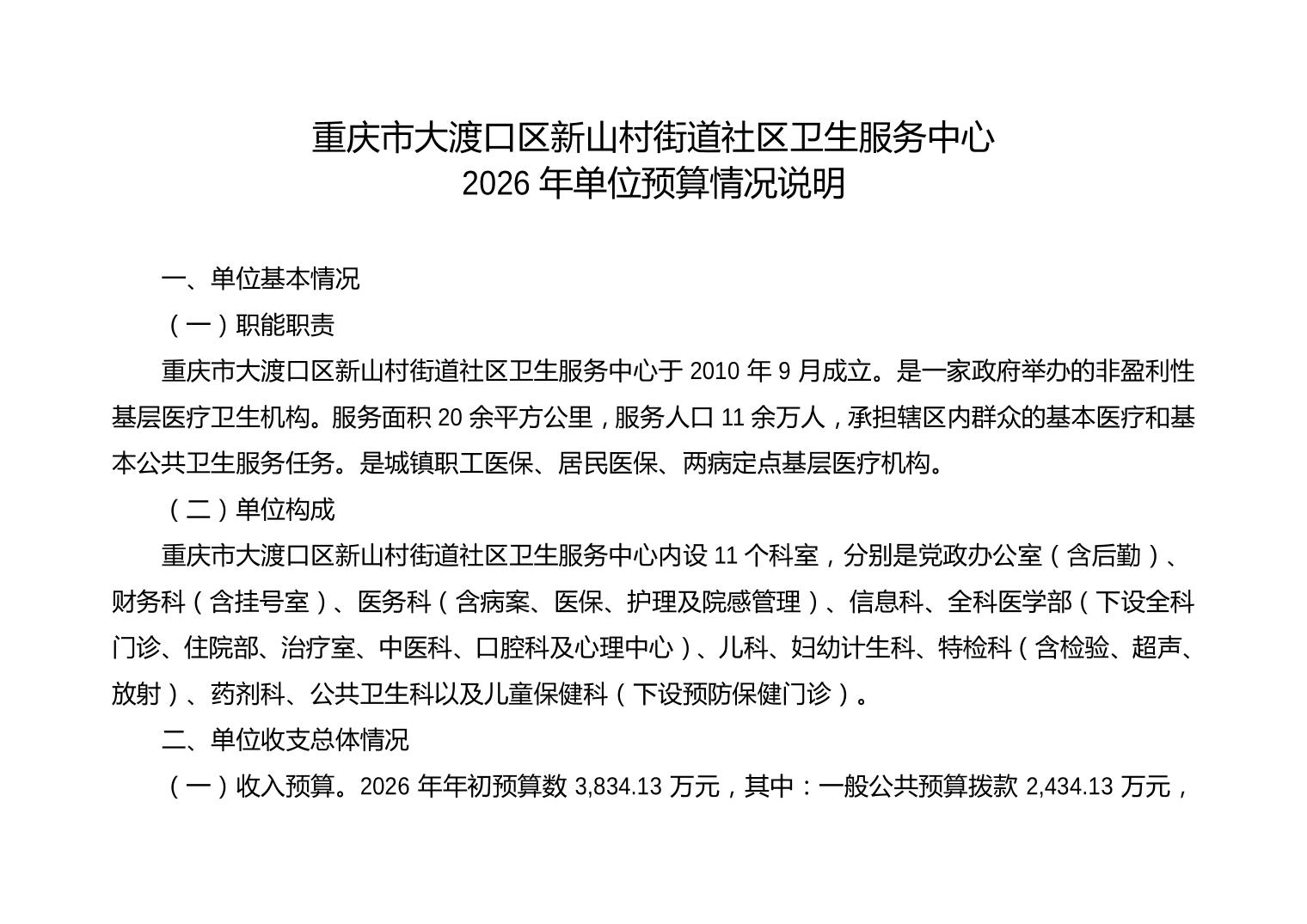 重庆市大渡口区新山村街道社区卫生服务中心2026年单位预算情况说明