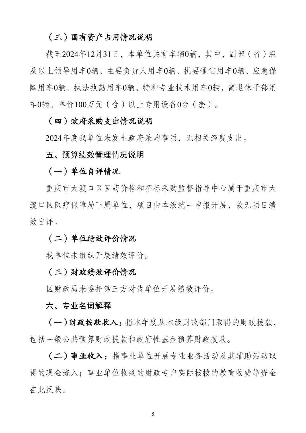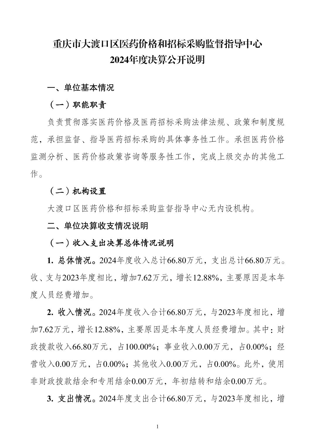 重庆市大渡口区医药价格和招标采购监督指导中心2024年度决算公开说明
