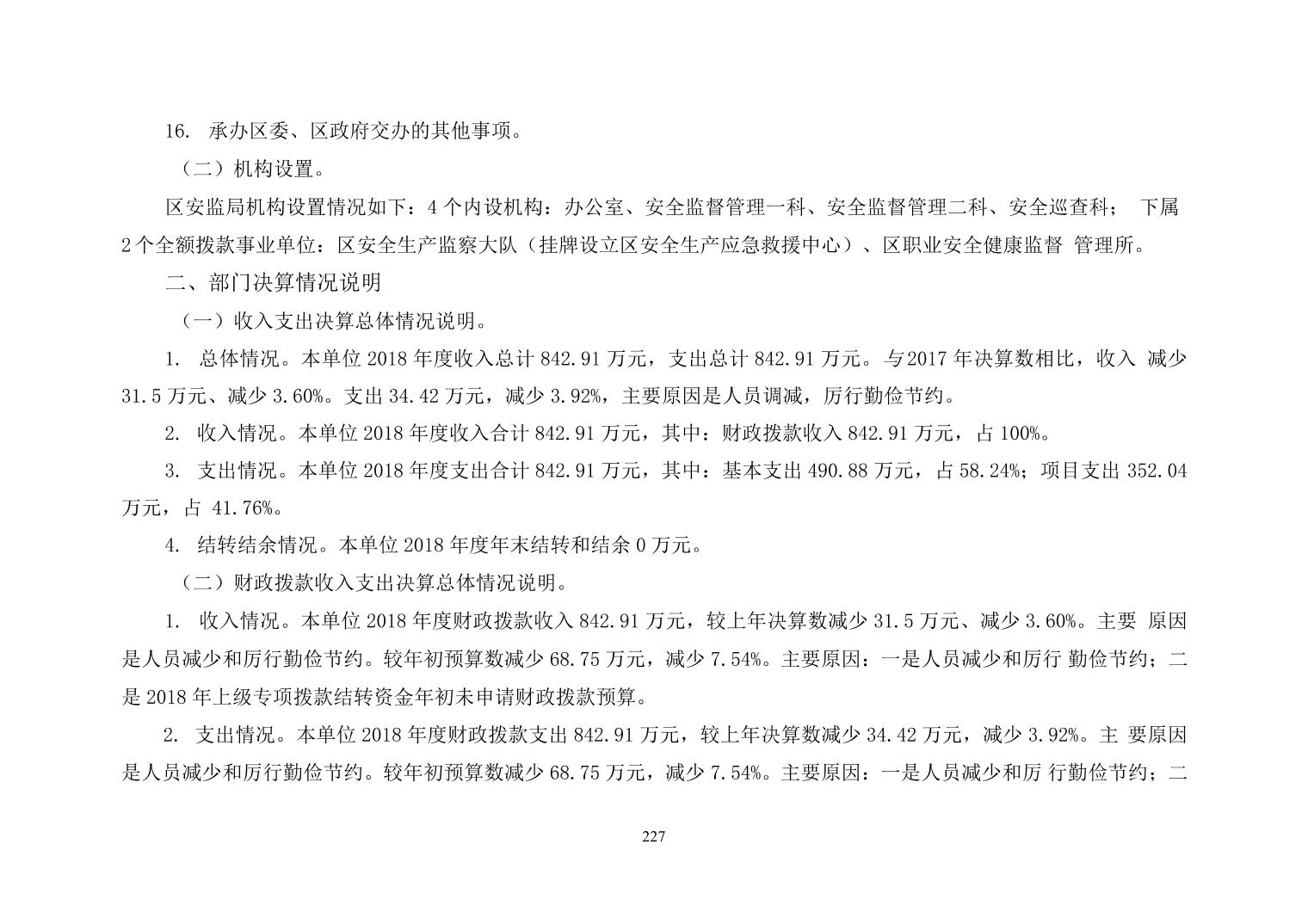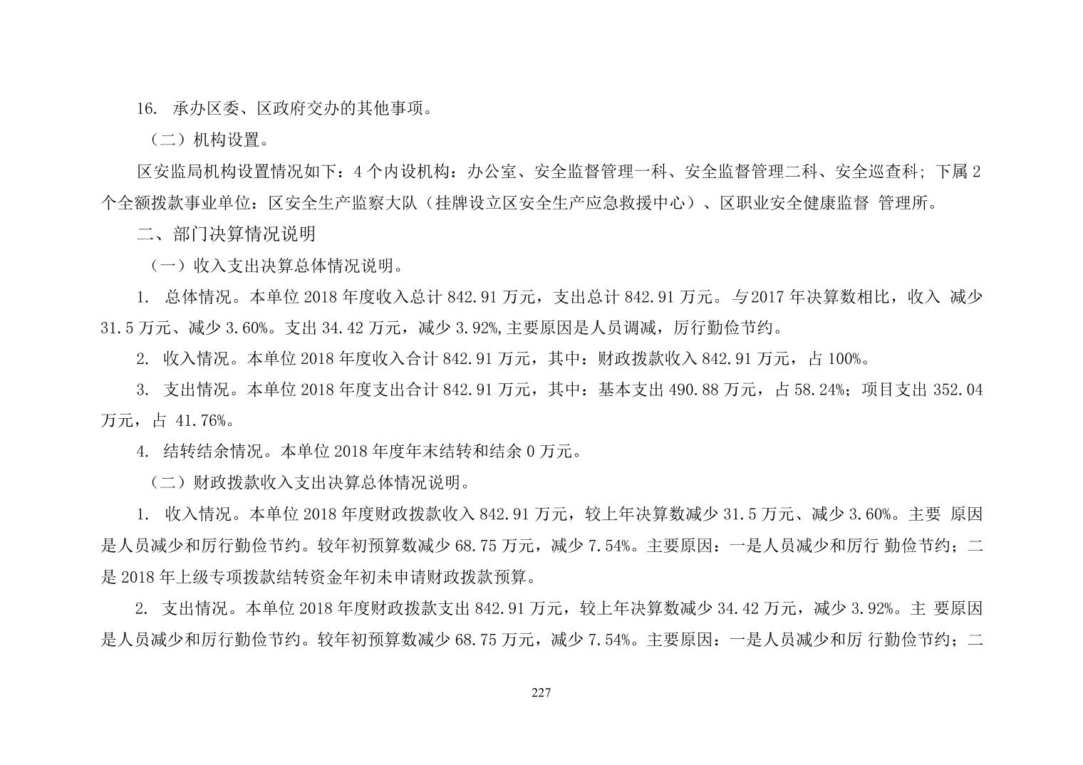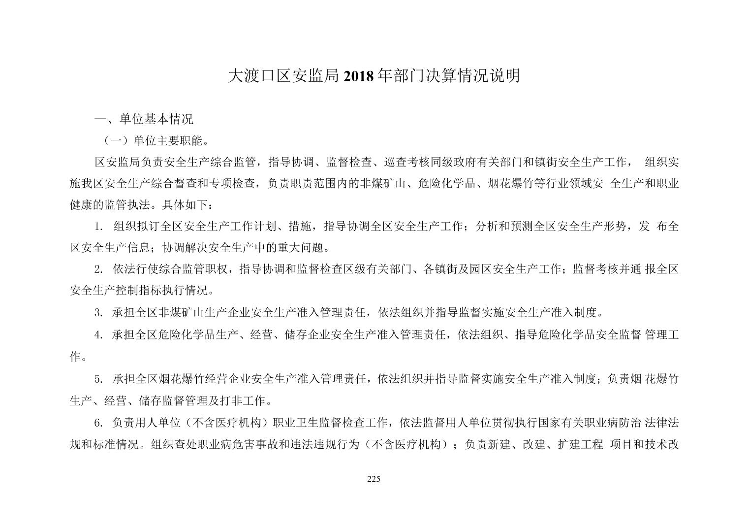 大渡口区安监局2018年部门决算情况说明
