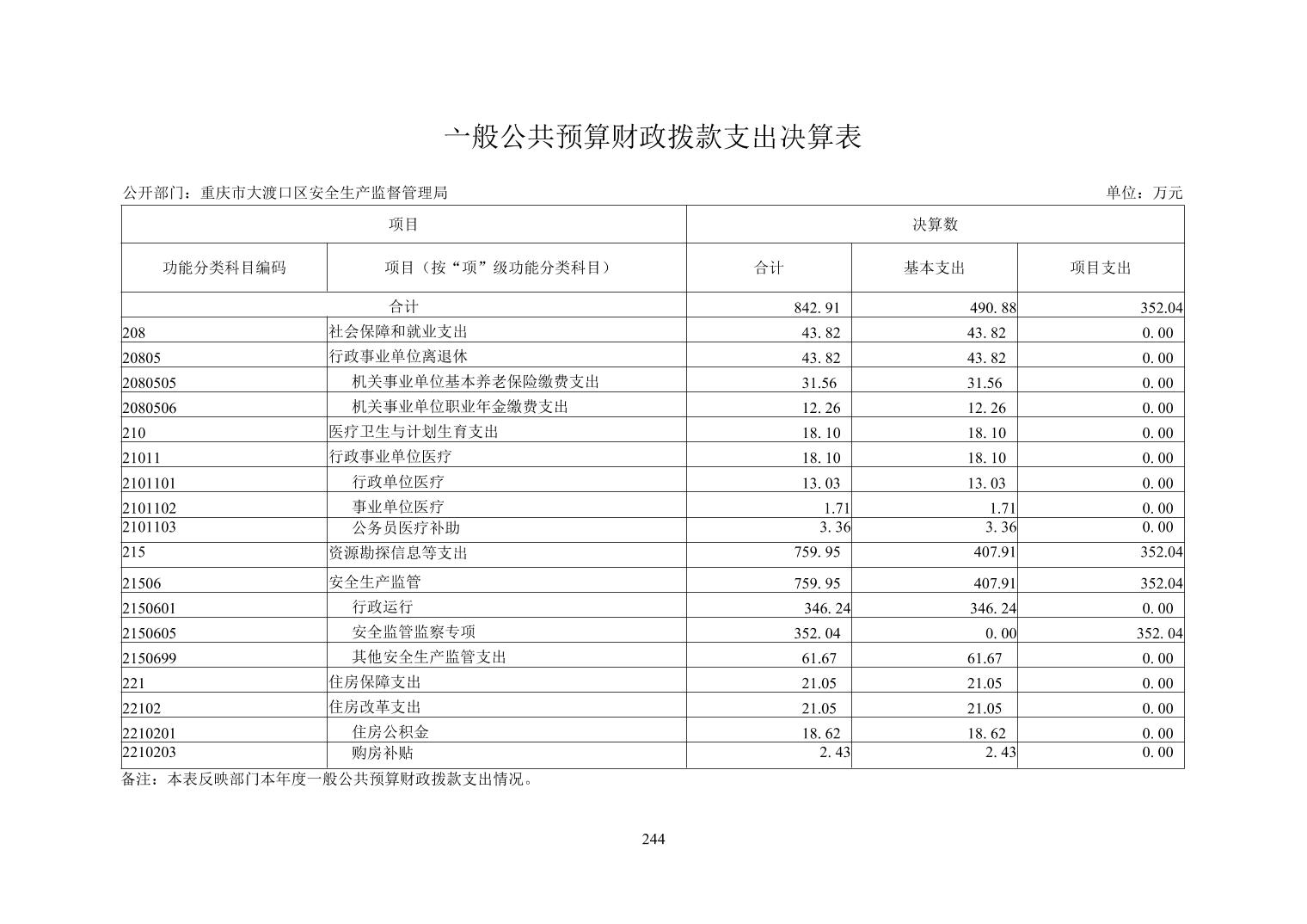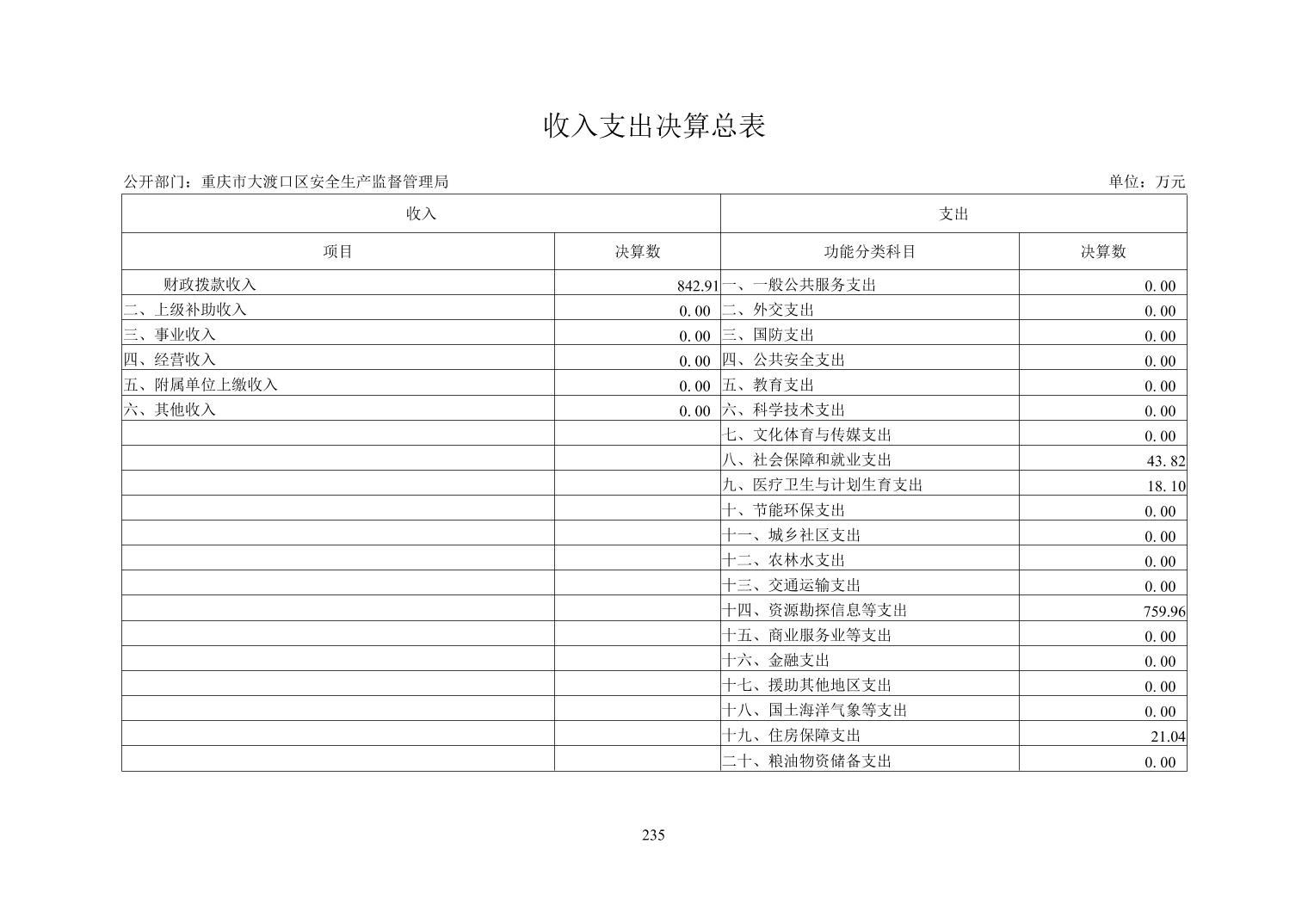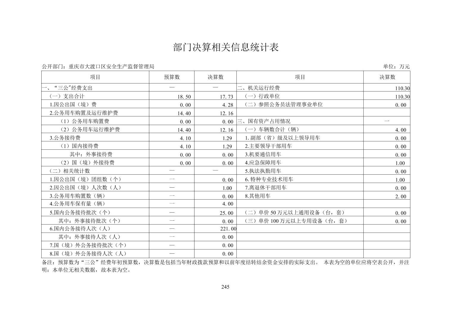大渡口区安监局2018年部门决算情况说明