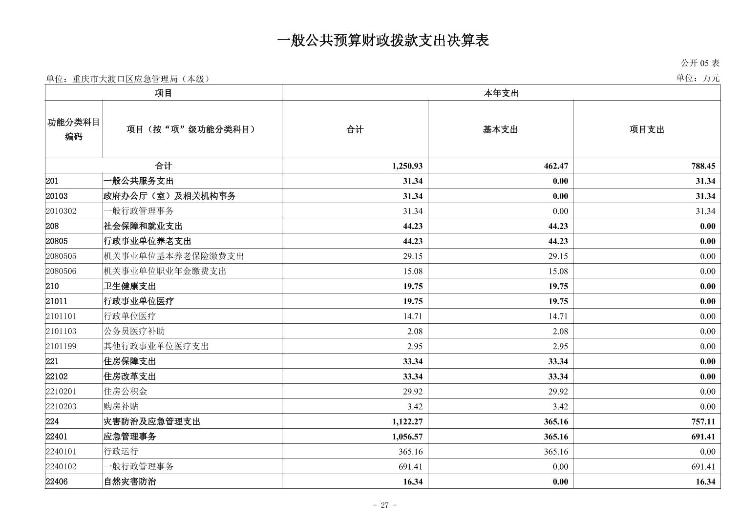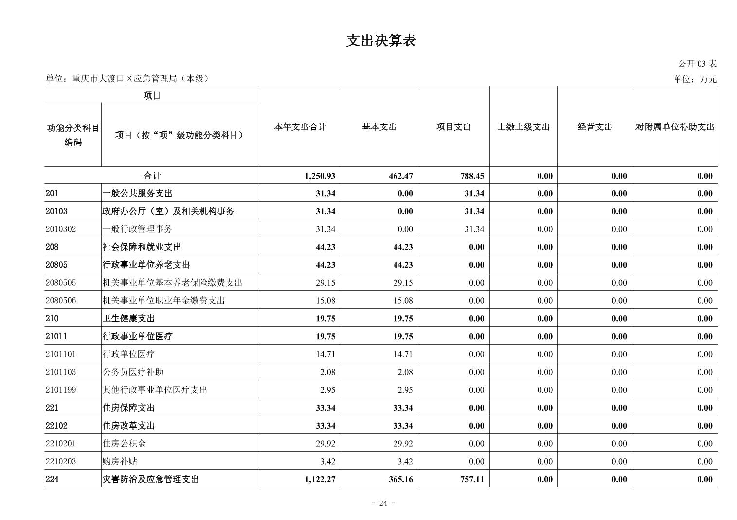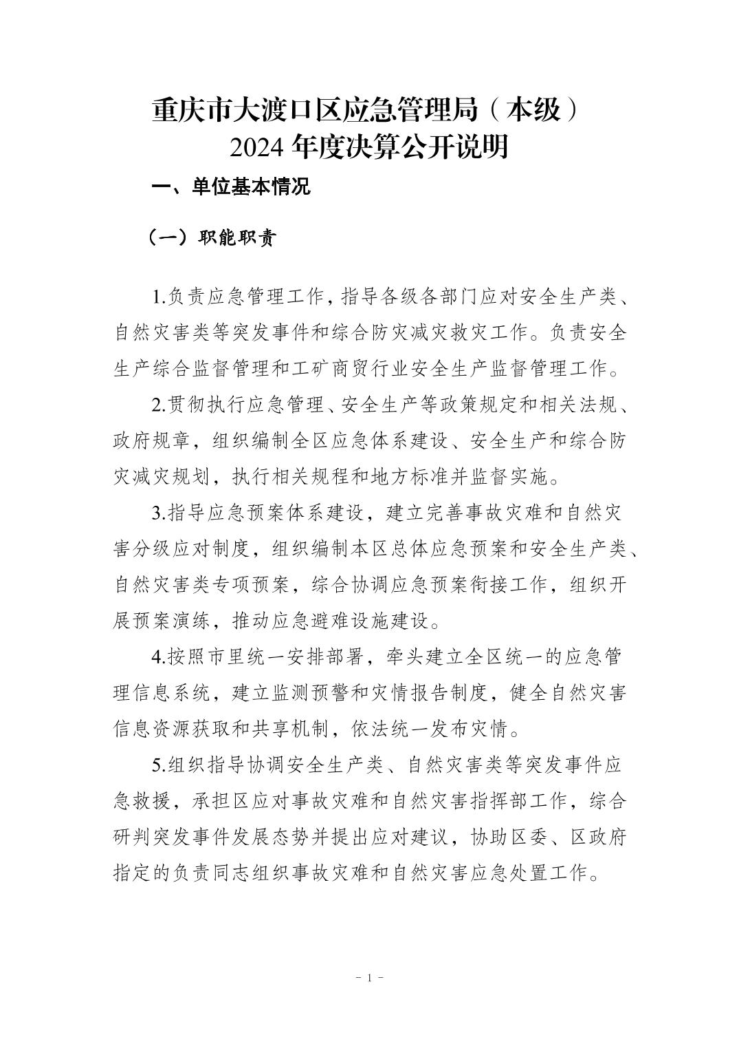 重庆市大渡口区应急管理局(本级)2024年度决算公开说明