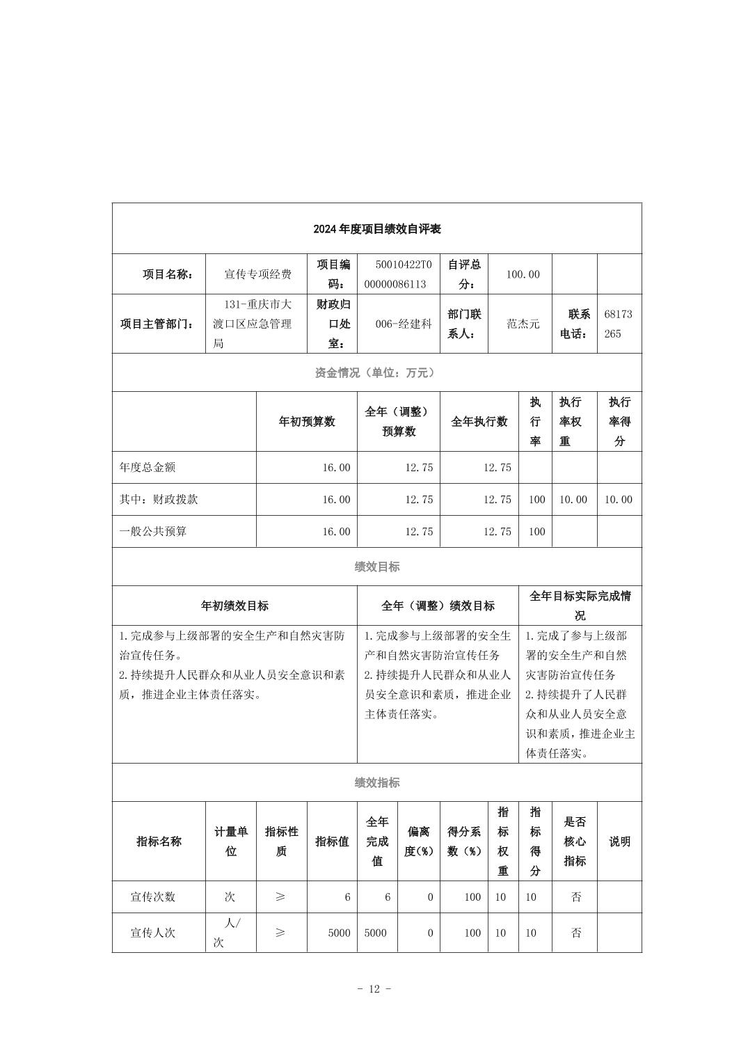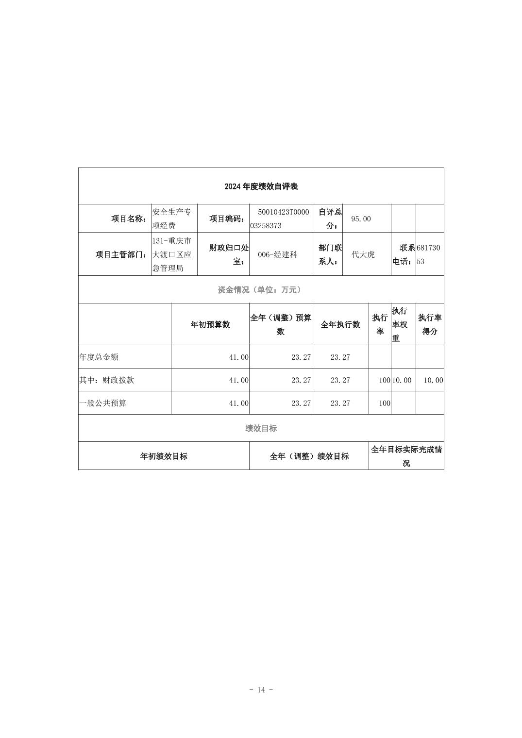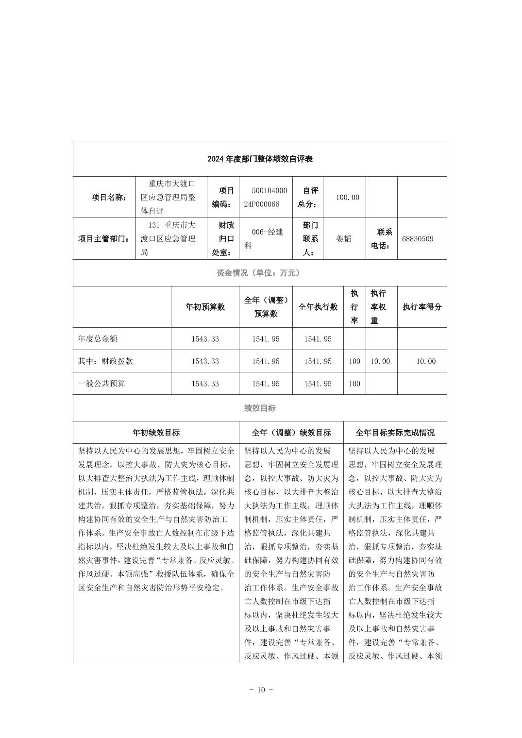 重庆市大渡口区应急管理局(本级)2024年度决算公开说明
