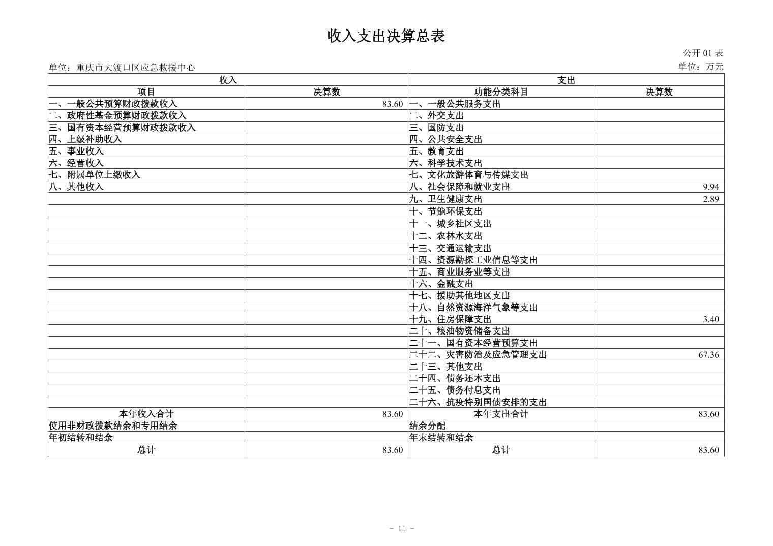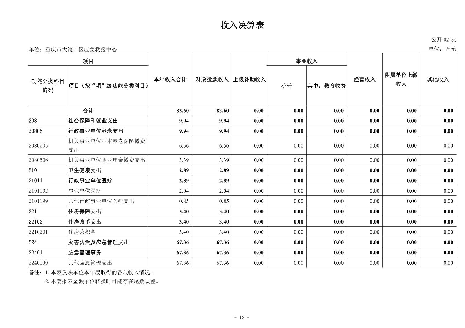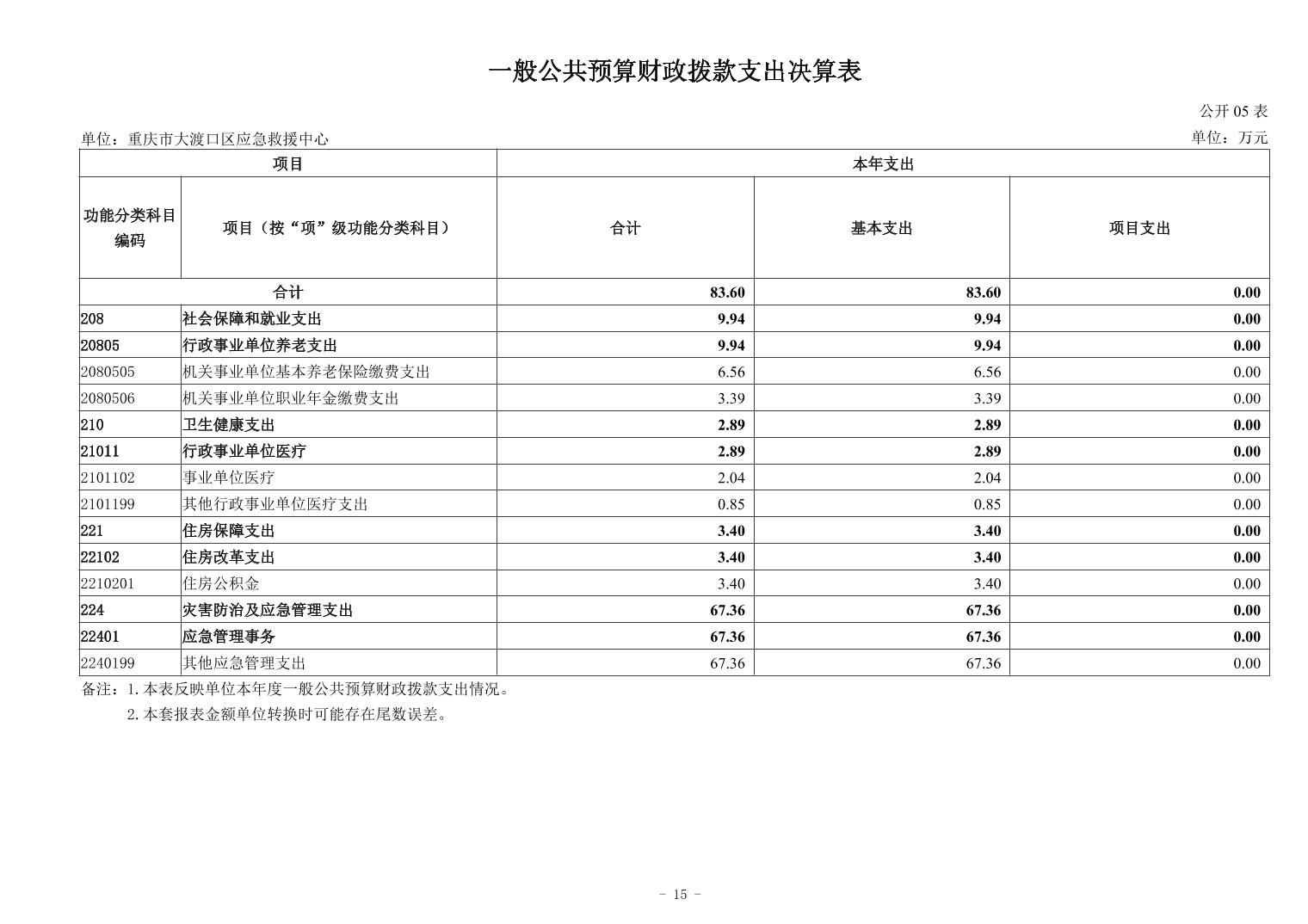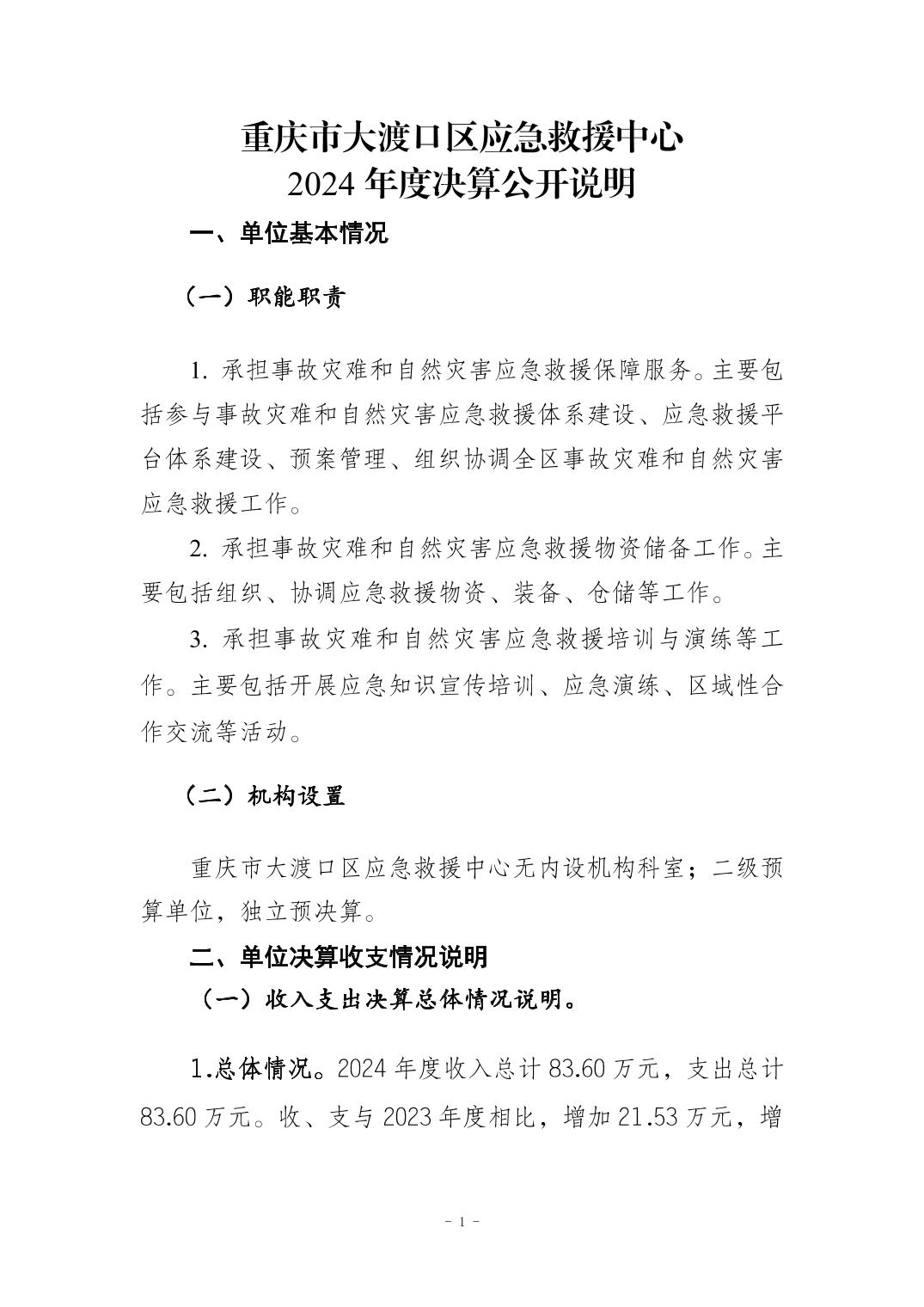 重庆市大渡口区应急救援中心2024年单位决算公开说明及公开报表