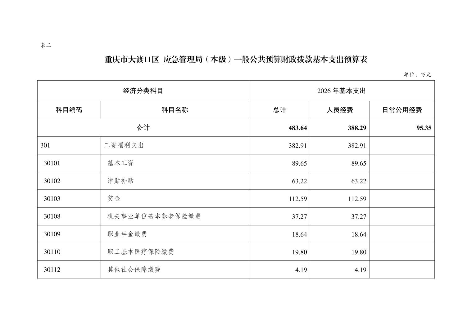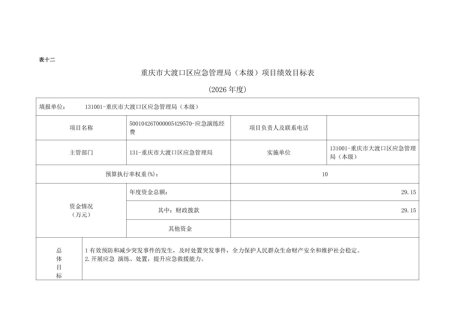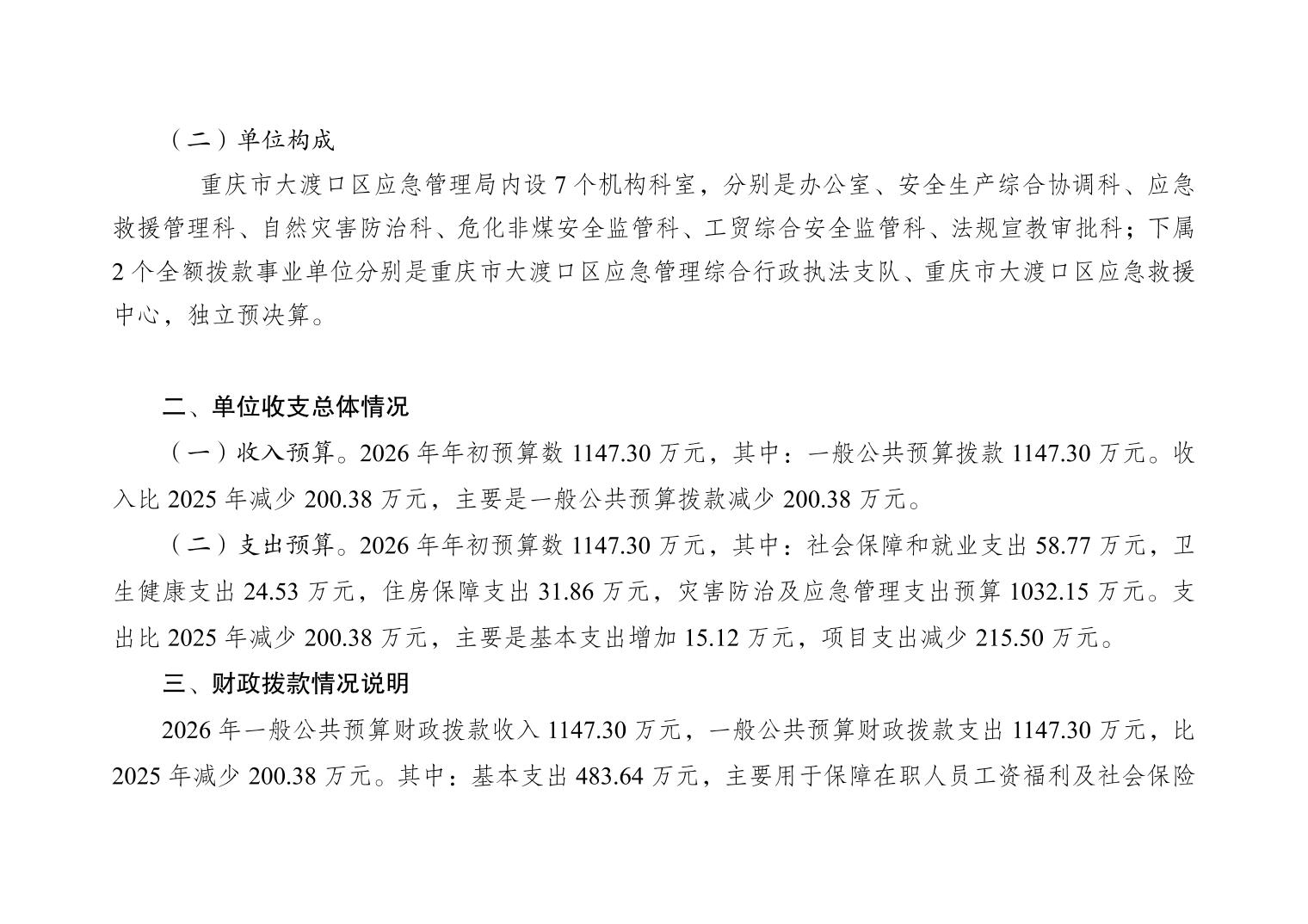 重庆市大渡口区应急管理局(本级)2026年单位预算情况说明