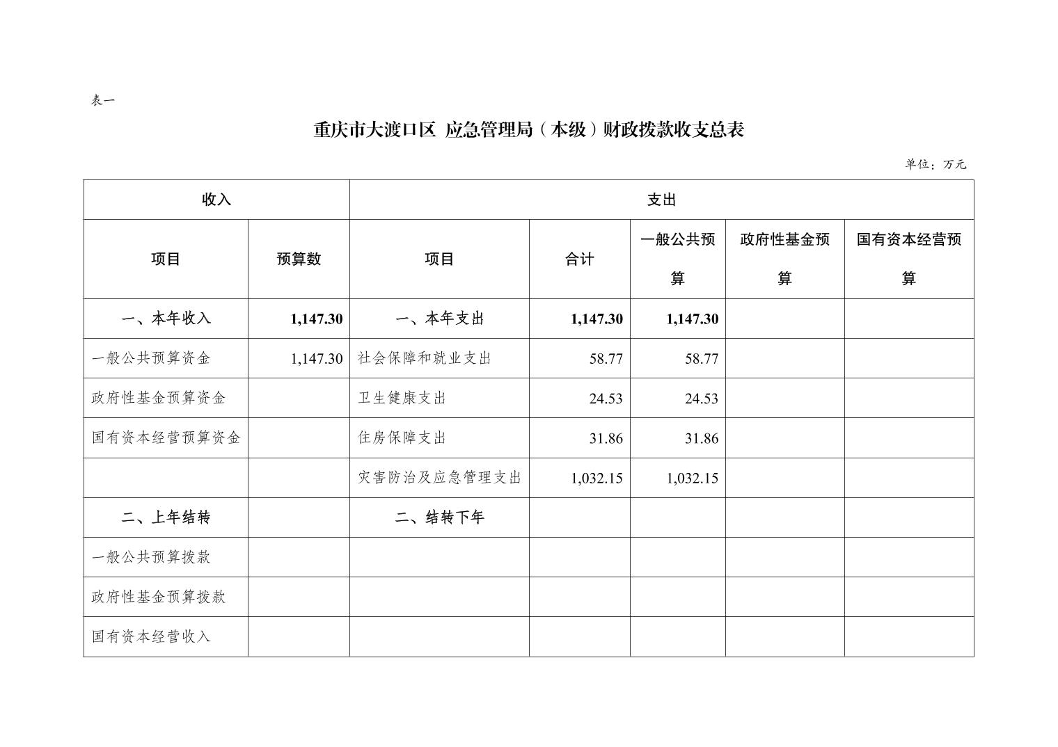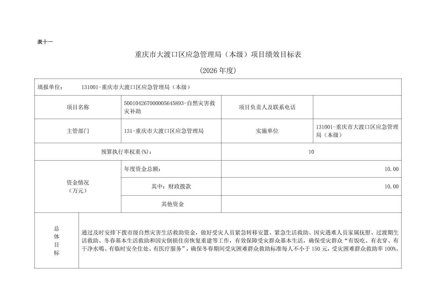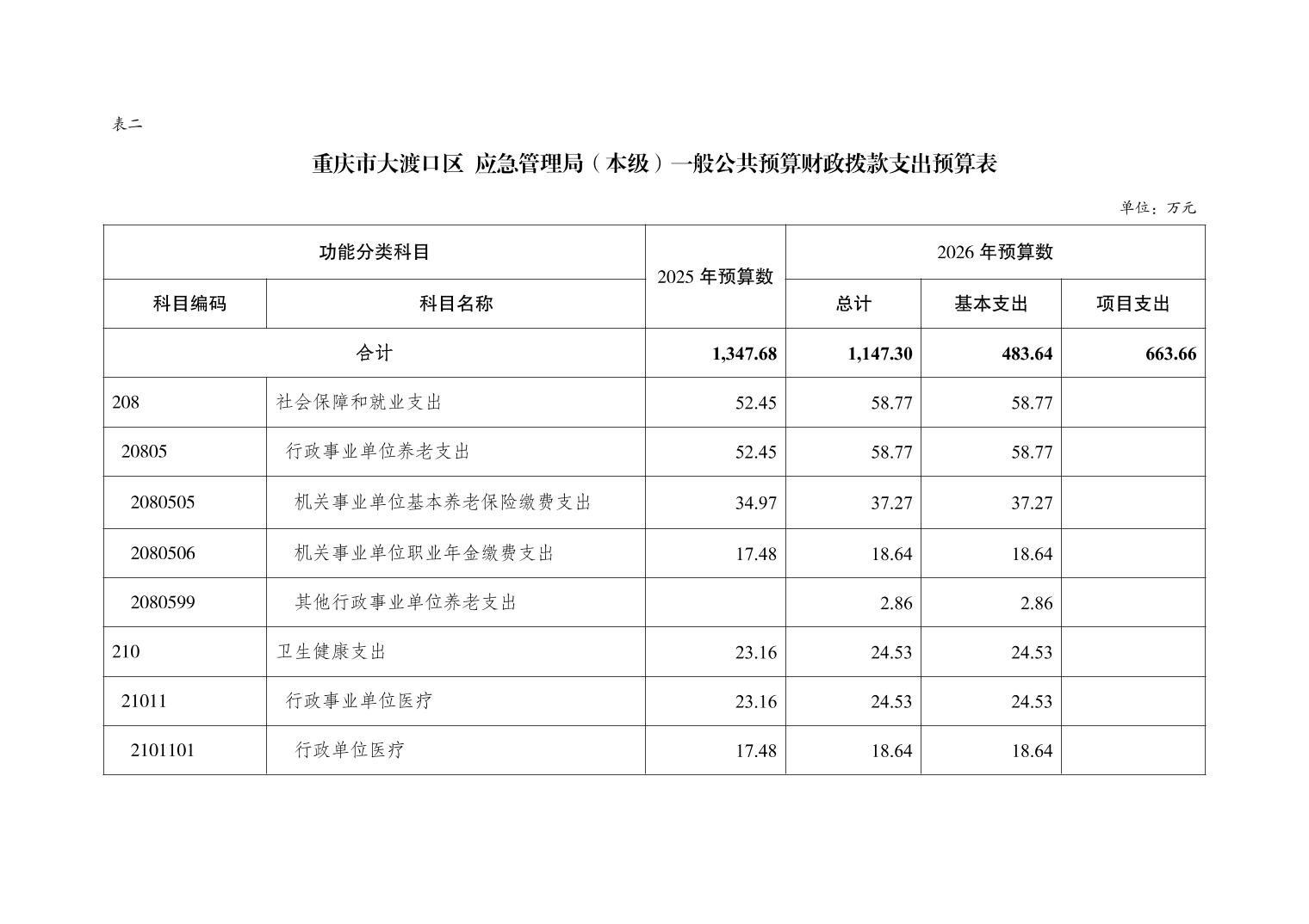 重庆市大渡口区应急管理局(本级)2026年单位预算情况说明