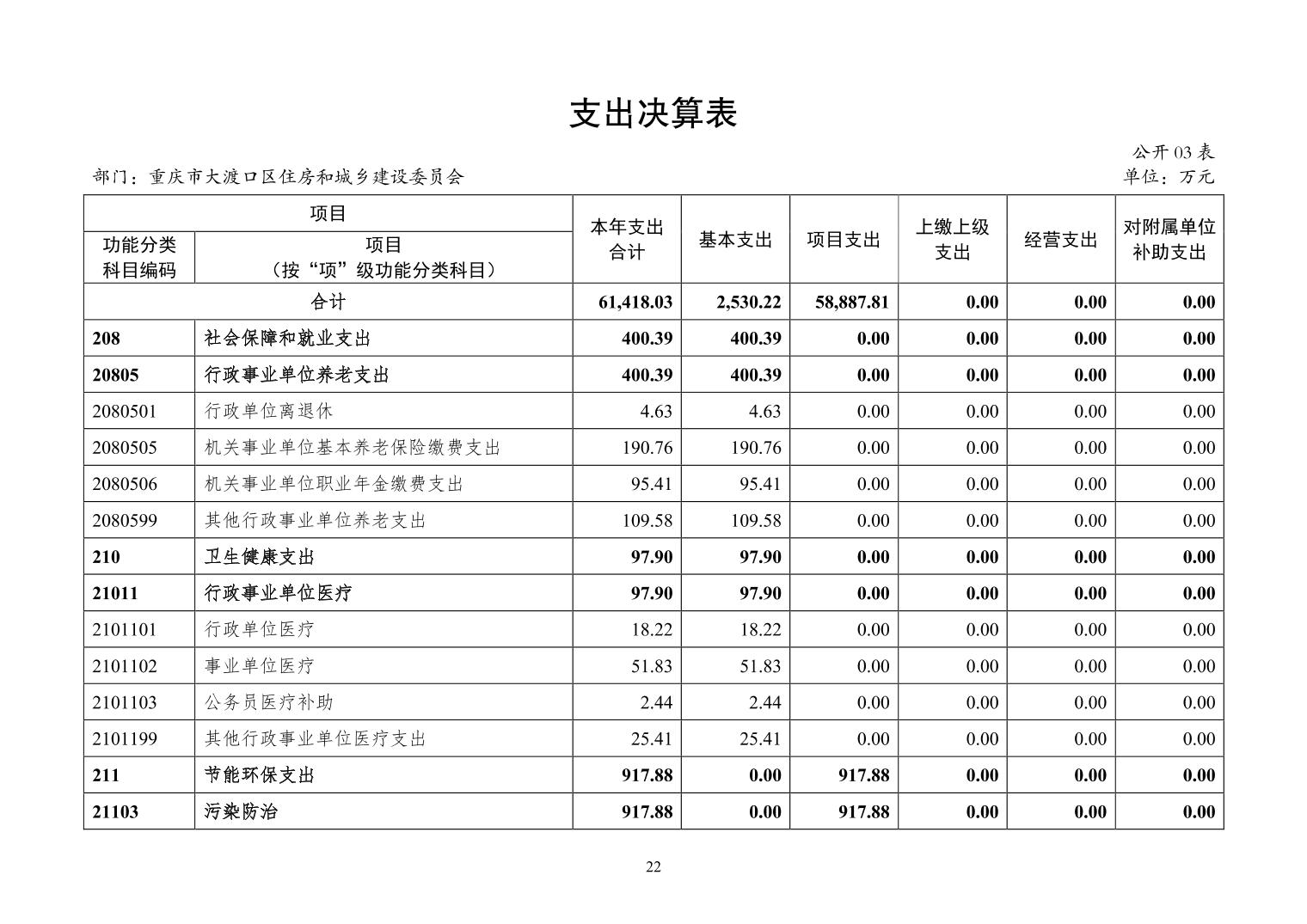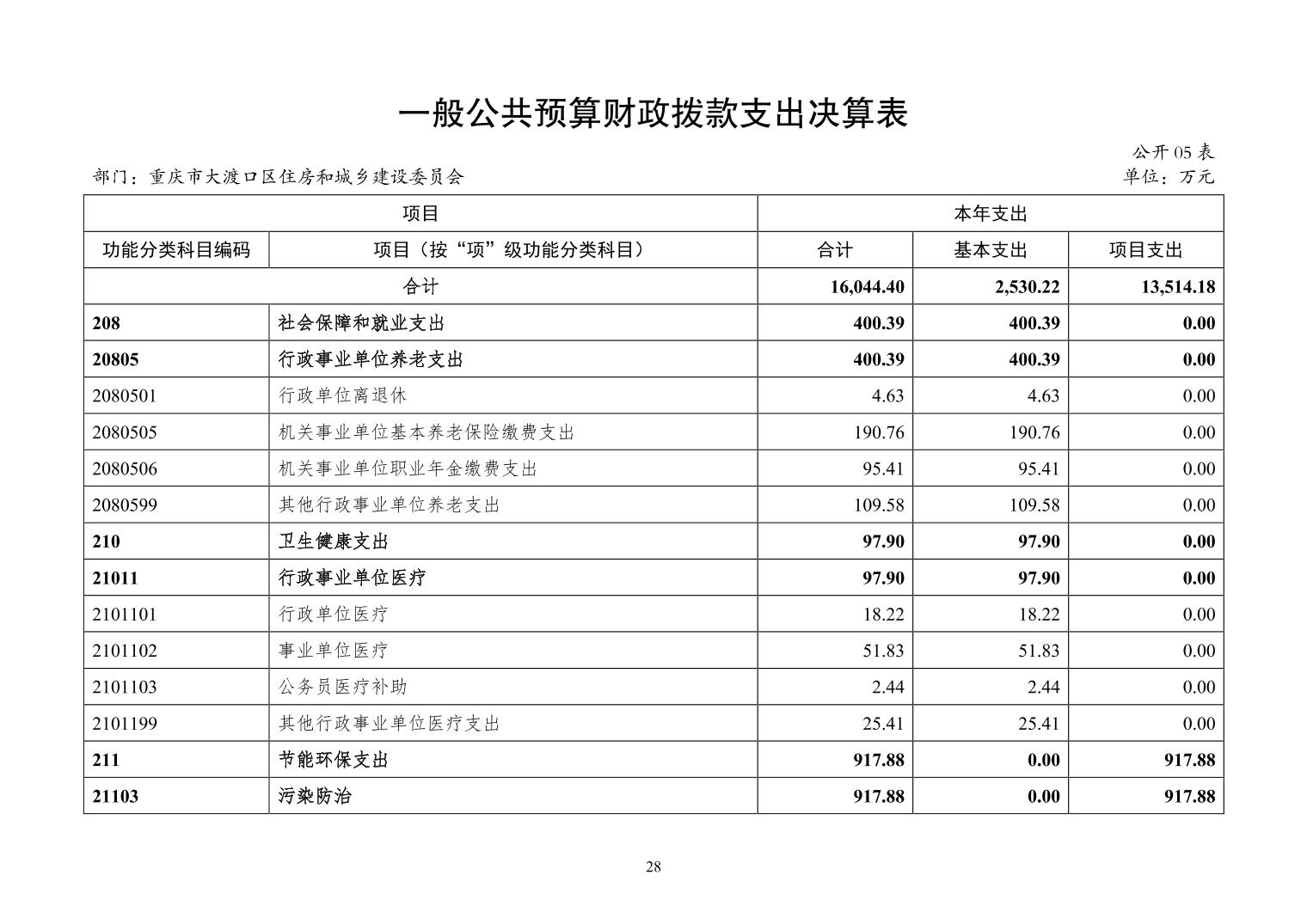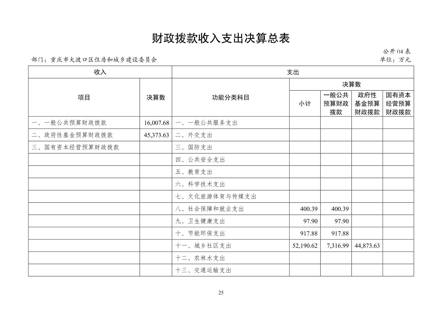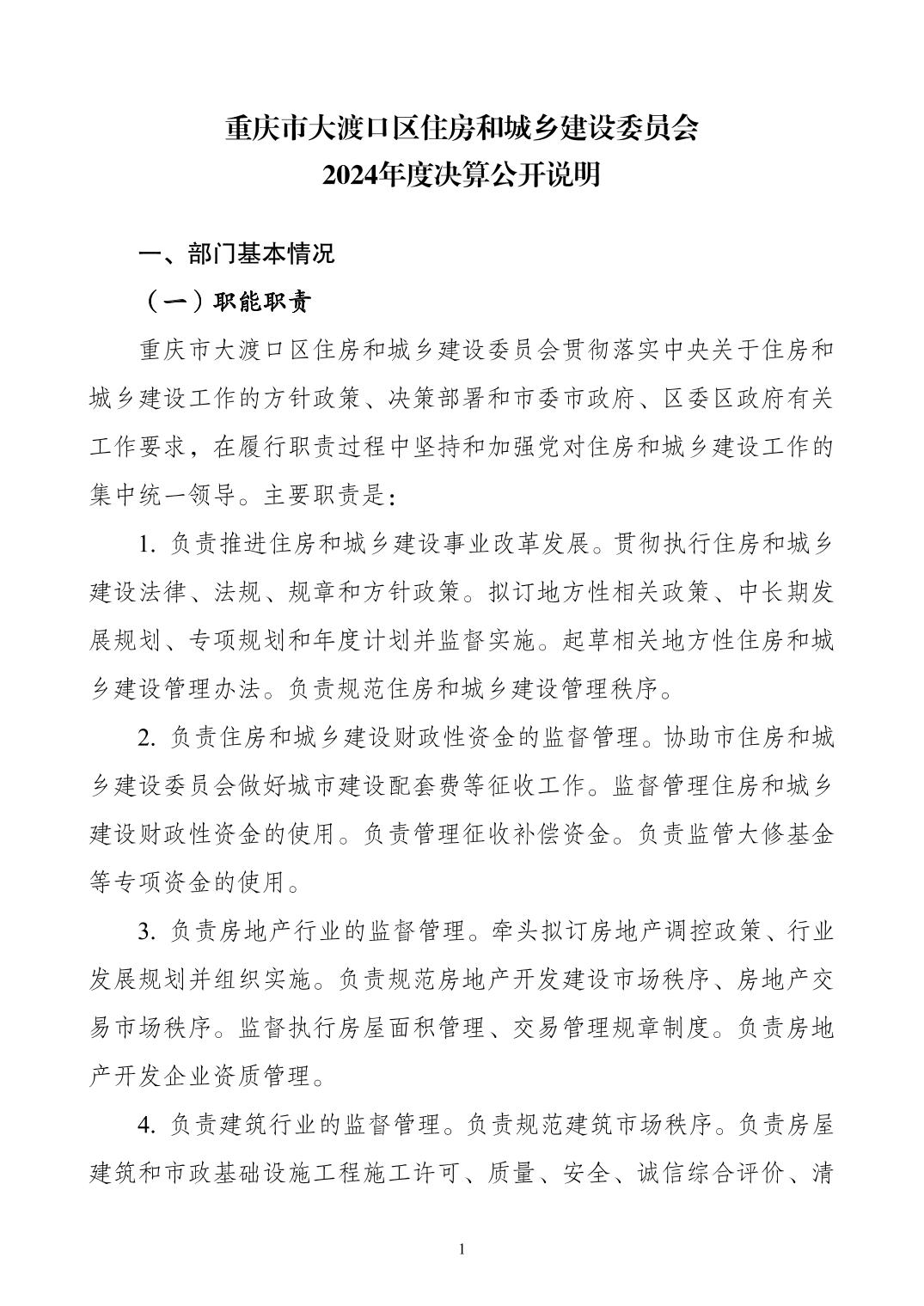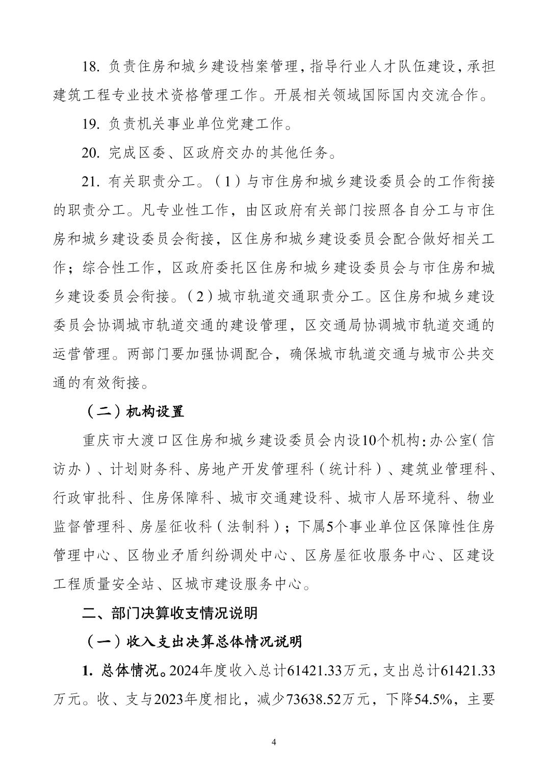 重庆市大渡口区住房和城乡建设委员会 2024 年度决算公开说明