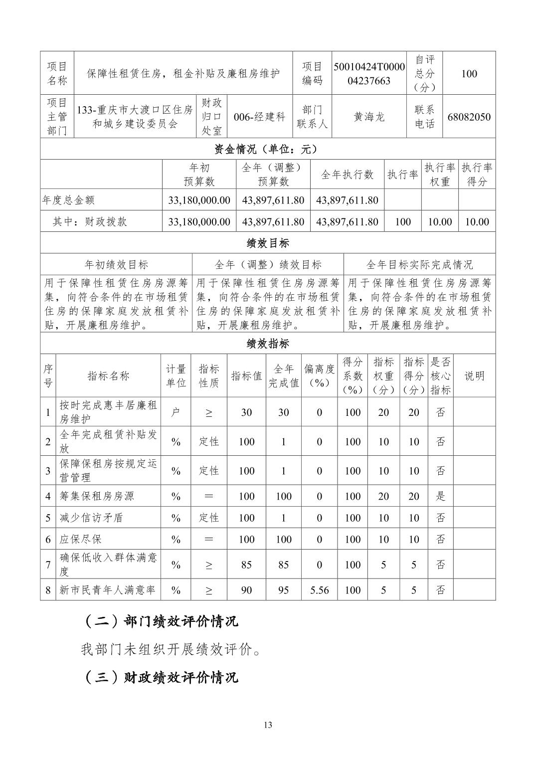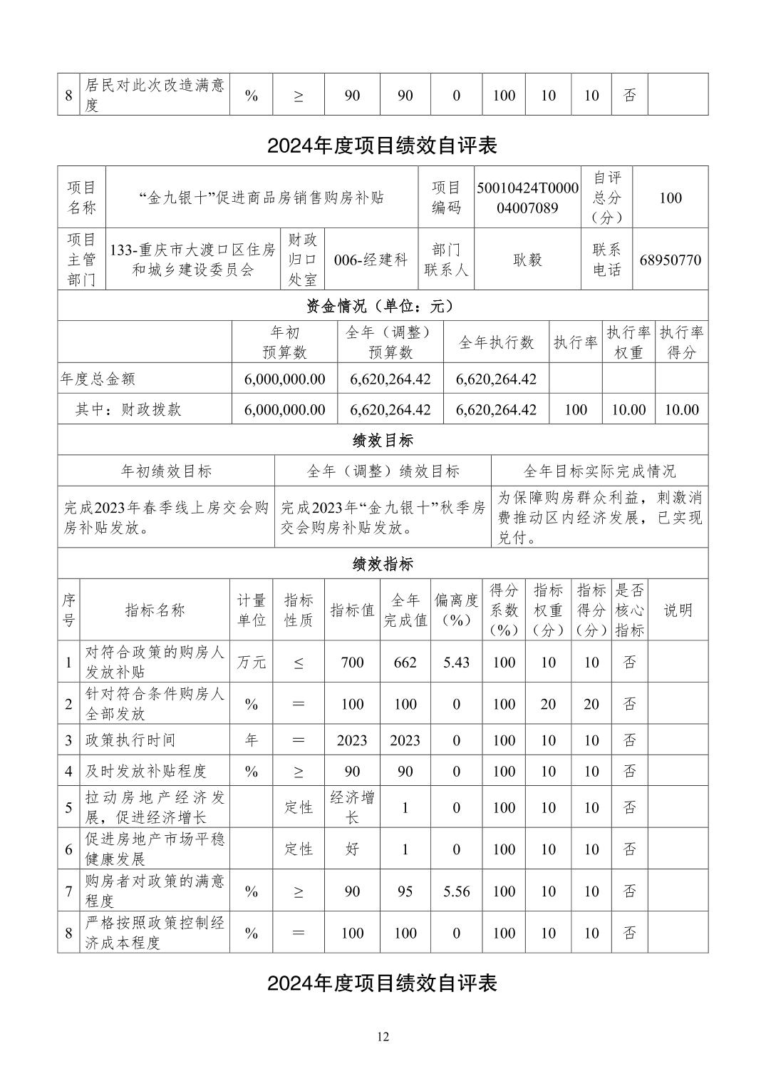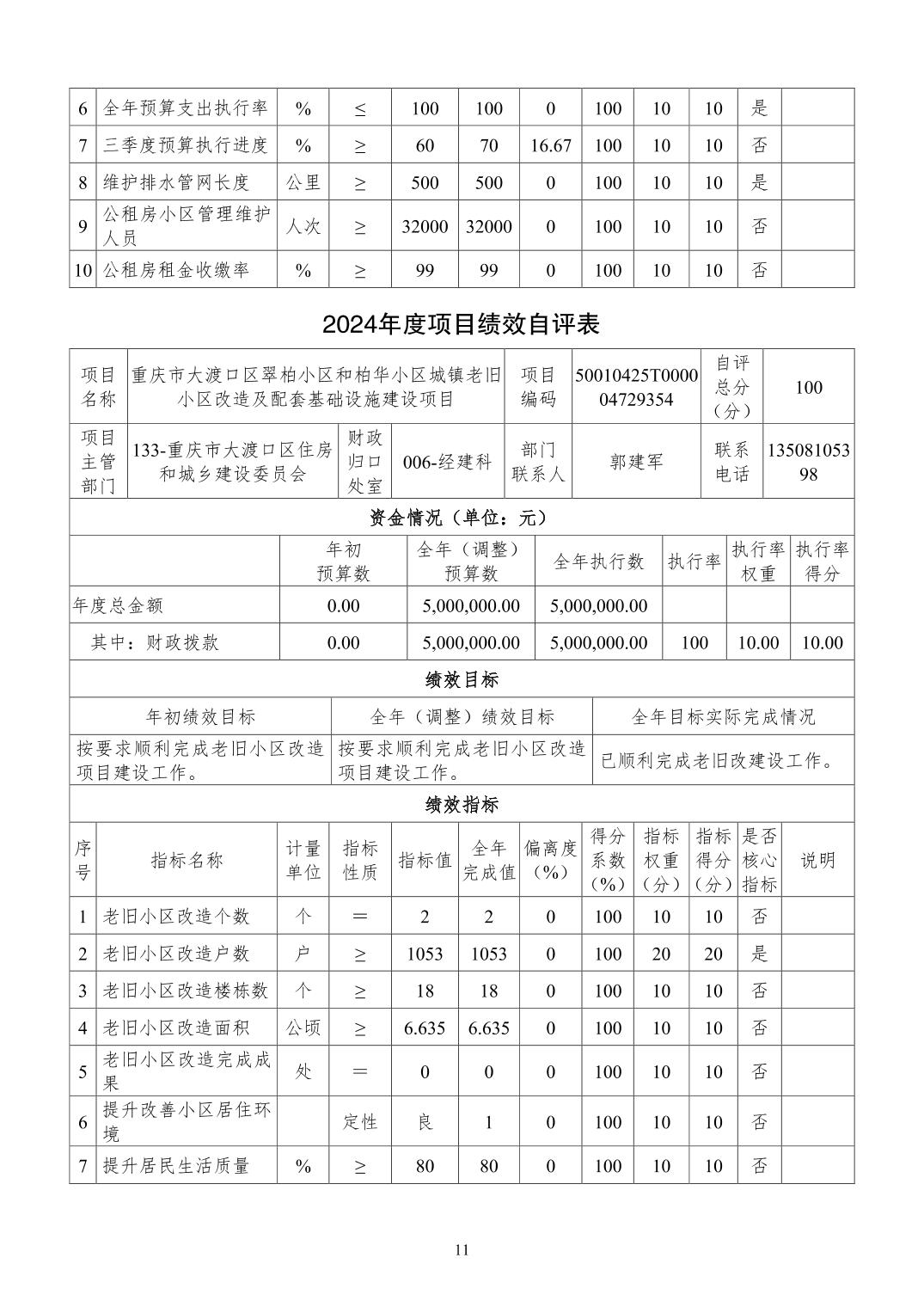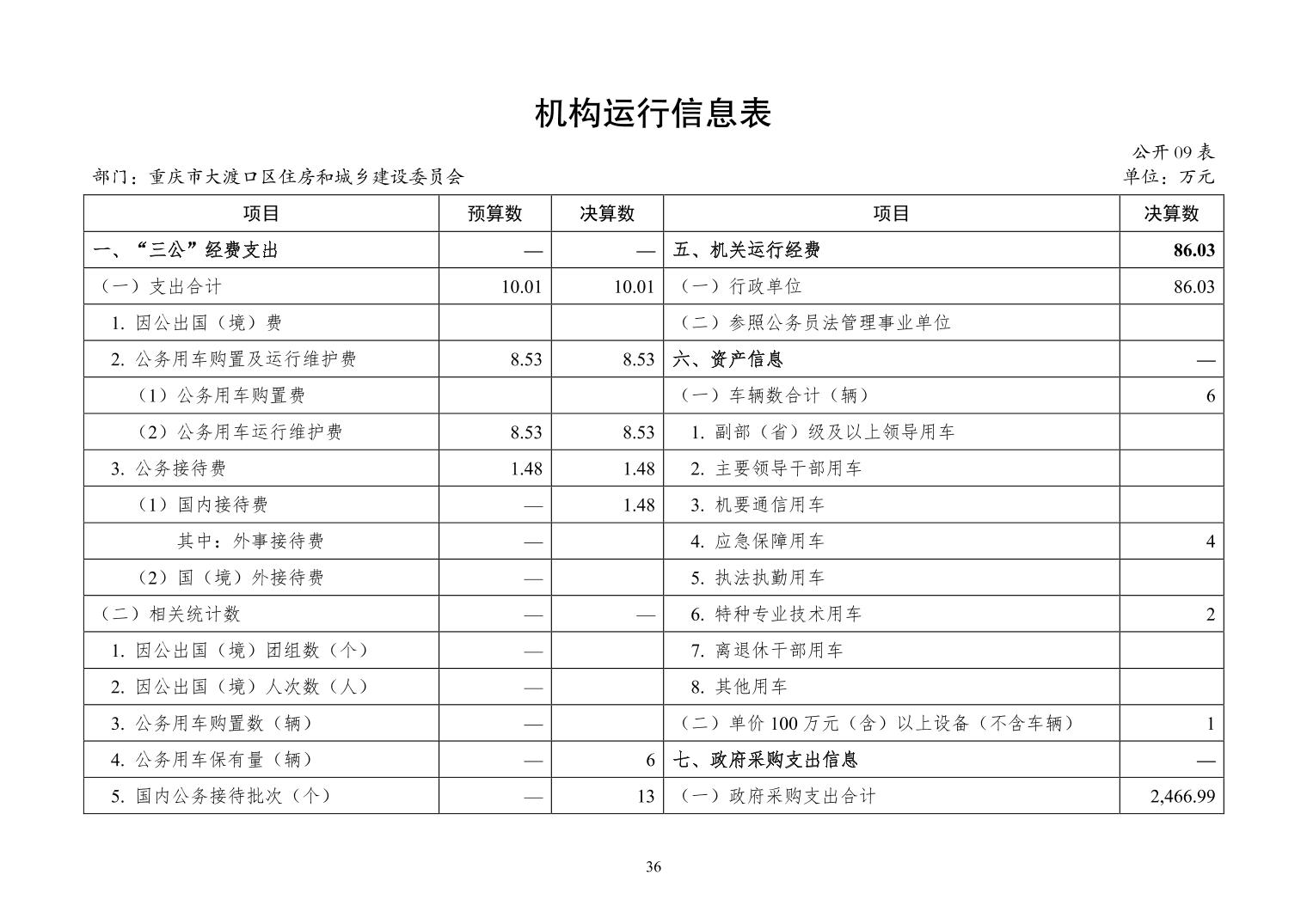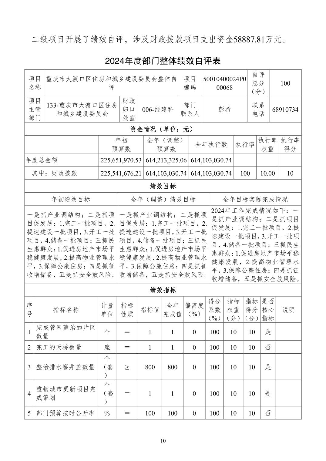 重庆市大渡口区住房和城乡建设委员会 2024 年度决算公开说明