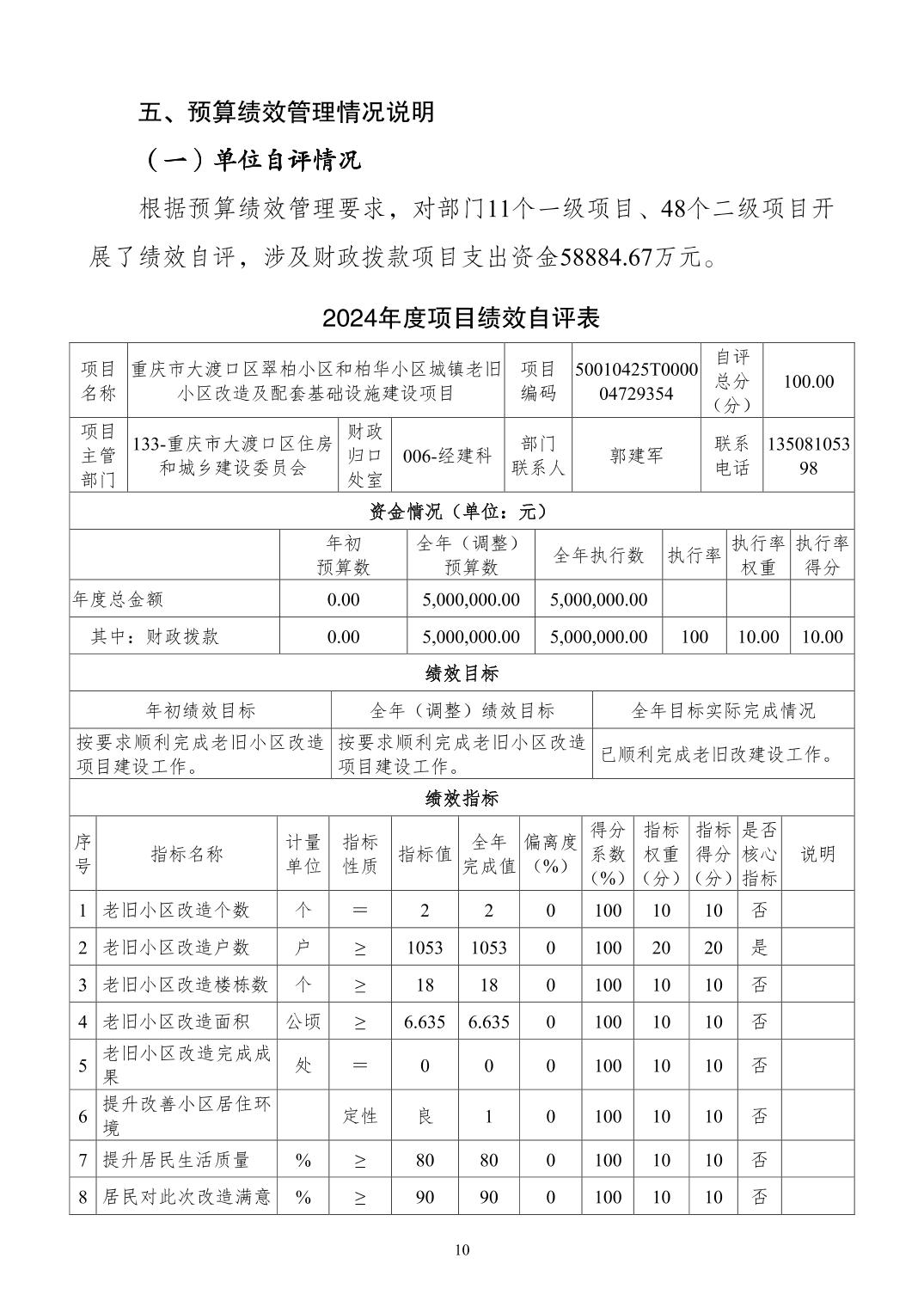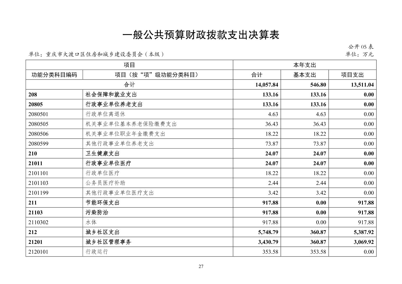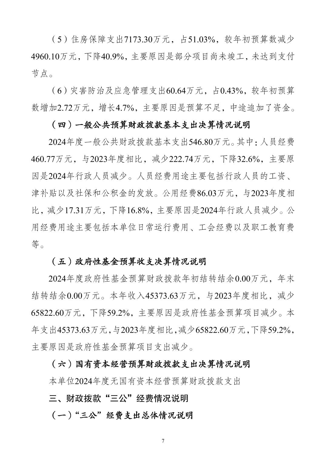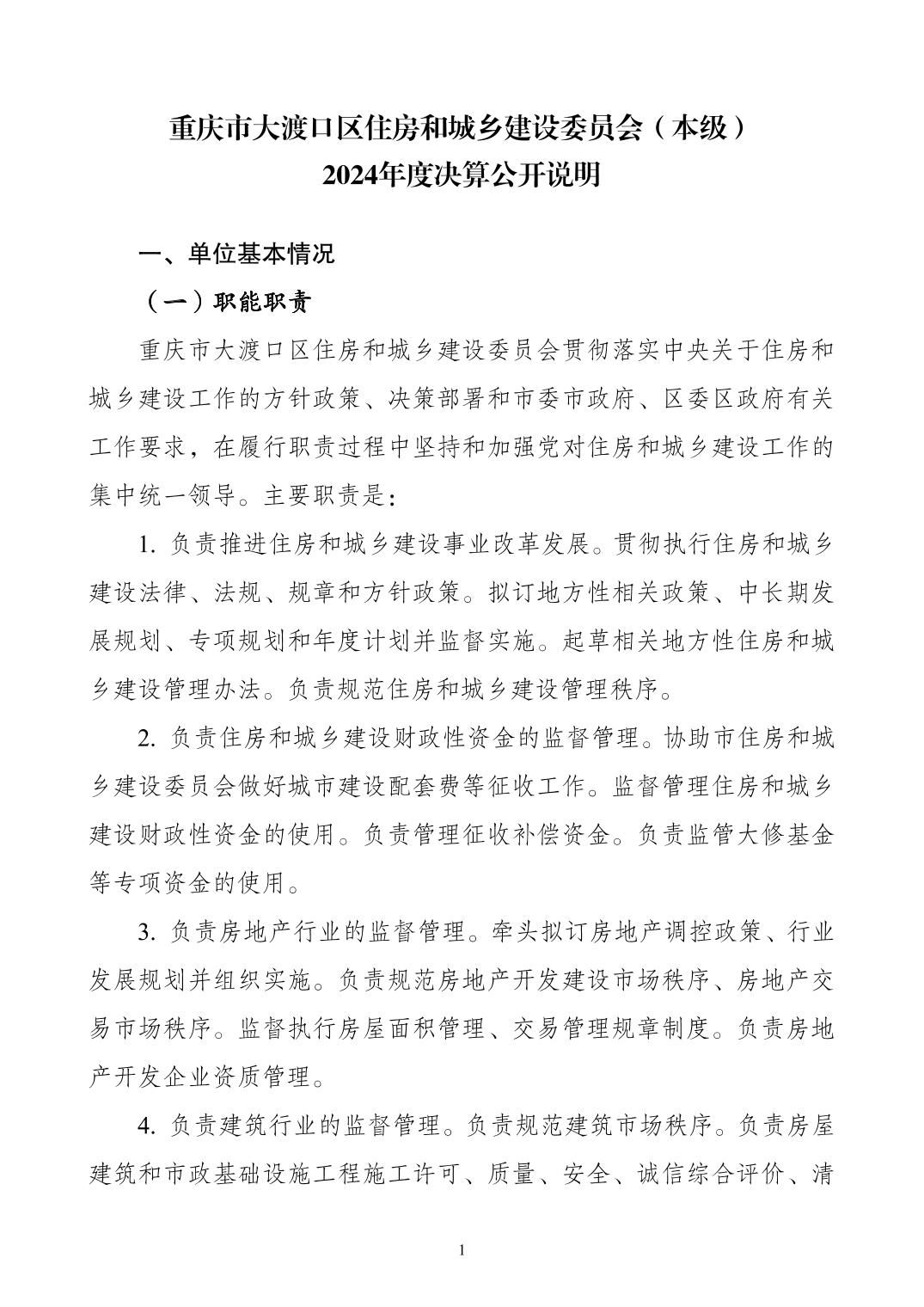 重庆市大渡口区住房和城乡建设委员会(本级) 2024 年度决算公开说明