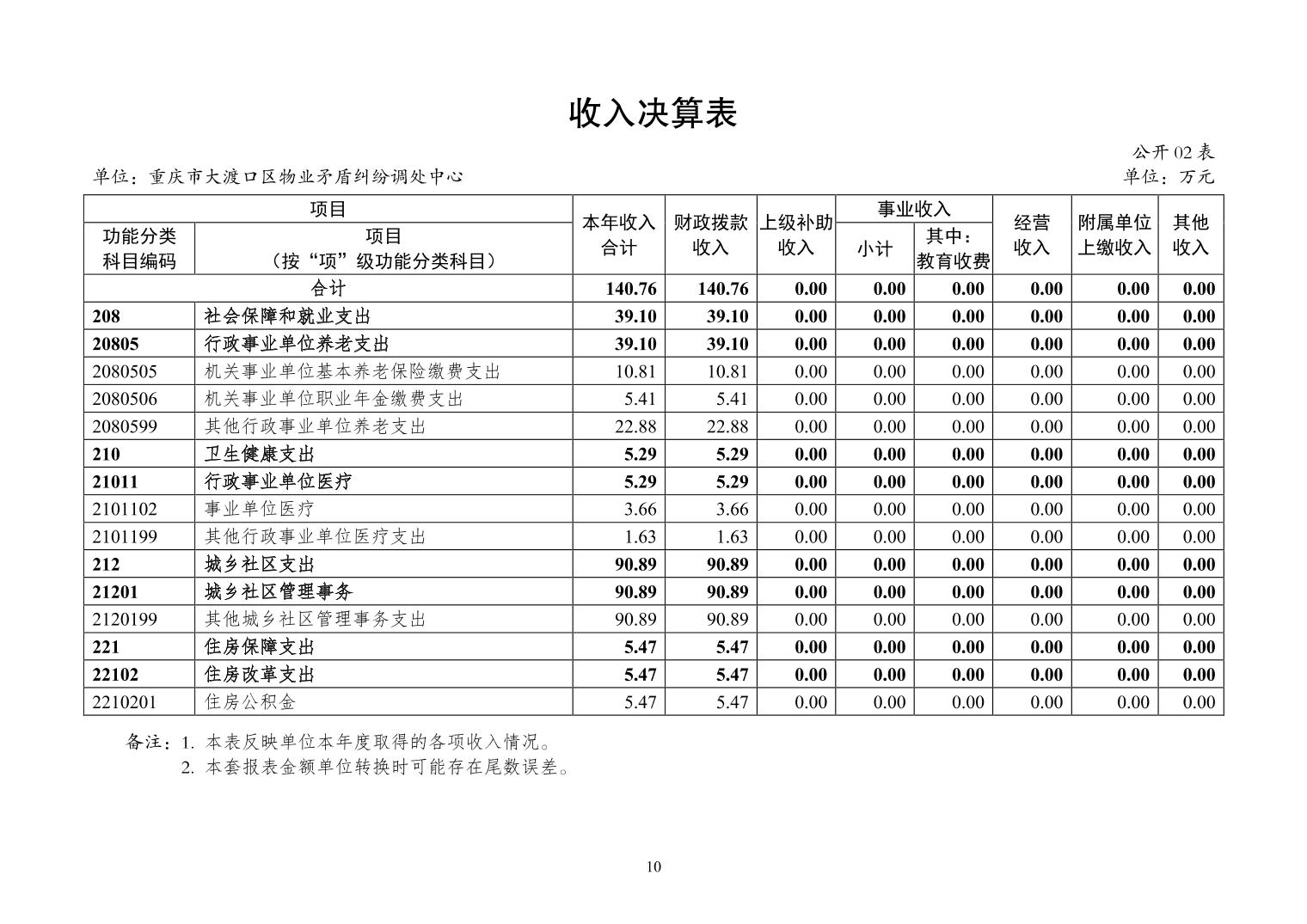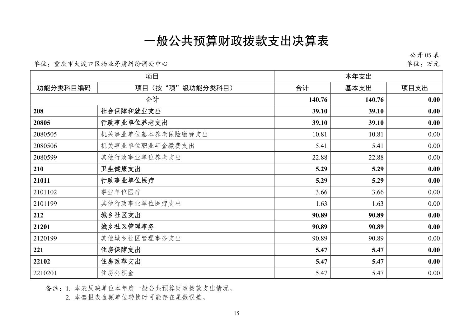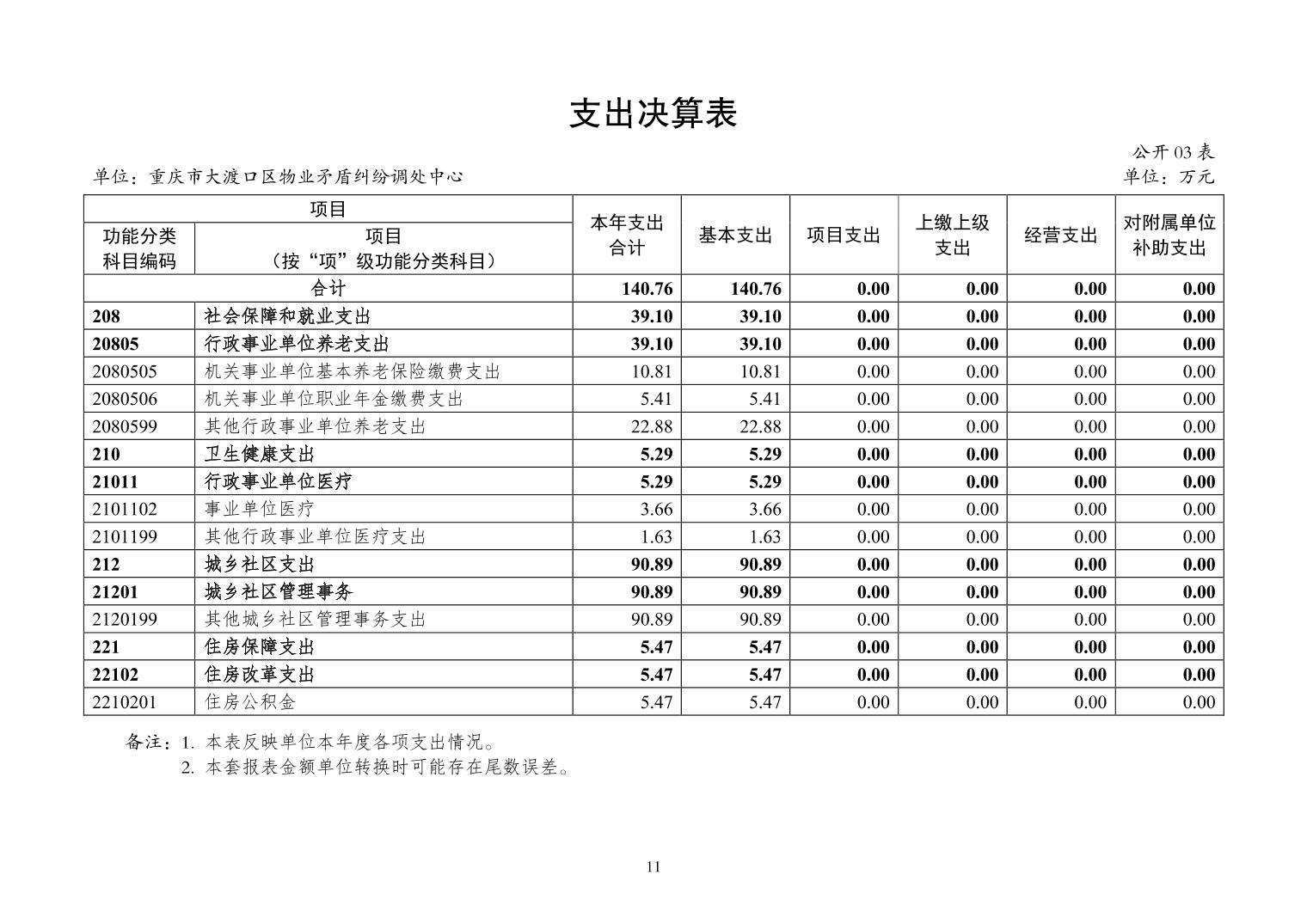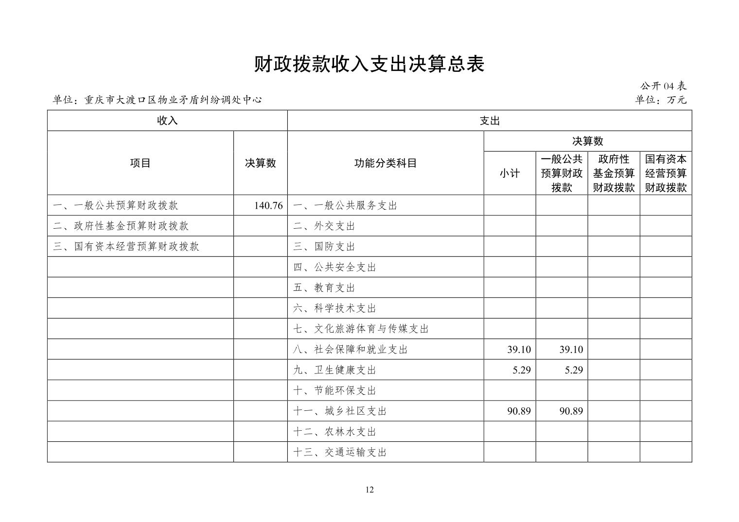 重庆市大渡口区物业矛盾纠纷调处中心 2024 年度决算公开说明