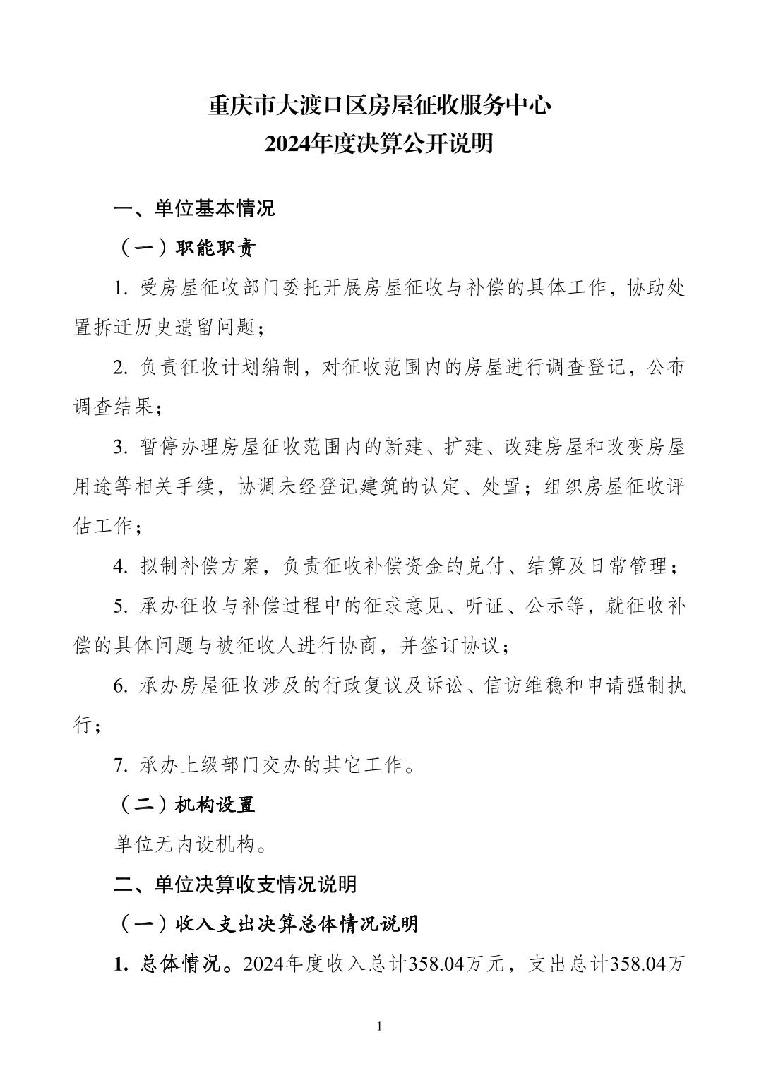 重庆市大渡口区房屋征收服务中心 2024 年度决算公开说明
