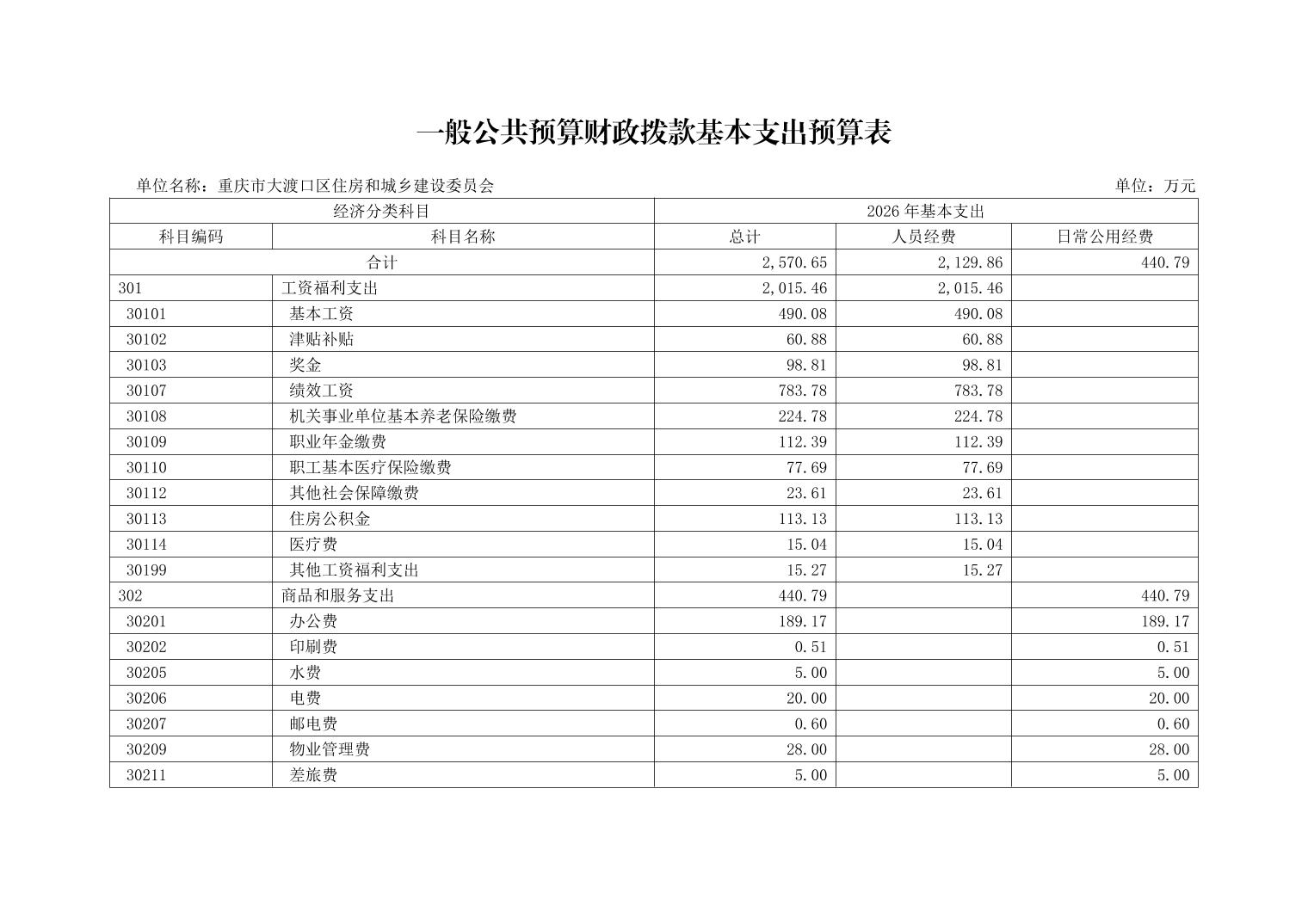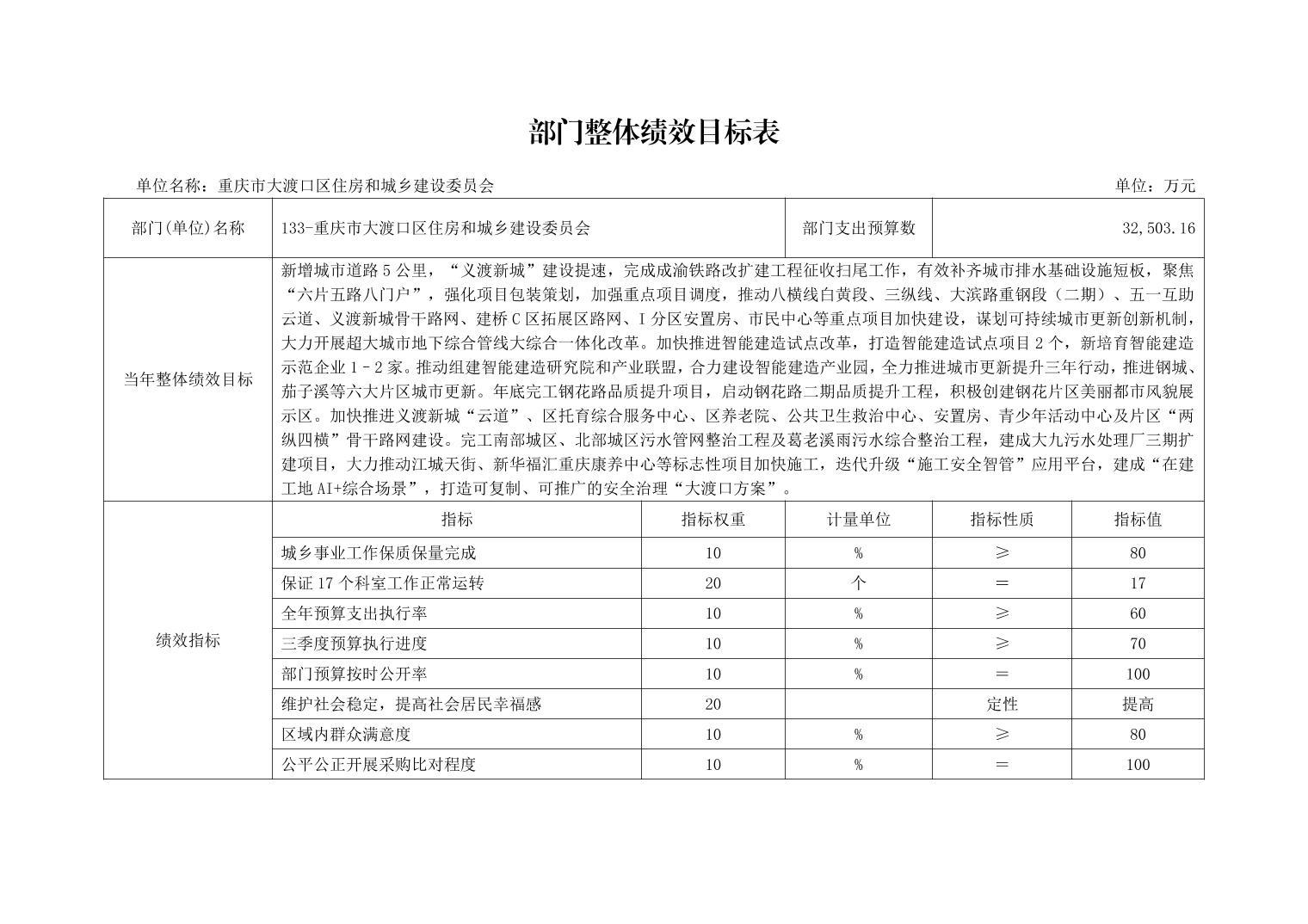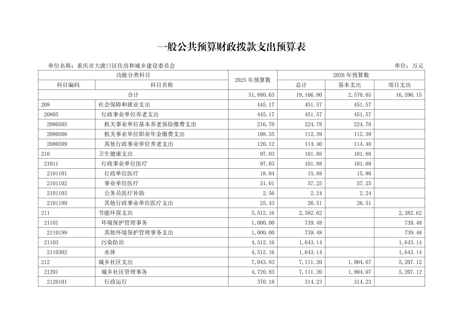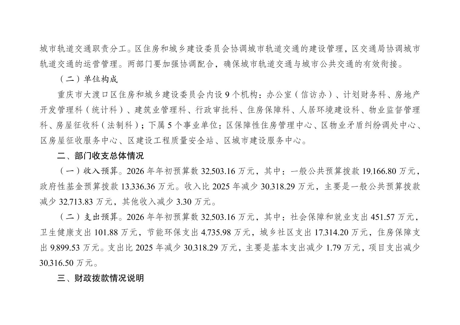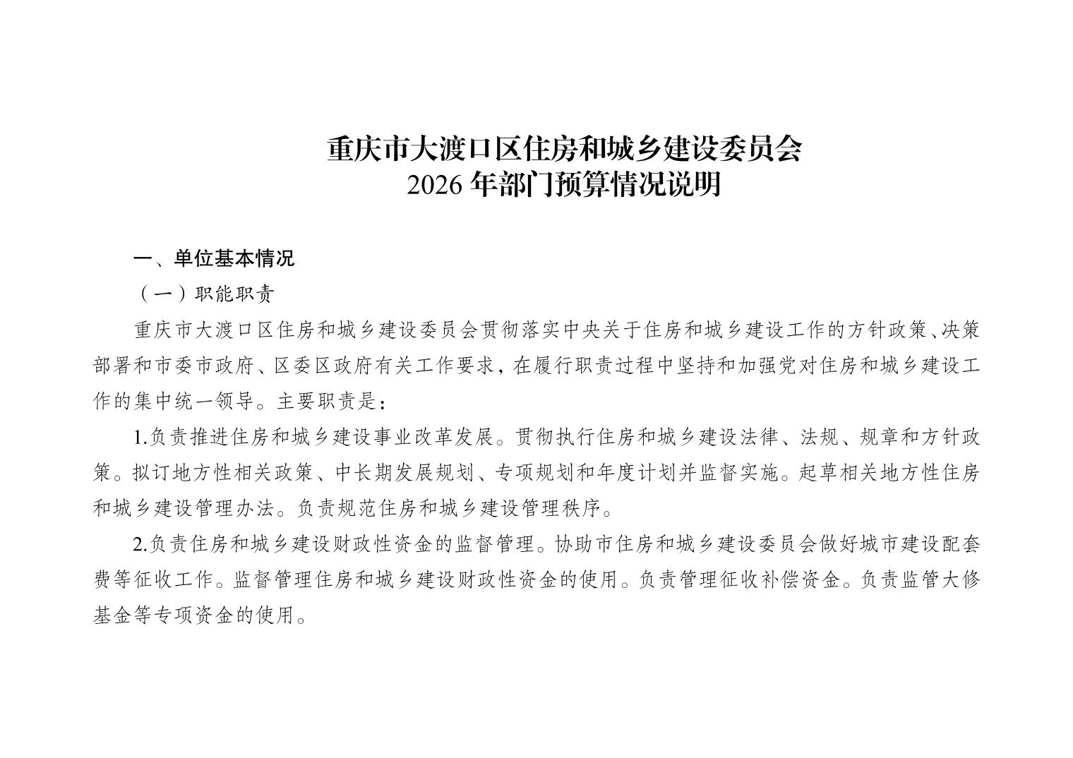 重庆市大渡口区住房和城乡建设委员会2026年部门预算情况说明