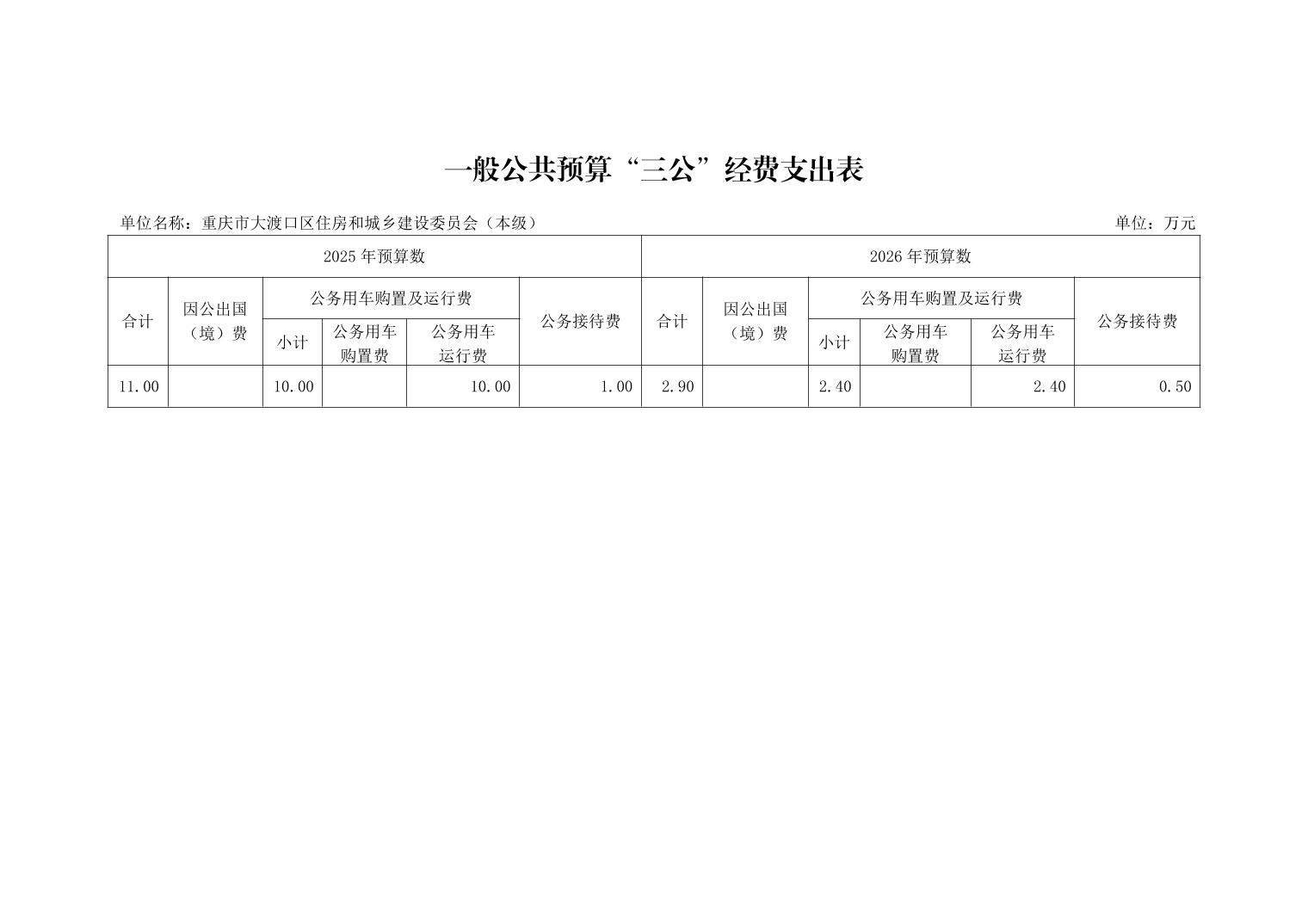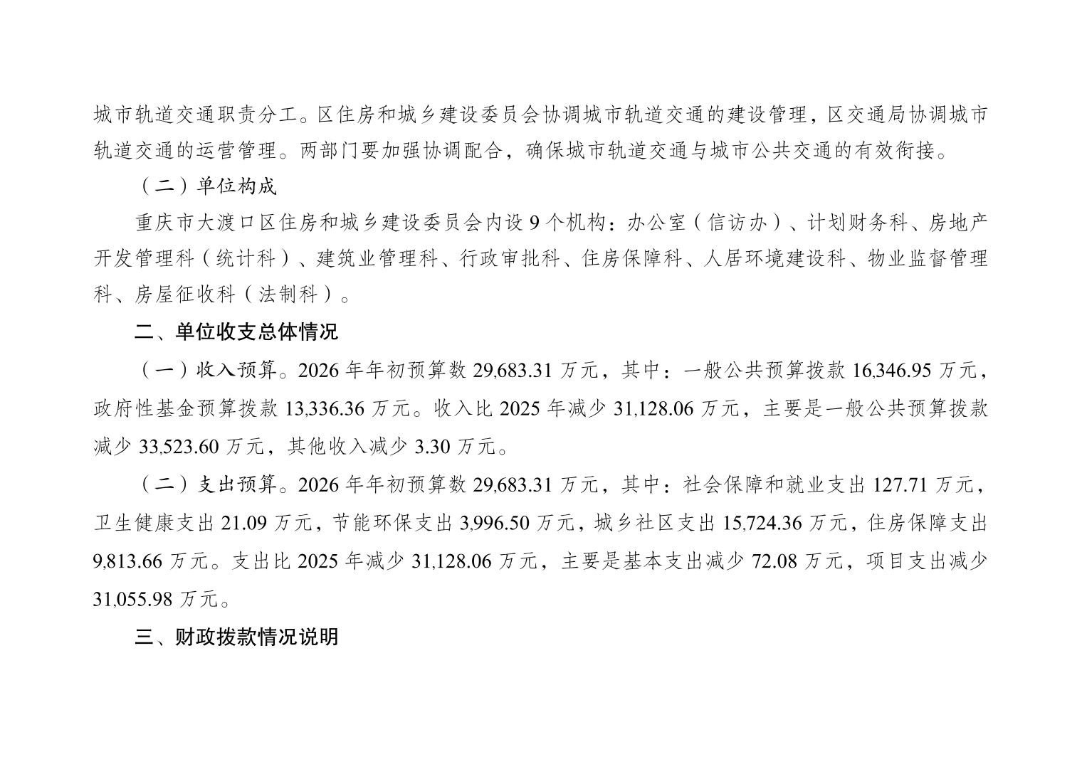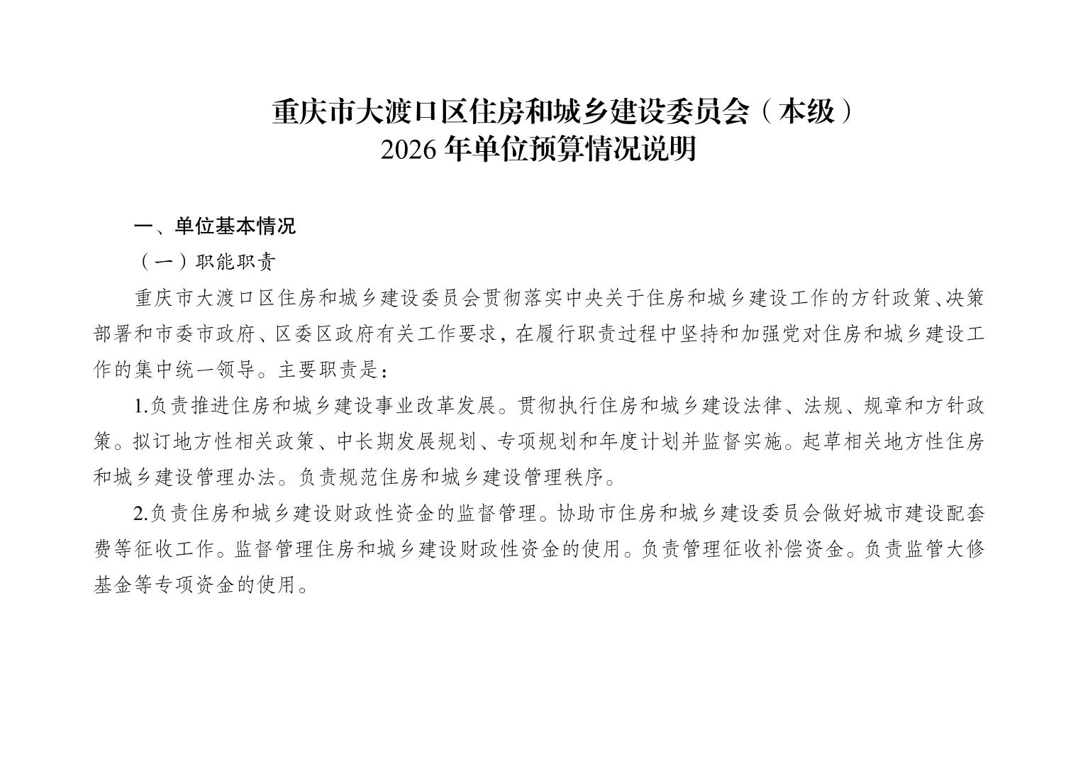 重庆市大渡口区住房和城乡建设委员会(本级)2026年单位预算情况说明