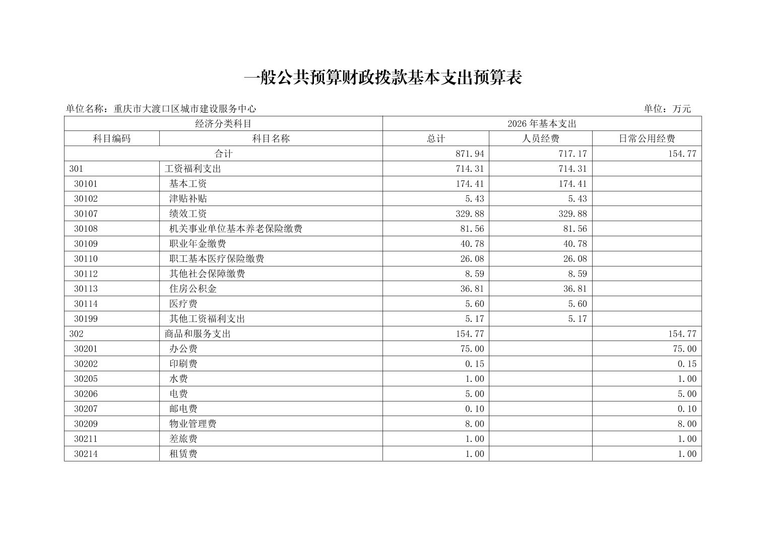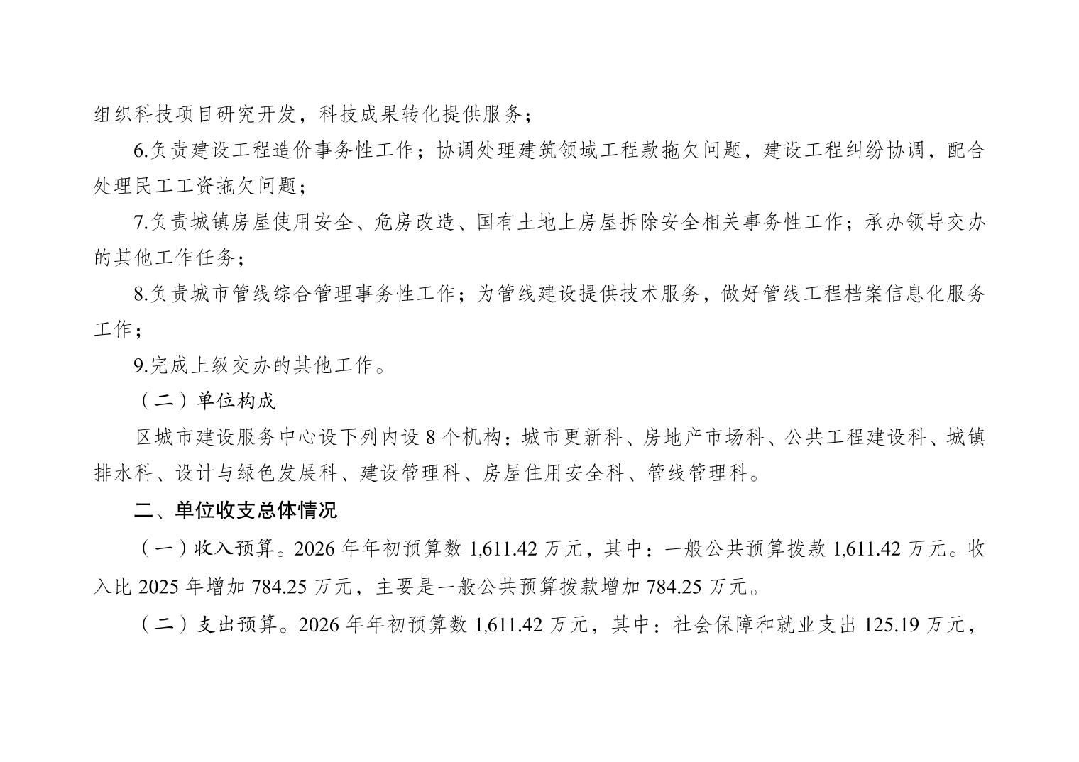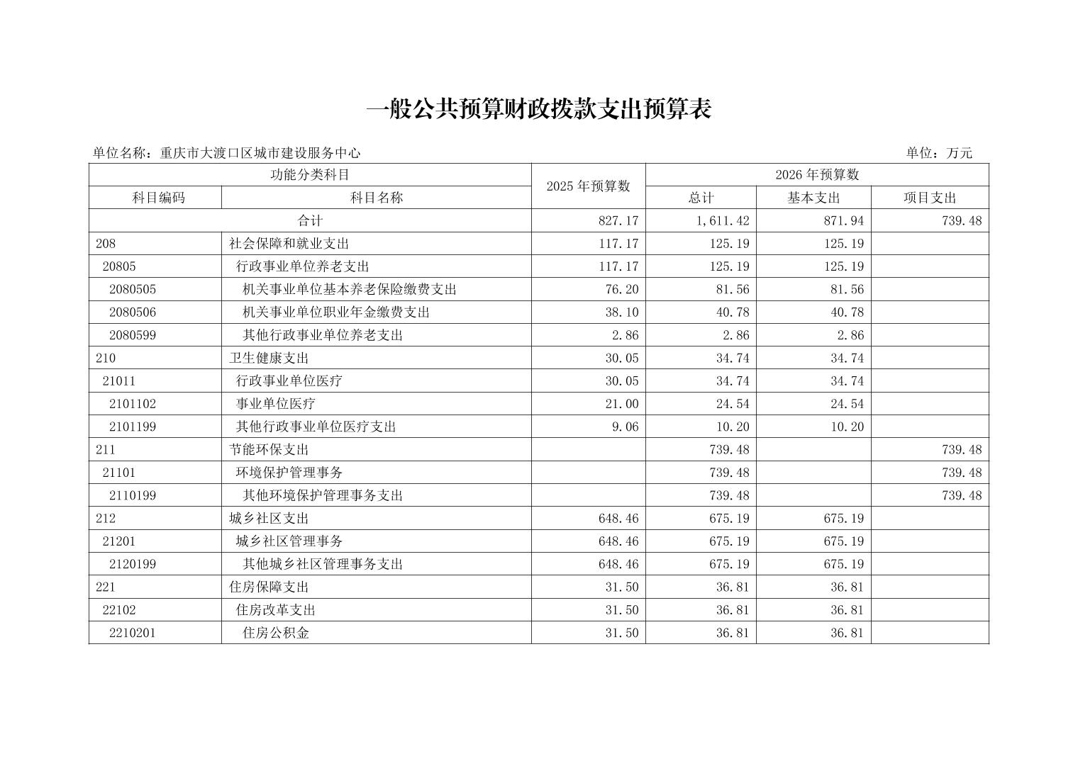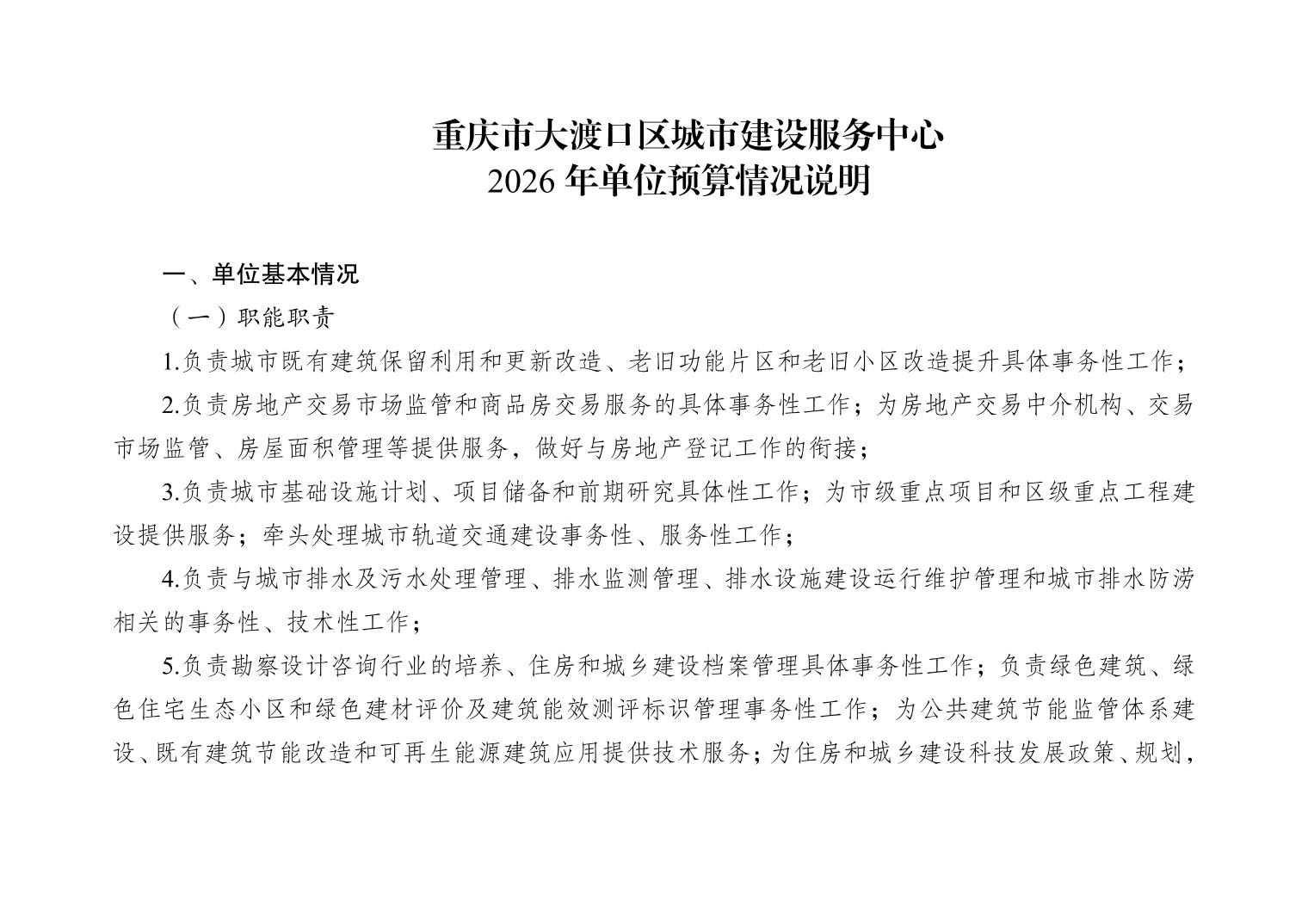 重庆市大渡口区城市建设服务中心2026年单位预算情况说明