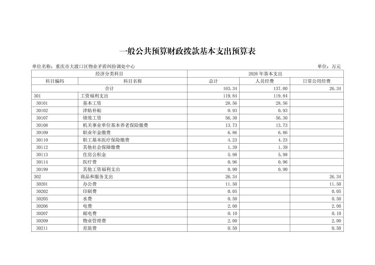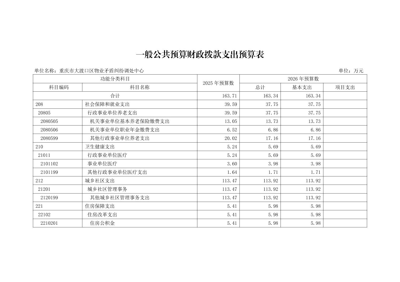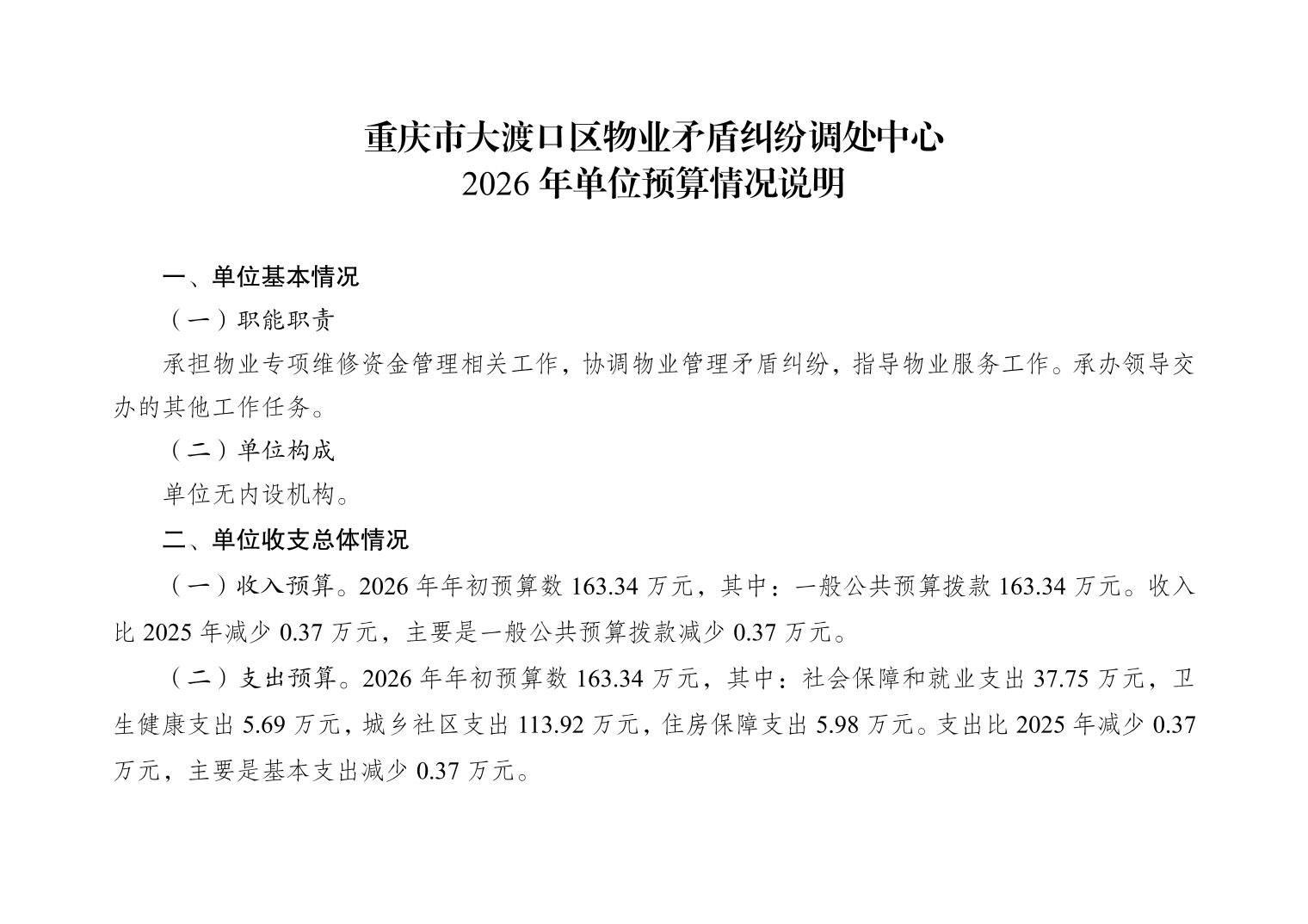重庆市大渡口区物业矛盾纠纷调处中心2026年单位预算情况说明