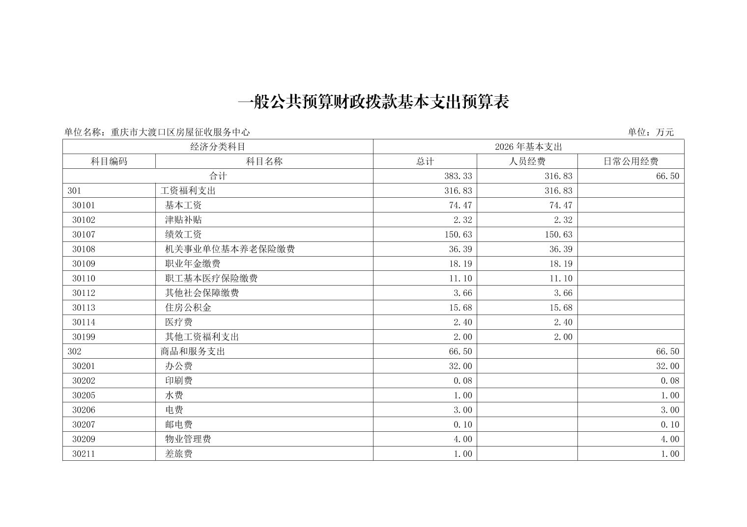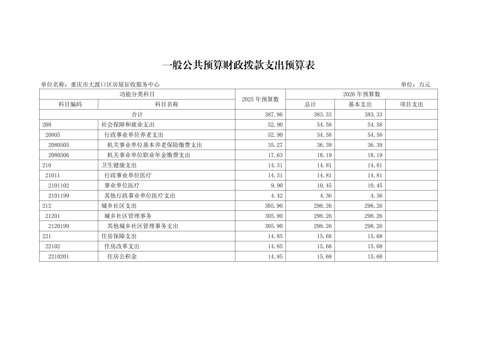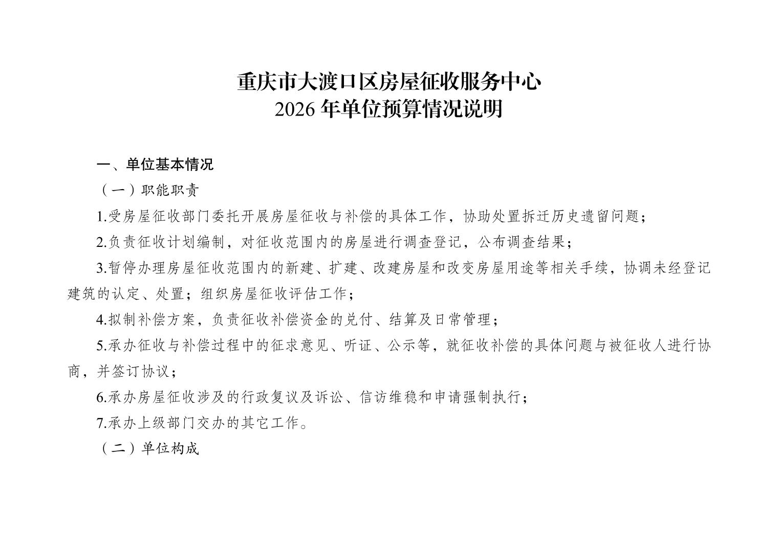 重庆市大渡口区房屋征收服务中心2026年单位预算情况说明