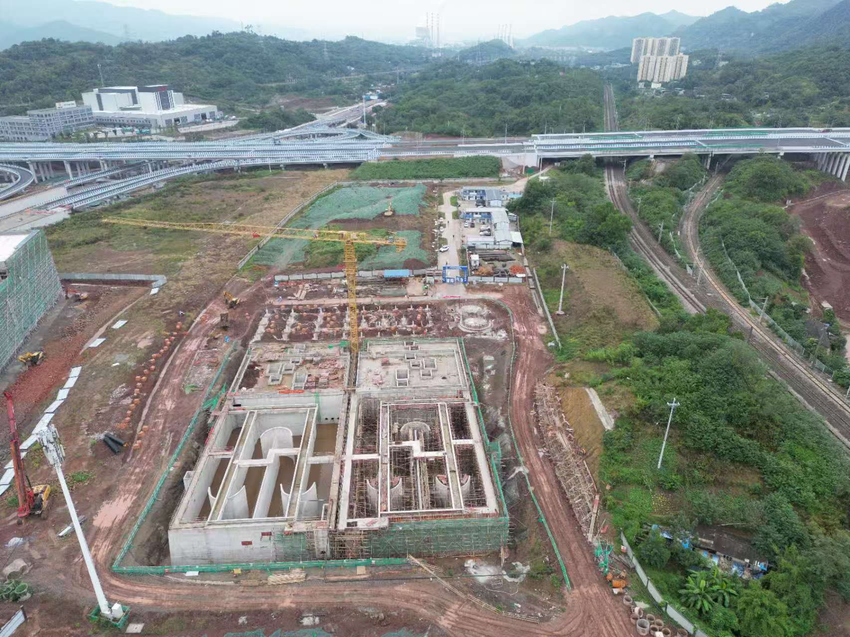 大九污水处理厂三期扩建工程位于大渡口区跳磴镇沟口村,占地面积约33亩,设计规模3万吨/天,采用AAO工艺,出水水质执行《城镇污水处理厂污染物排放标准》(GB18918-2002)一级A标,建成后与现状污水厂共同服务九龙坡区中梁山街道、华岩镇和大渡口区跳磴镇。目前,该项目已完成生物池主体结构施工,正在全力推进污泥浓缩池、配电房、鼓风机房等主体结构施工,计划2026年12月建成投用,确保按期完成生态环保督察整改任务。