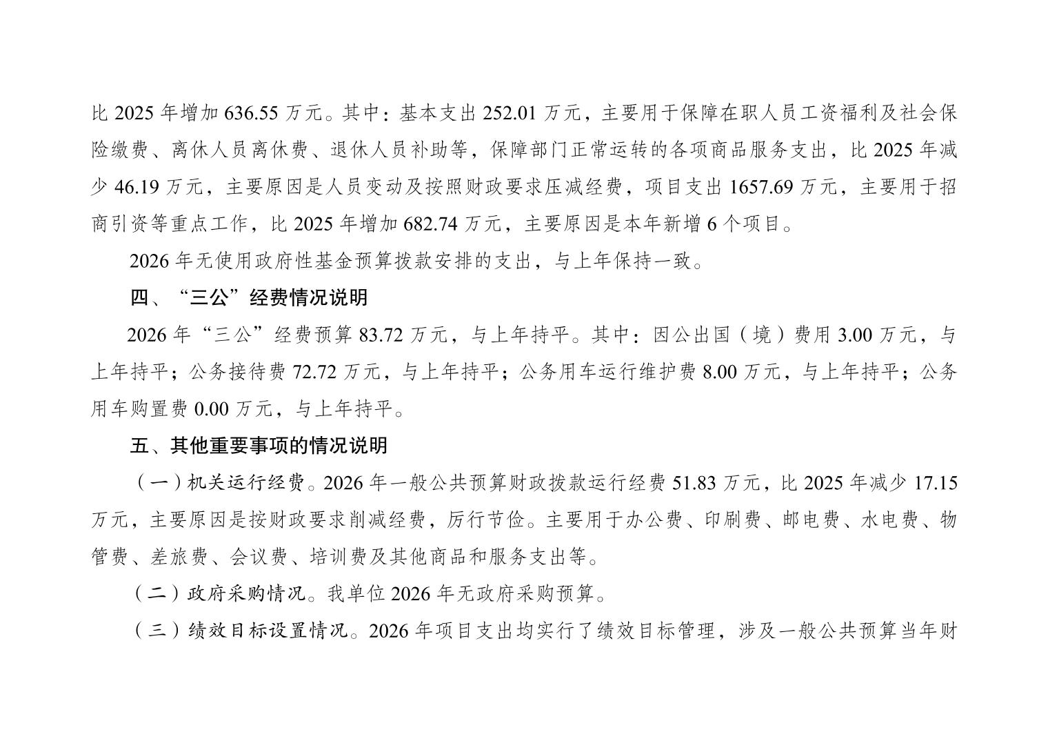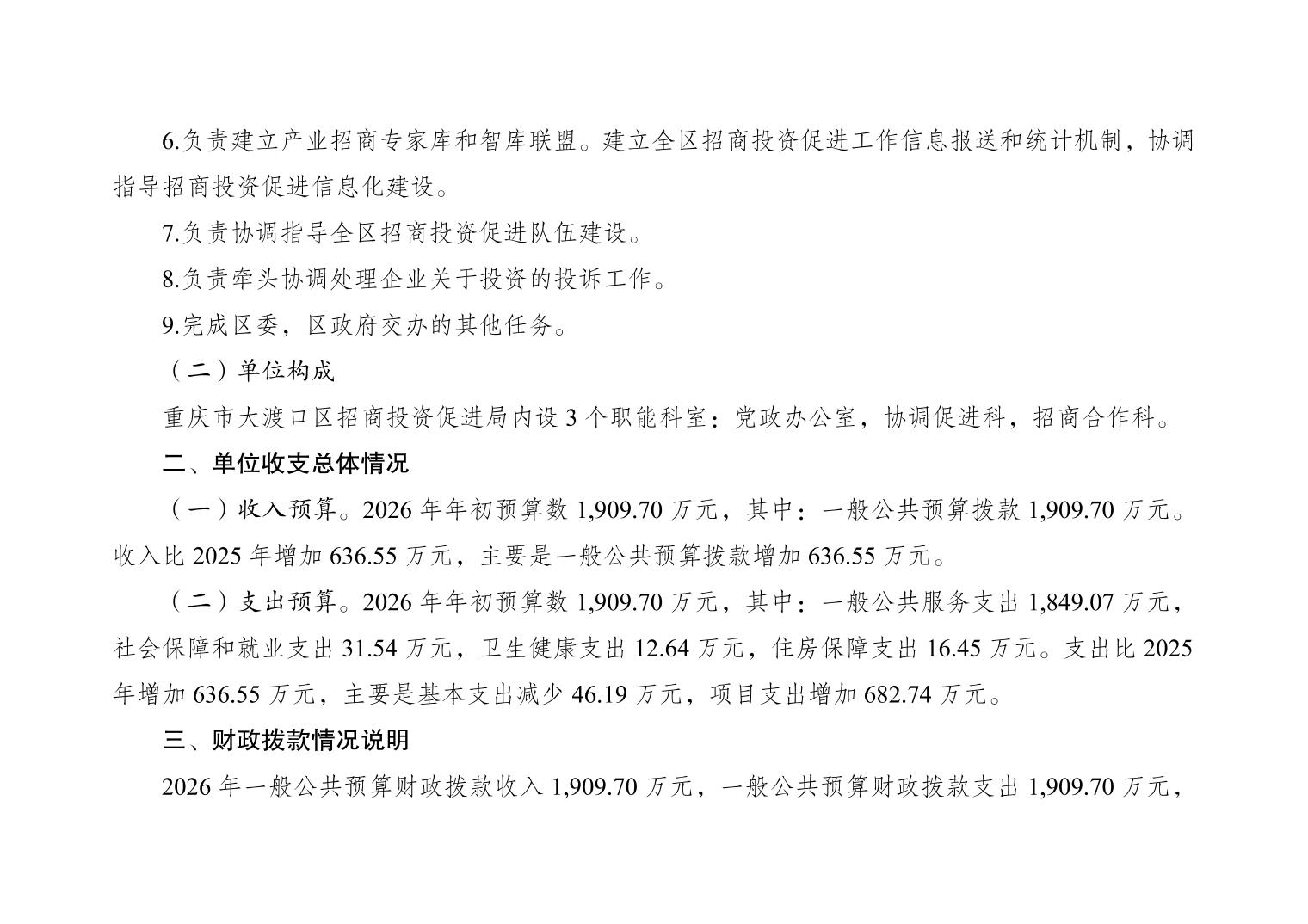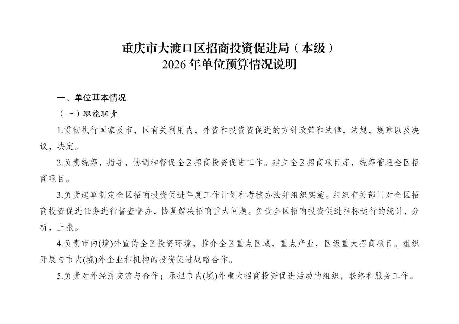 重庆市大渡口区招商投资促进局(本级)2026年单位预算情况说明