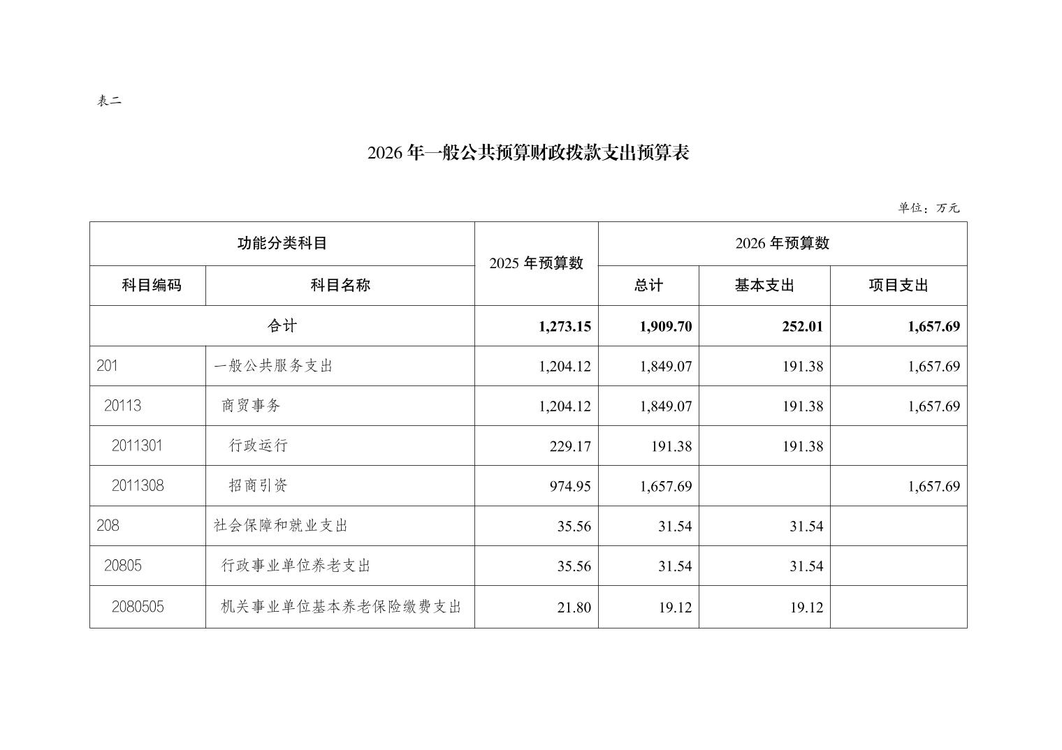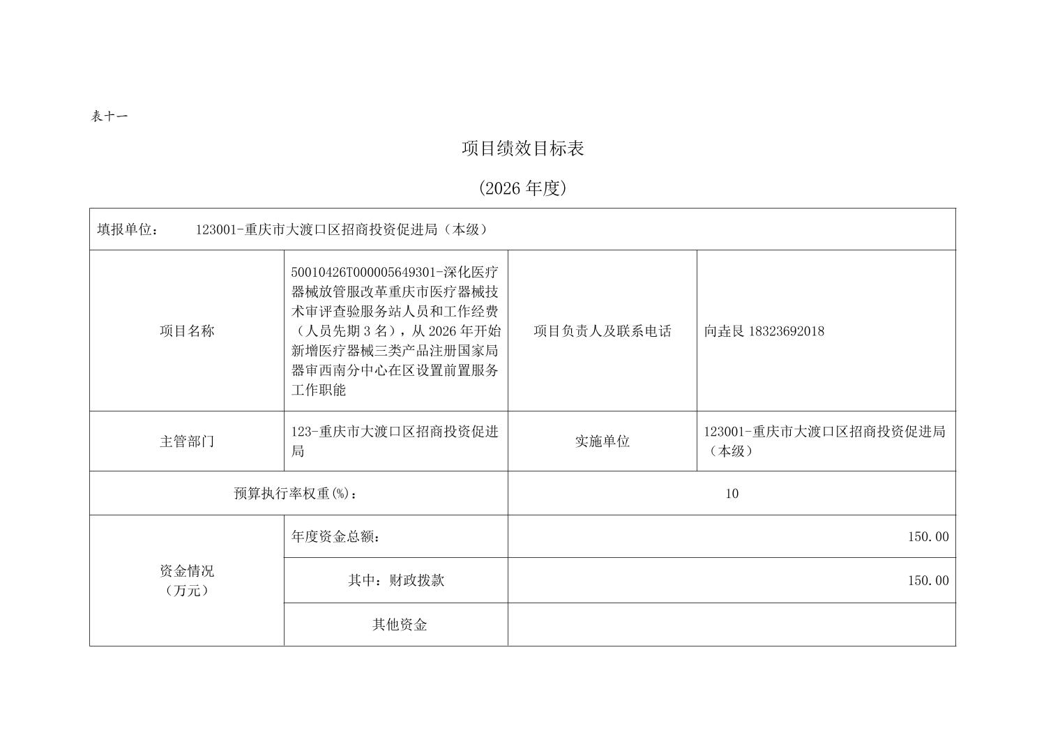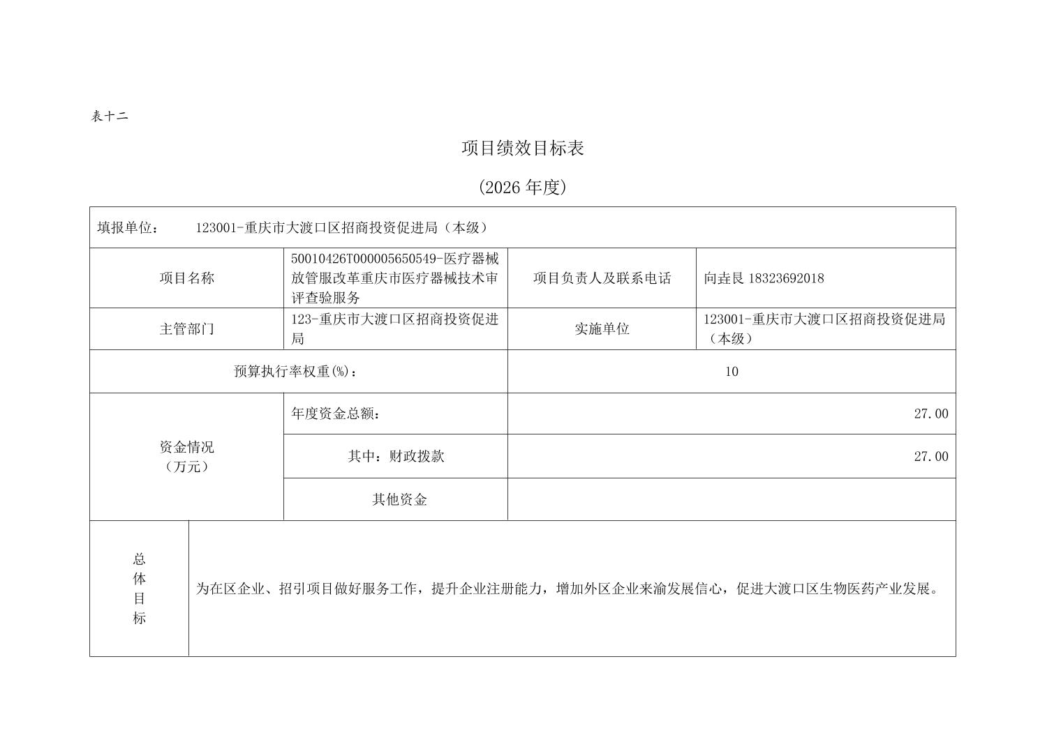 重庆市大渡口区招商投资促进局(本级)2026年单位预算情况说明