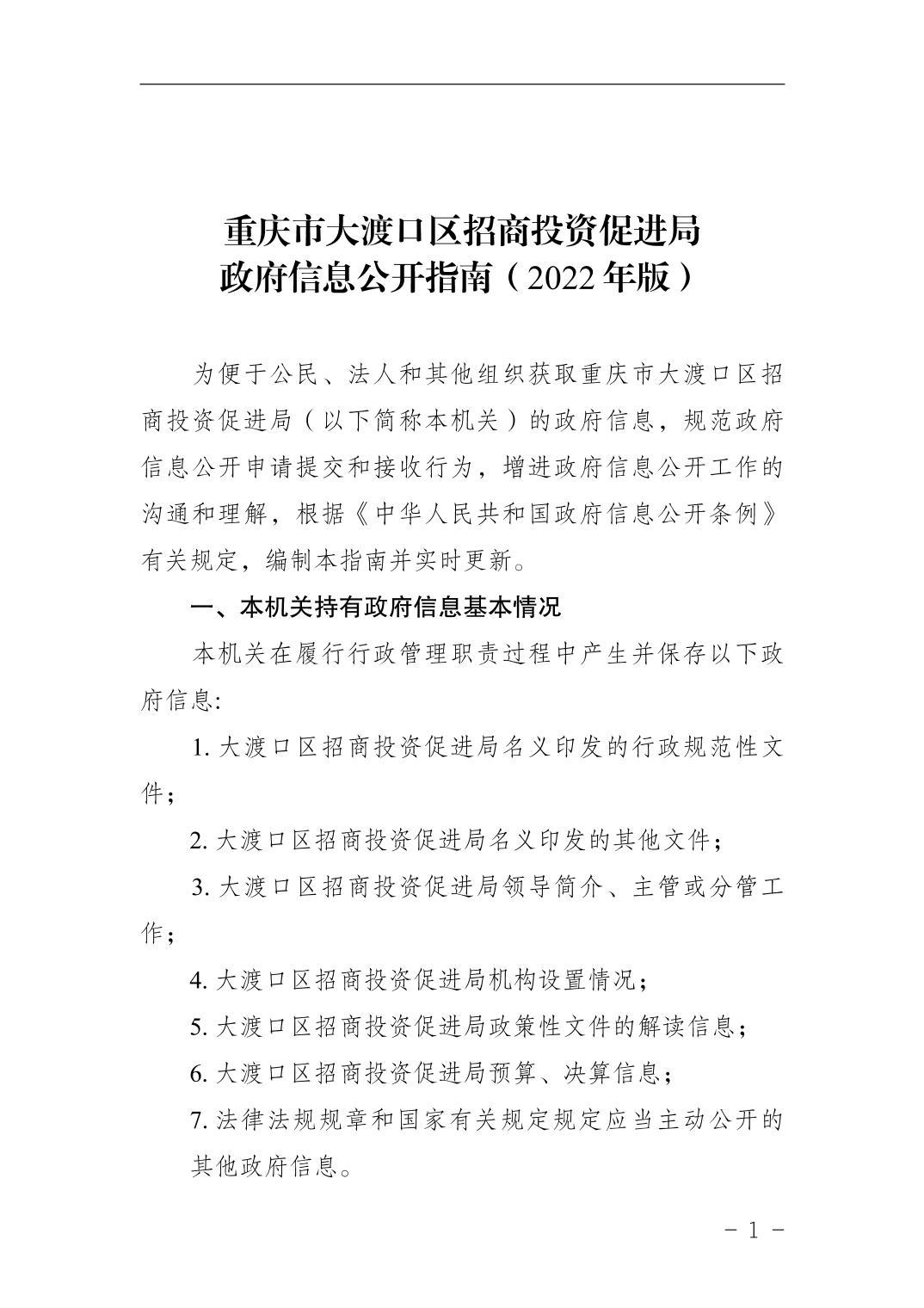 重庆市大渡口区招商投资促进局政府信息公开指南(2022年版)