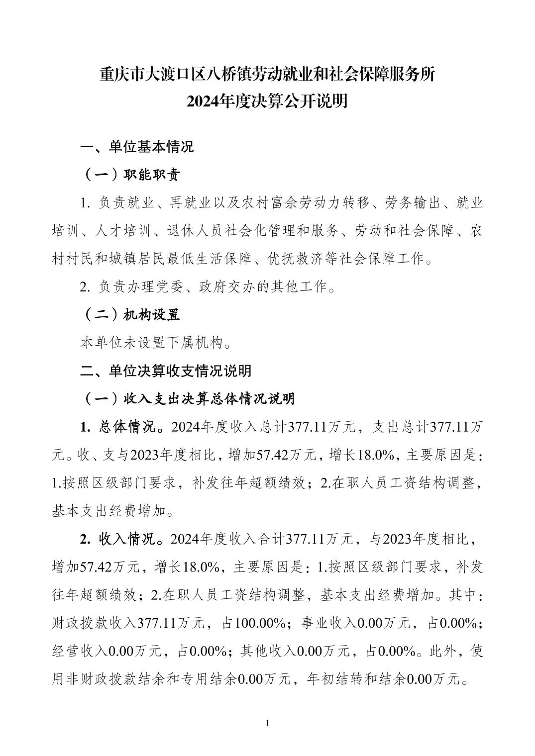 重庆市大渡口区八桥镇劳动就业和社会保障服务所2024年单位决算情况说明