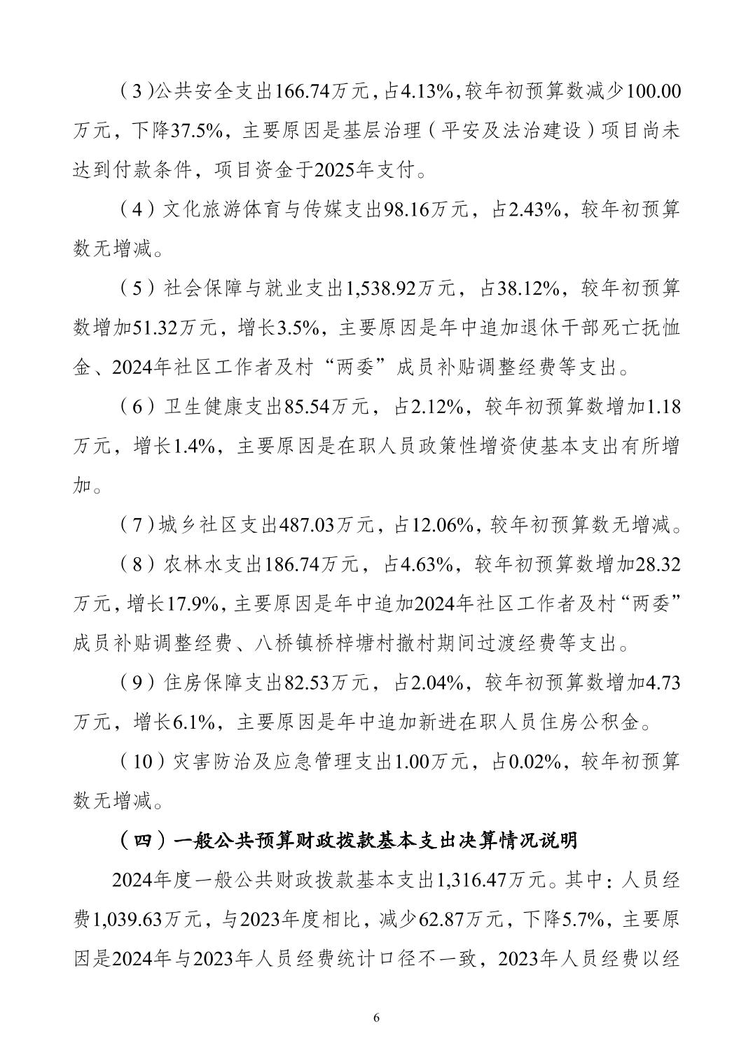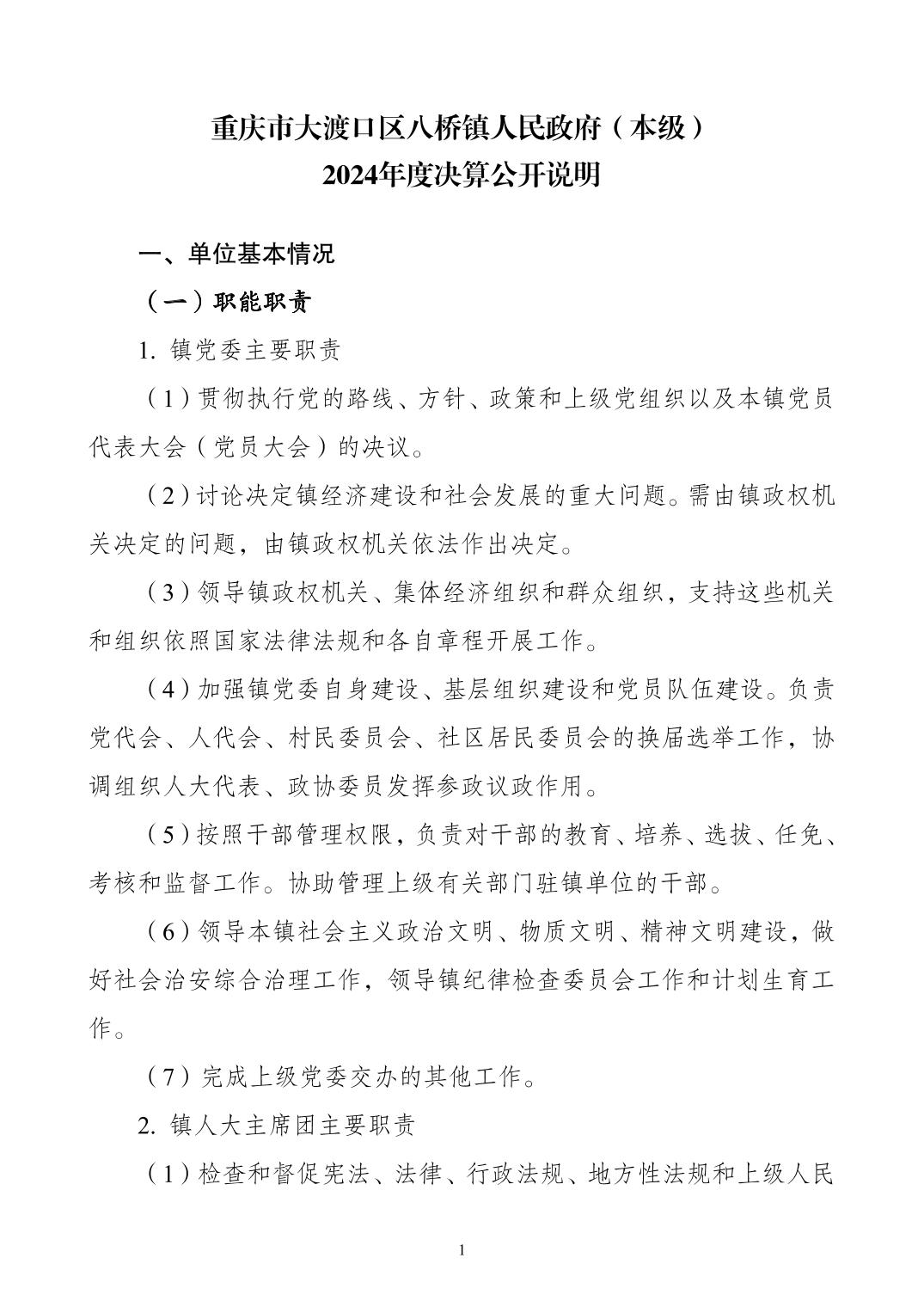 重庆市大渡口区八桥镇人民政府(本级)2024年单位决算情况说明
