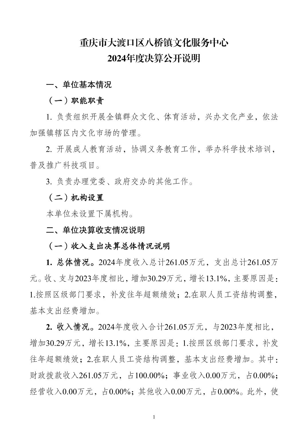 重庆市大渡口区八桥镇文化服务中心2024年单位决算情况说明