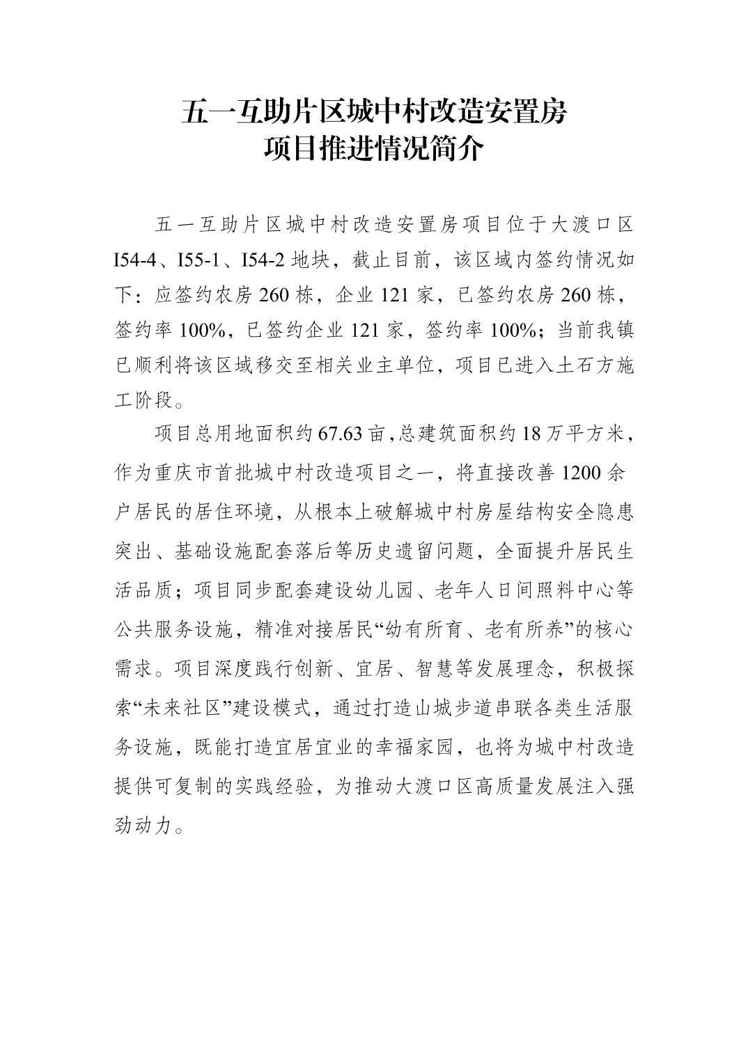 五一互助片区城中村改造安置房项目推进情况简介