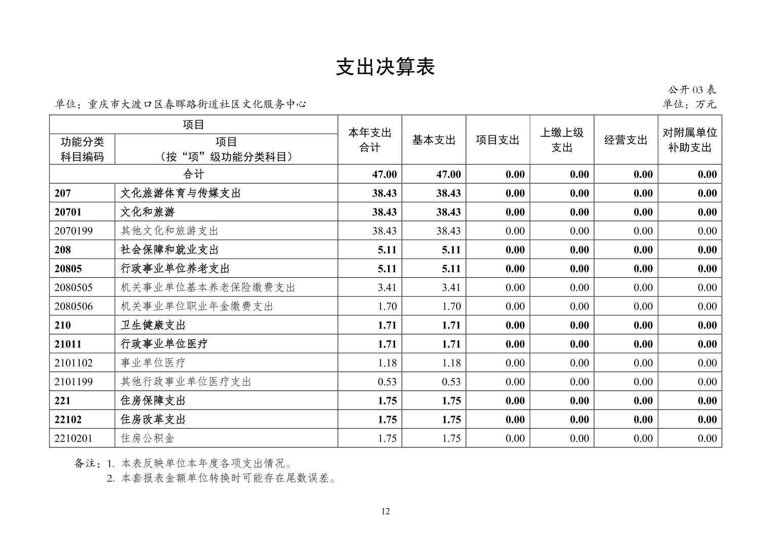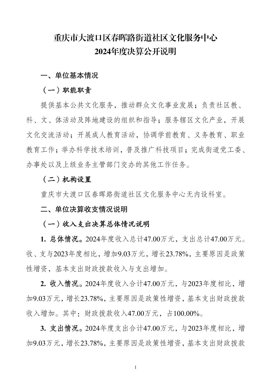 重庆市大渡口区春晖路街道社区文化服务中心2024年度决算公开说明