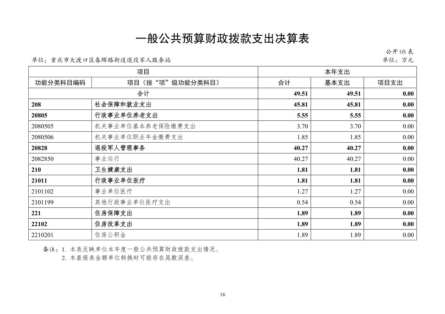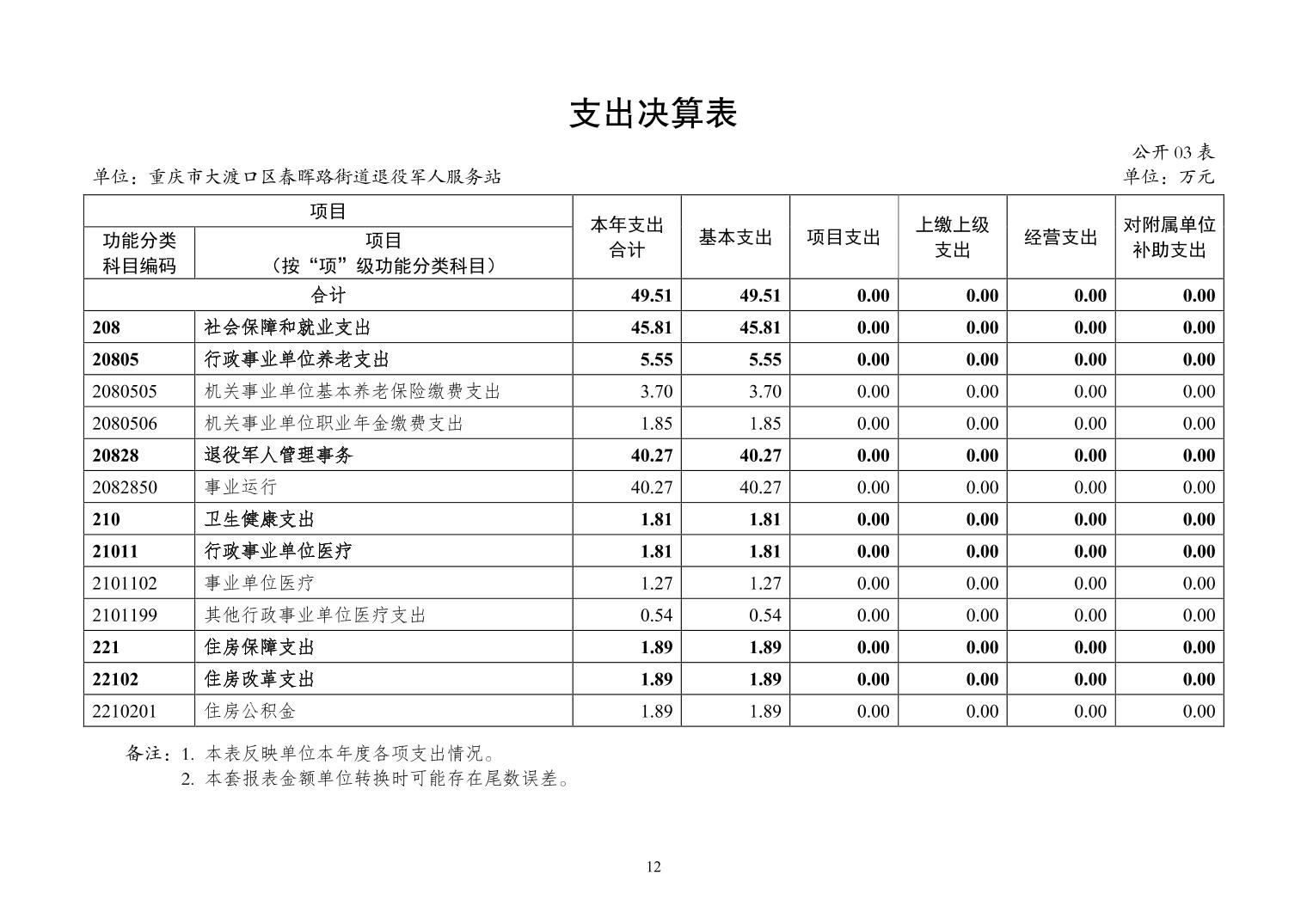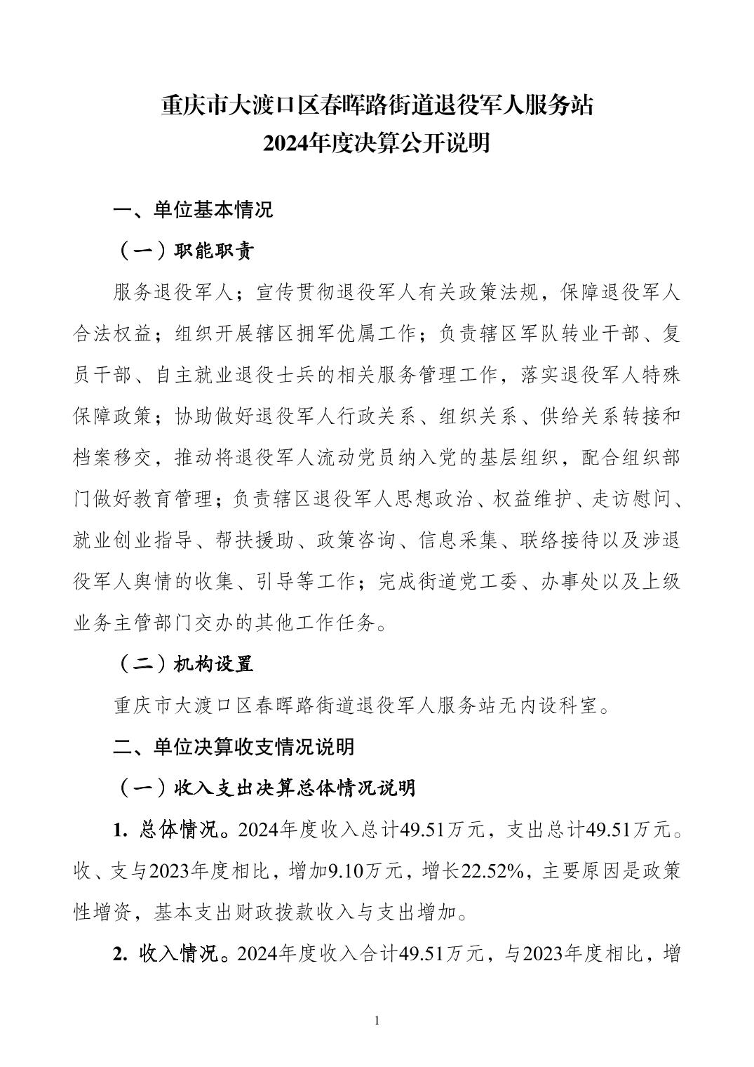 重庆市大渡口区春晖路街道退役军人服务站2024年度决算公开说明