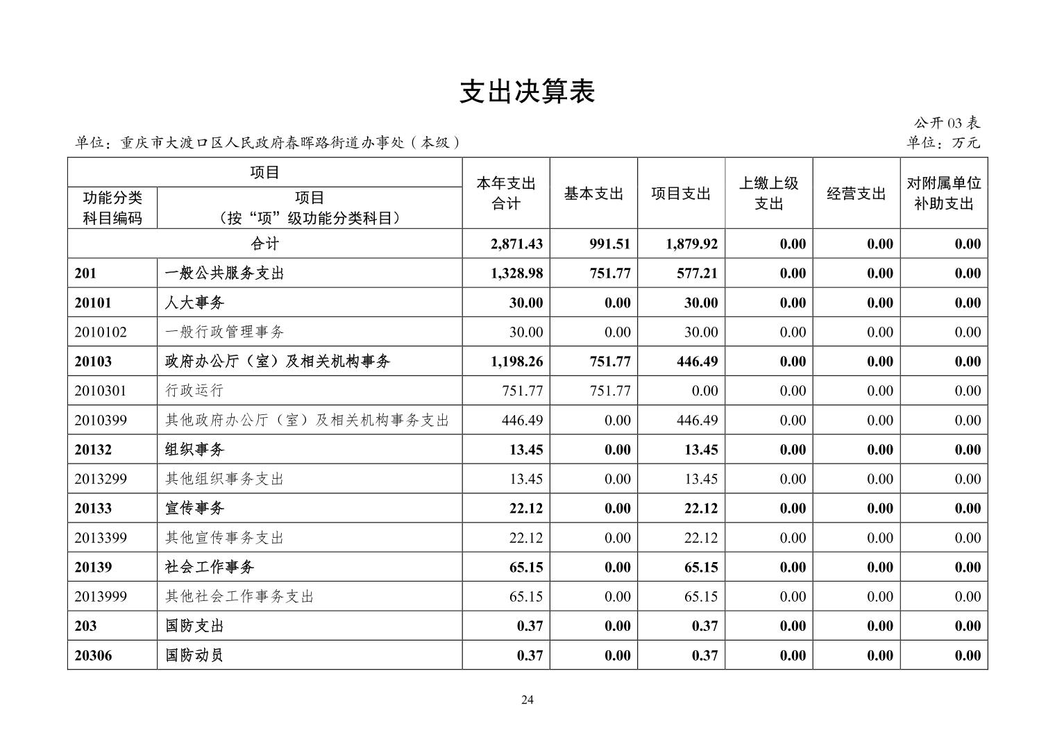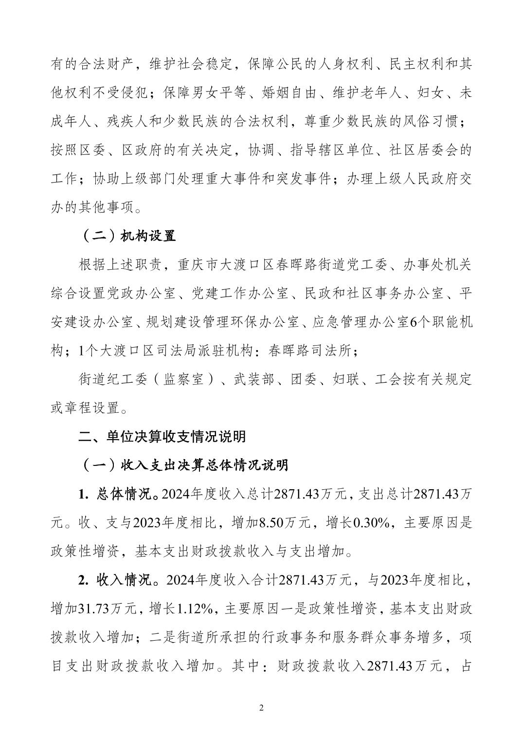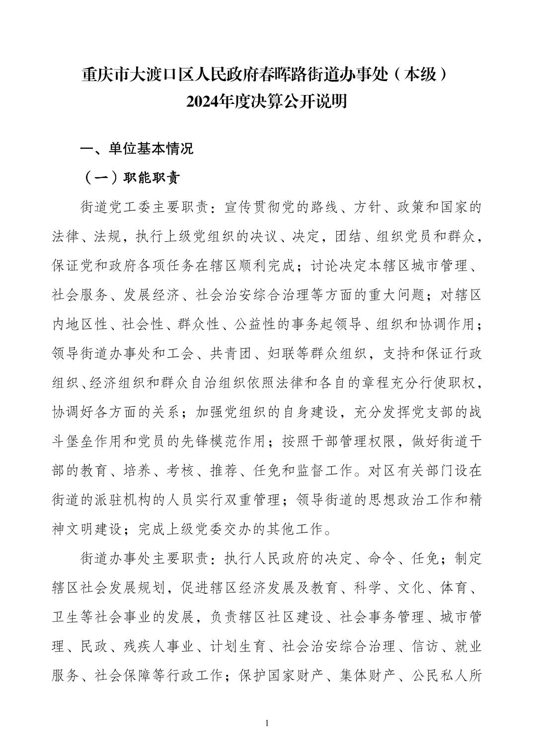 重庆市大渡口区人民政府春晖路街道办事处(本级)2024年度决算公开说明