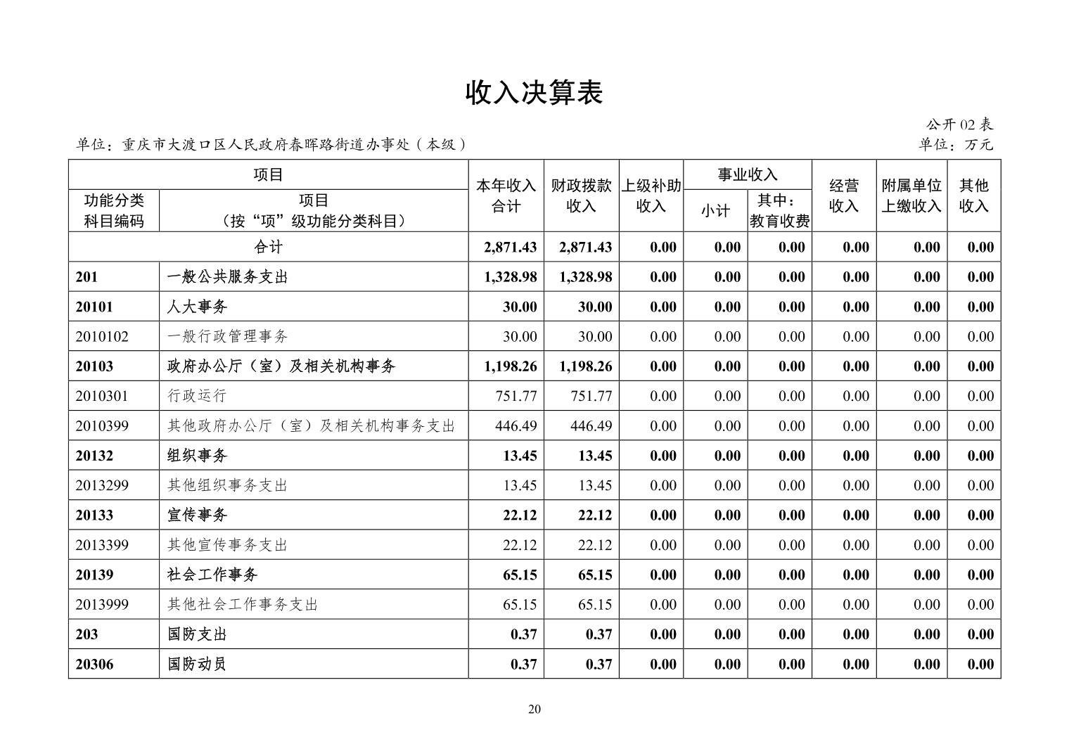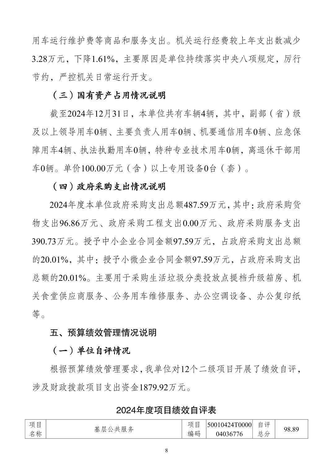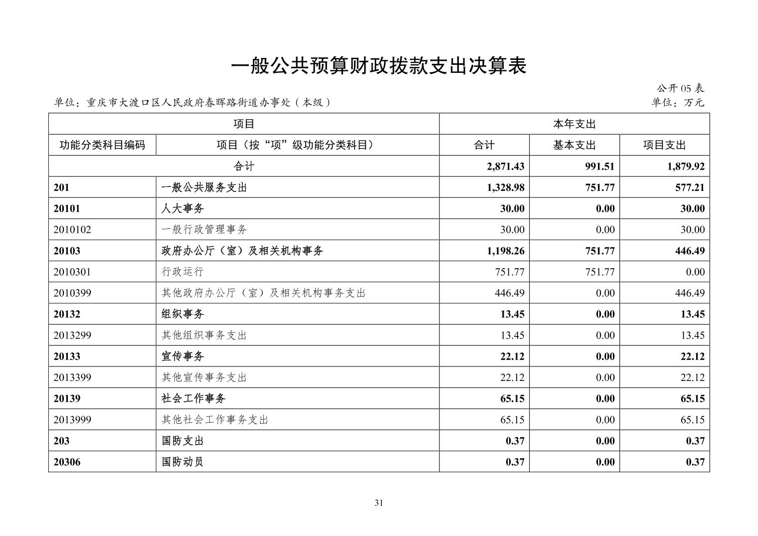重庆市大渡口区人民政府春晖路街道办事处(本级)2024年度决算公开说明