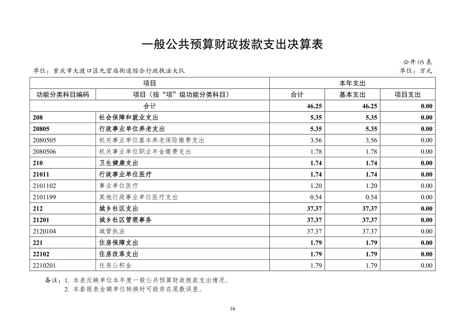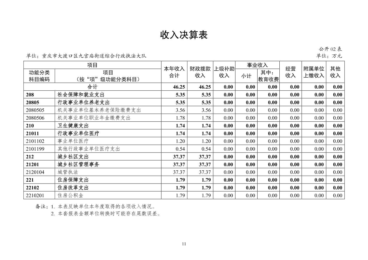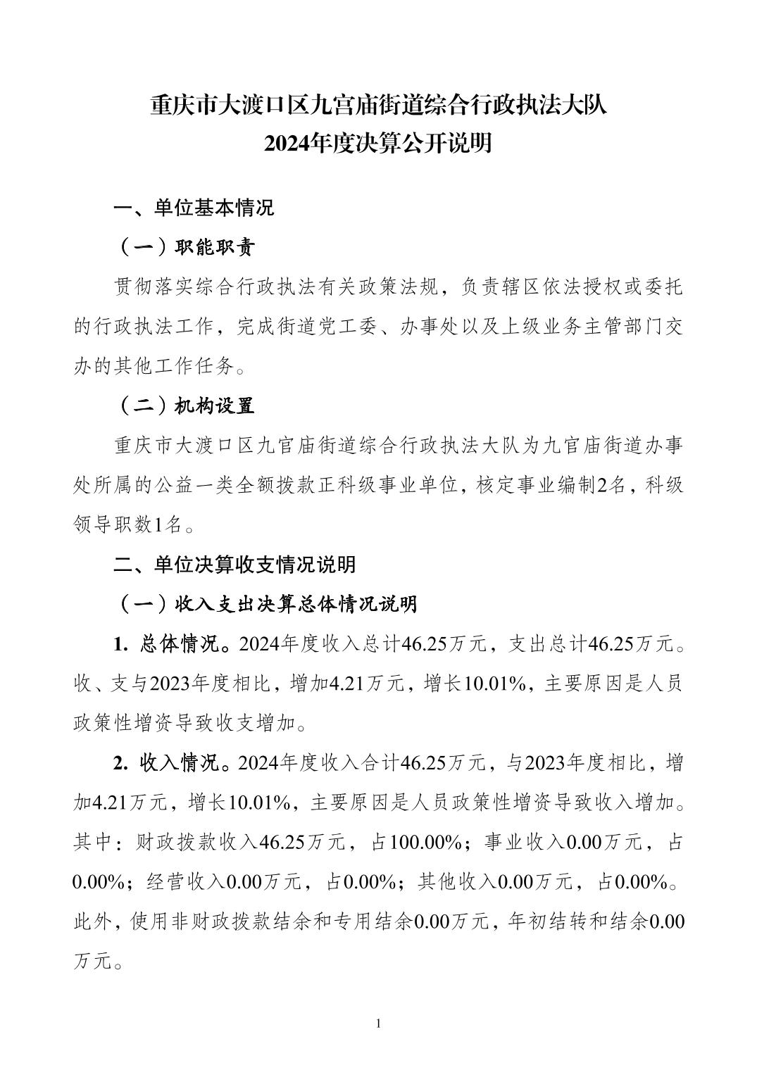 重庆市大渡口区九宫庙街道综合行政执法大队2024年度决算公开说明