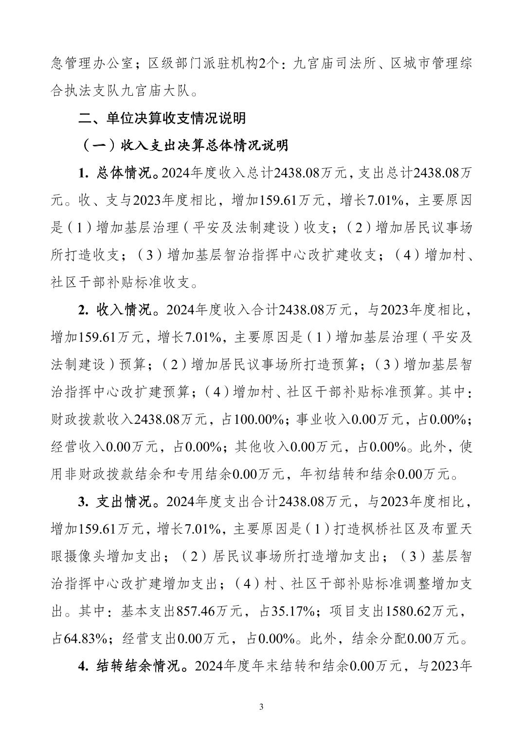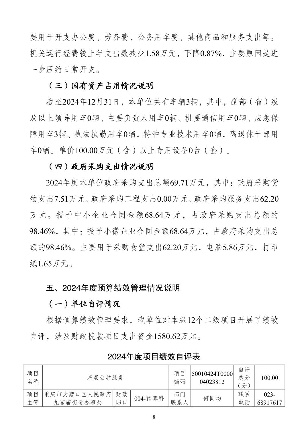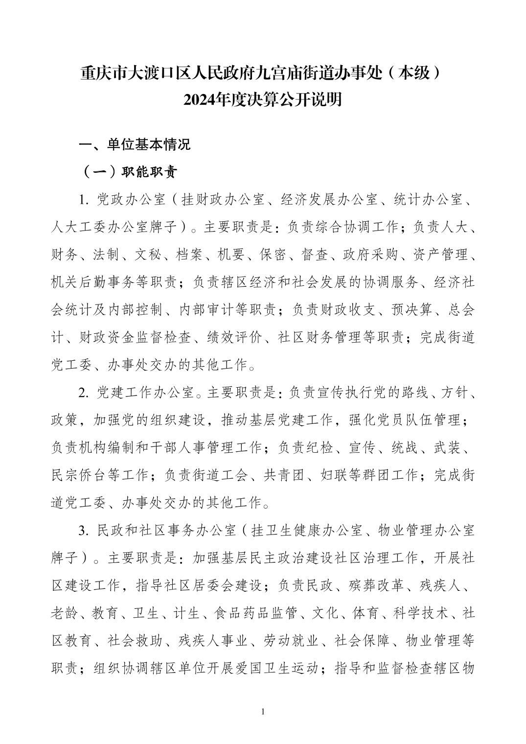 重庆市大渡口区人民政府九宫庙街道办事处(本级)2024年度决算公开说明