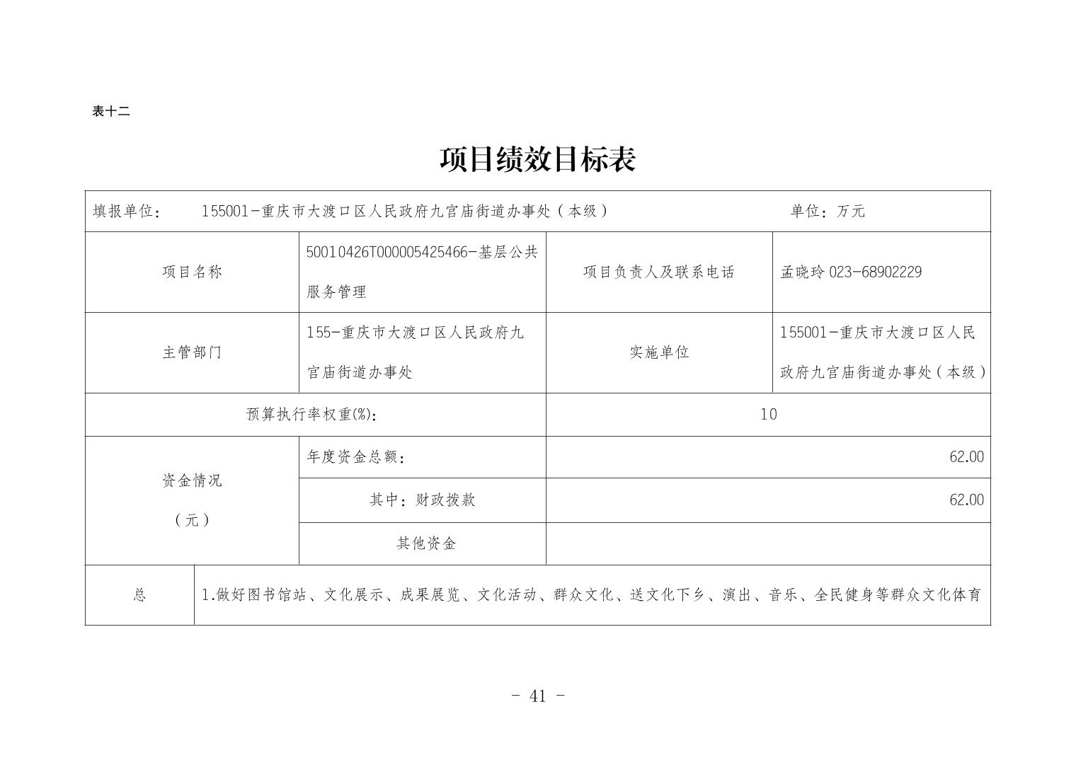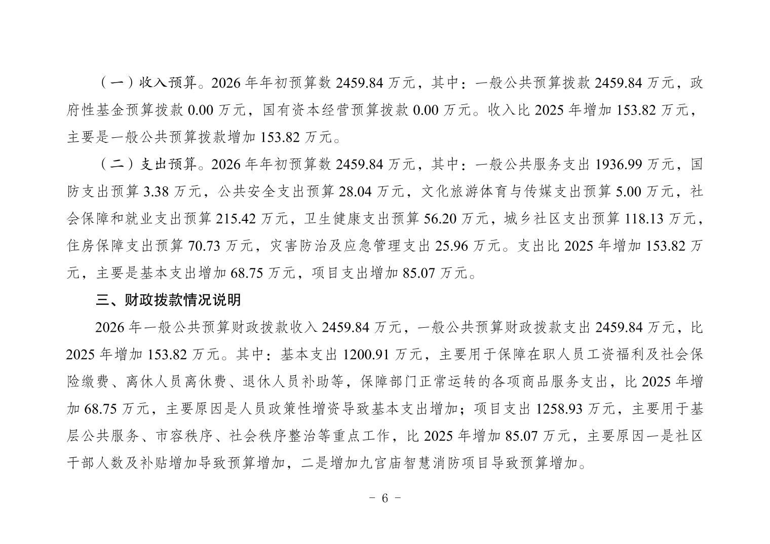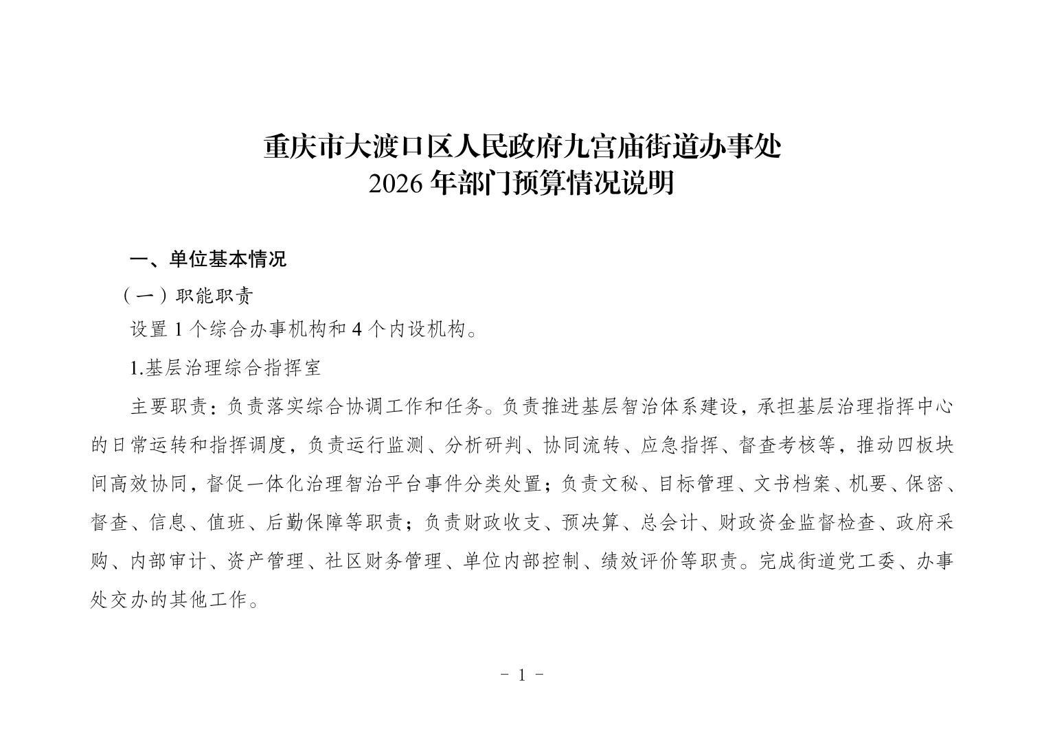 重庆市大渡口区人民政府九宫庙街道办事处2026年部门预算情况说明