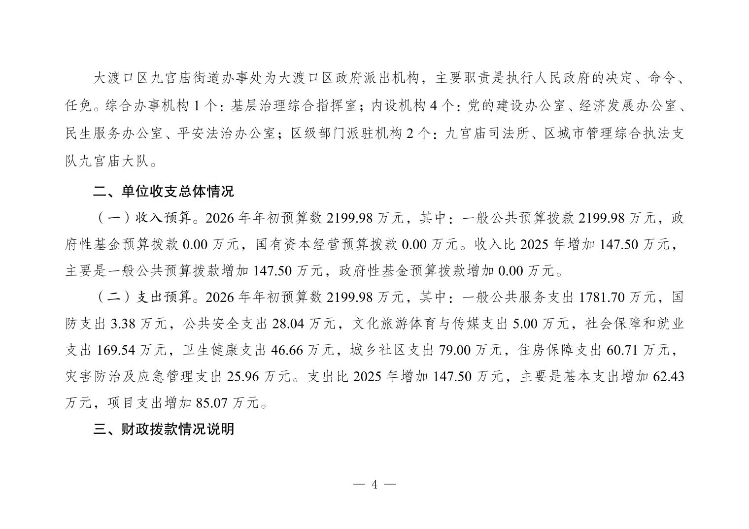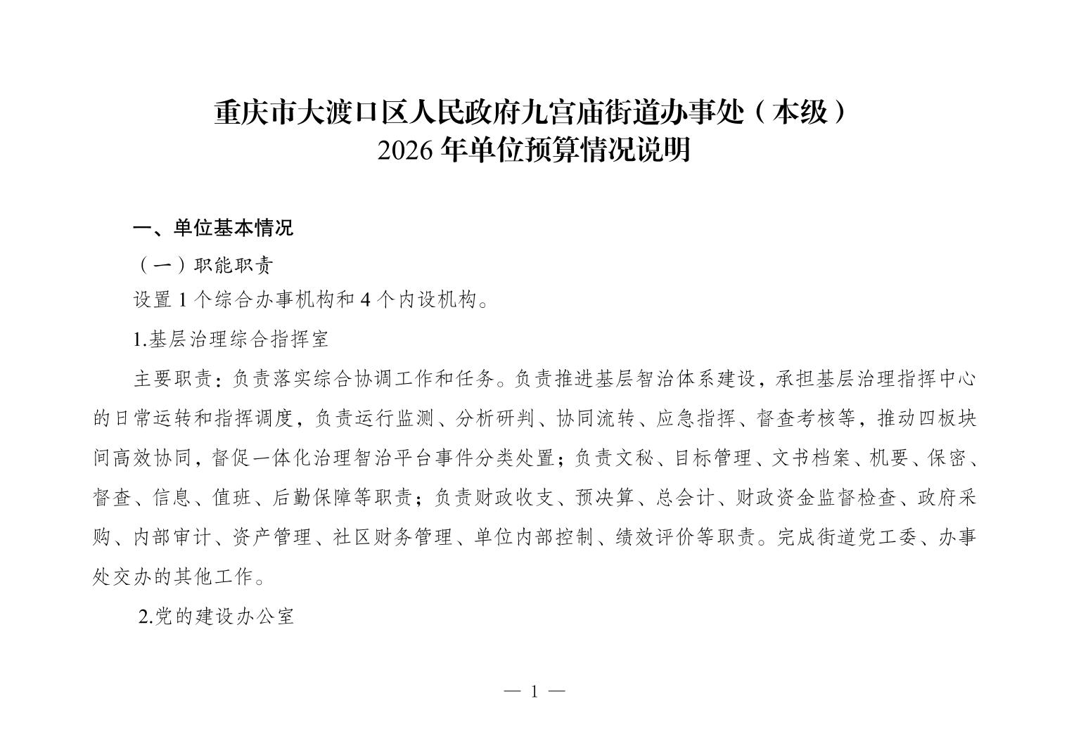 重庆市大渡口区人民政府九宫庙街道办事处(本级)2026年单位预算情况说明