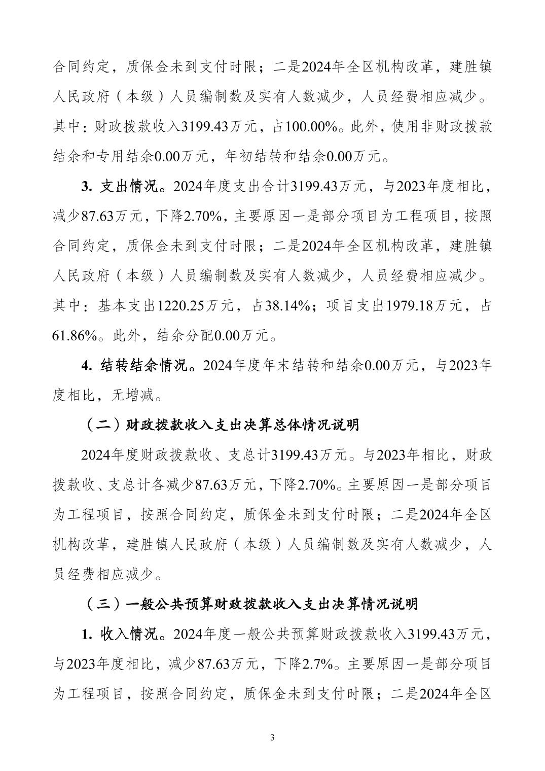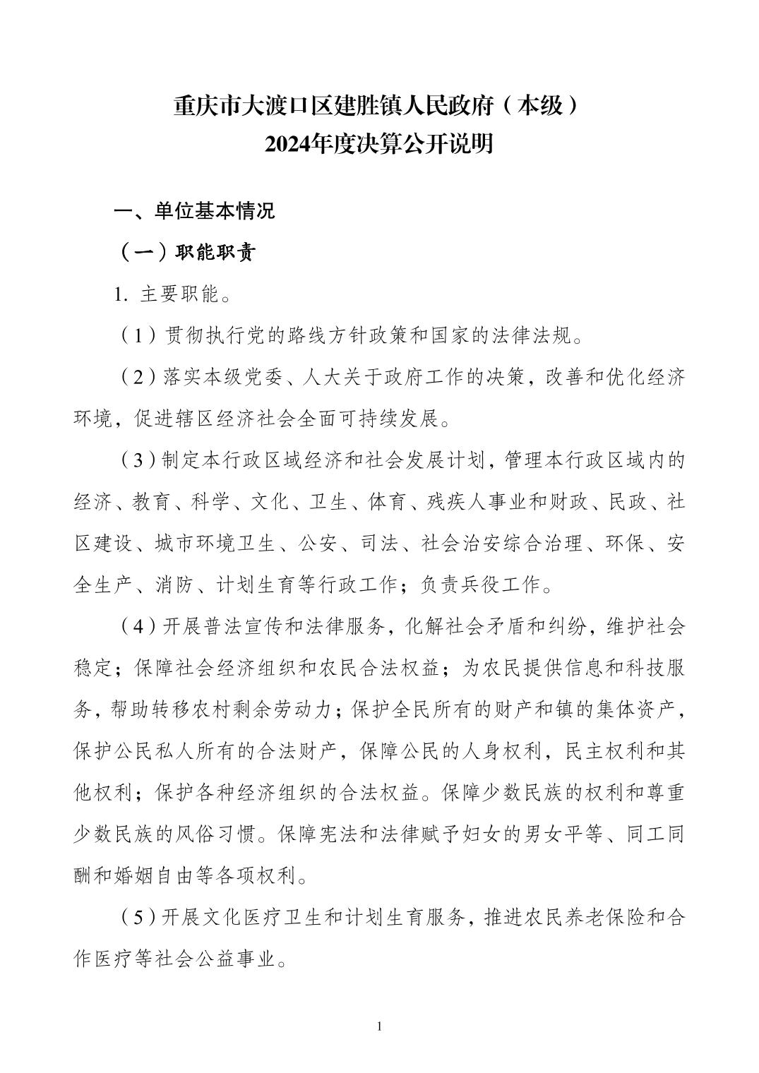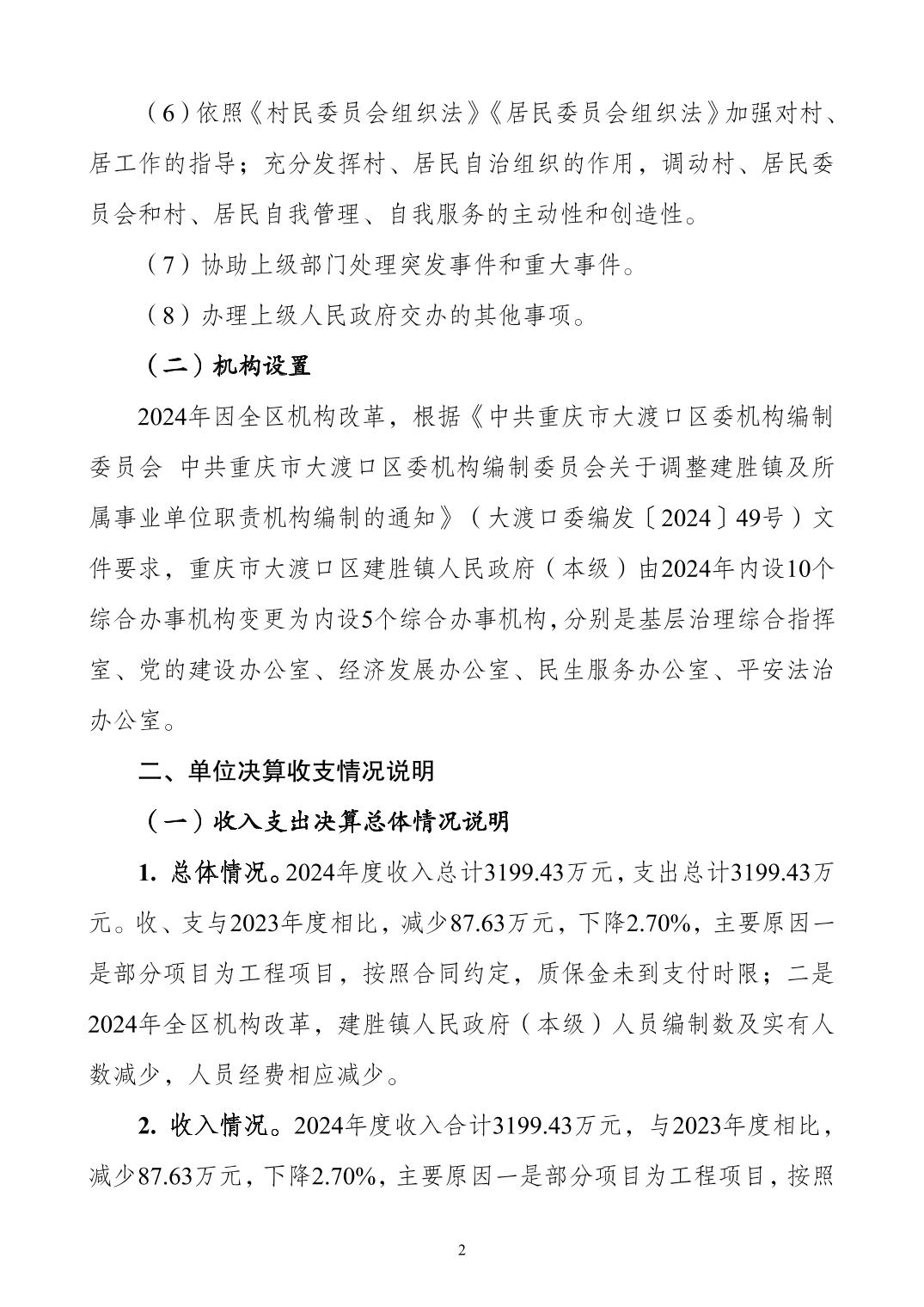 重庆市大渡口区建胜镇人民政府(本级)2024年度决算公开说明