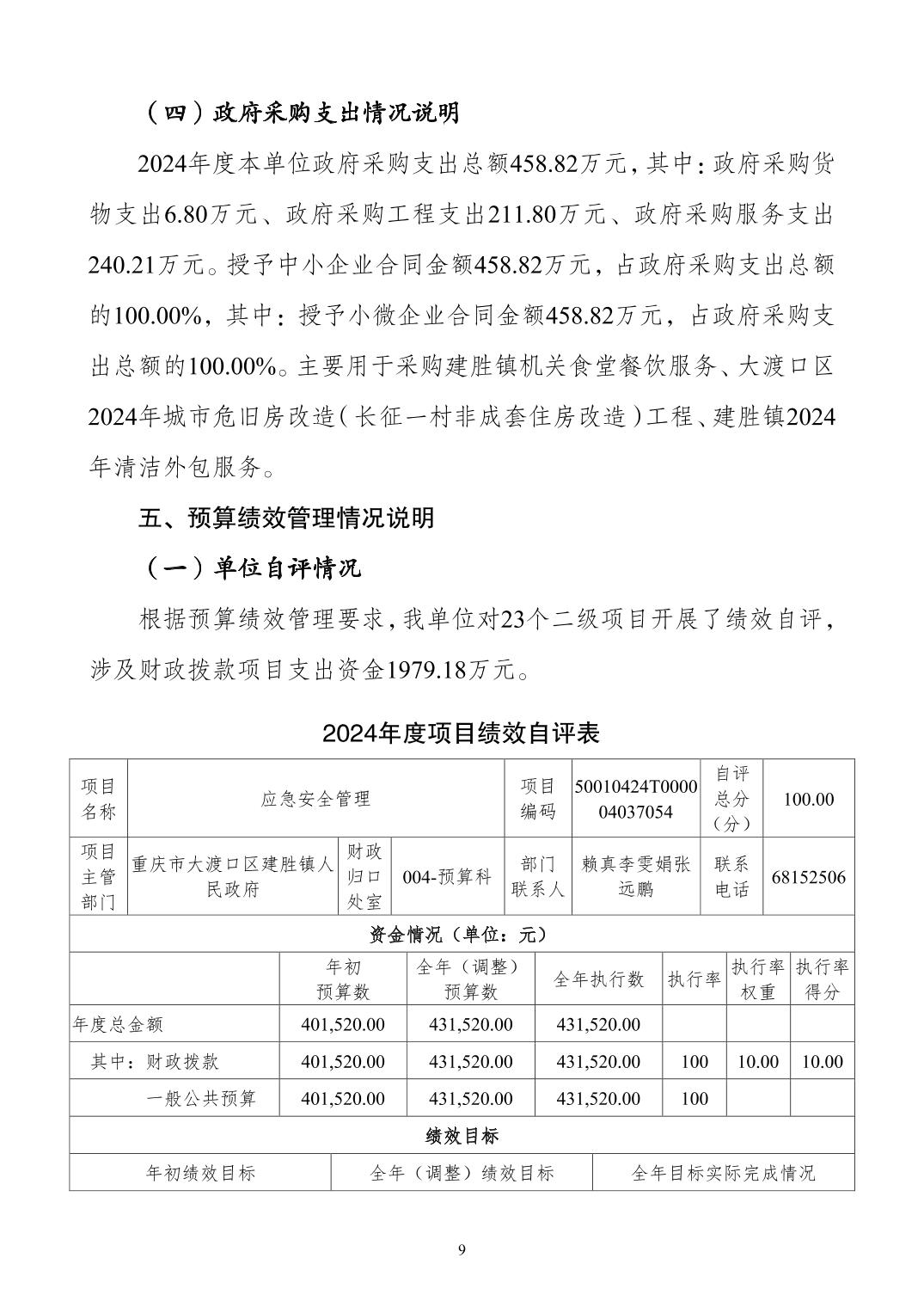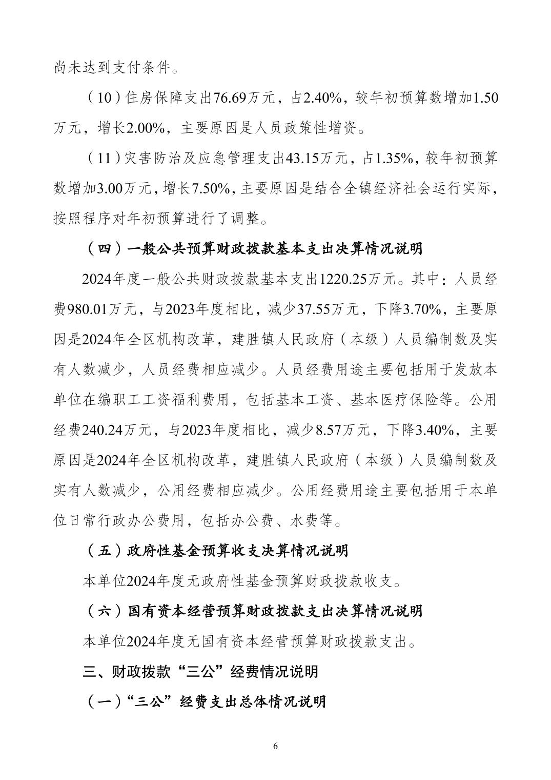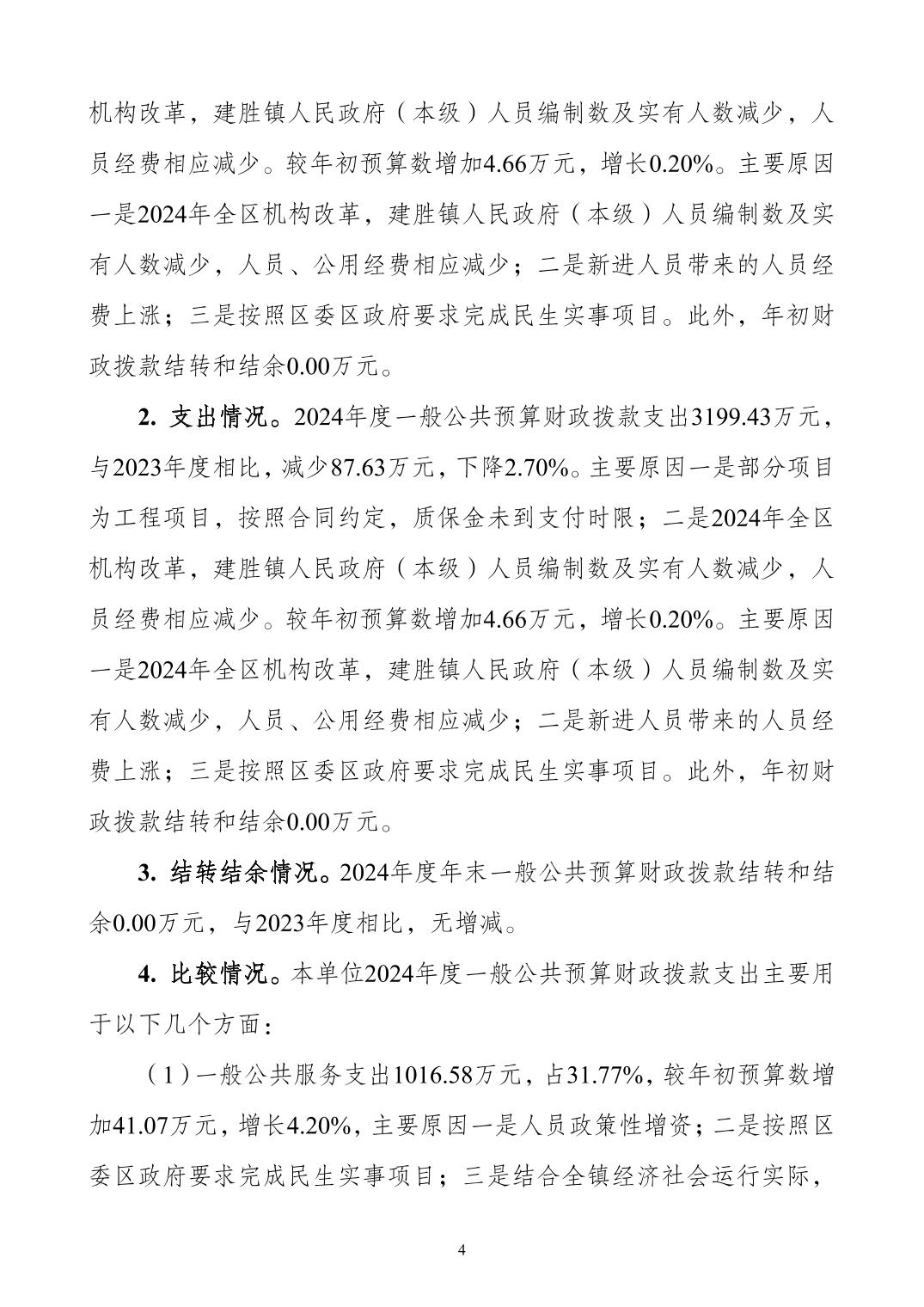 重庆市大渡口区建胜镇人民政府(本级)2024年度决算公开说明