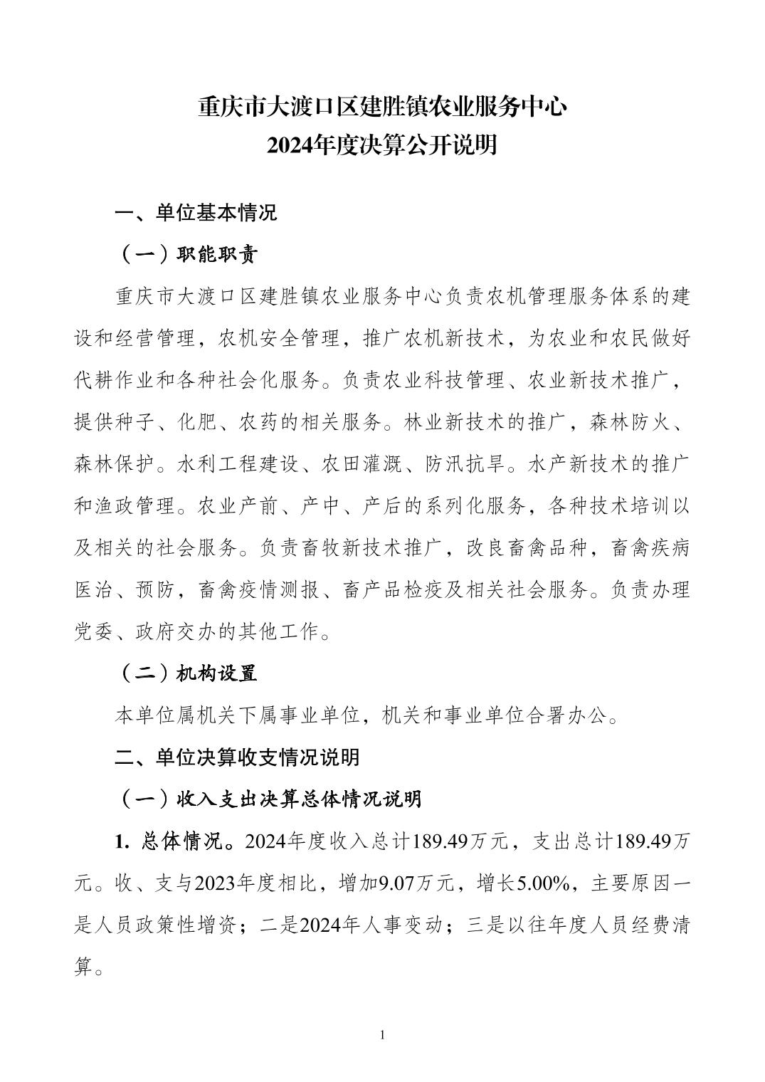 重庆市大渡口区建胜镇农业服务中心2024年度决算公开说明
